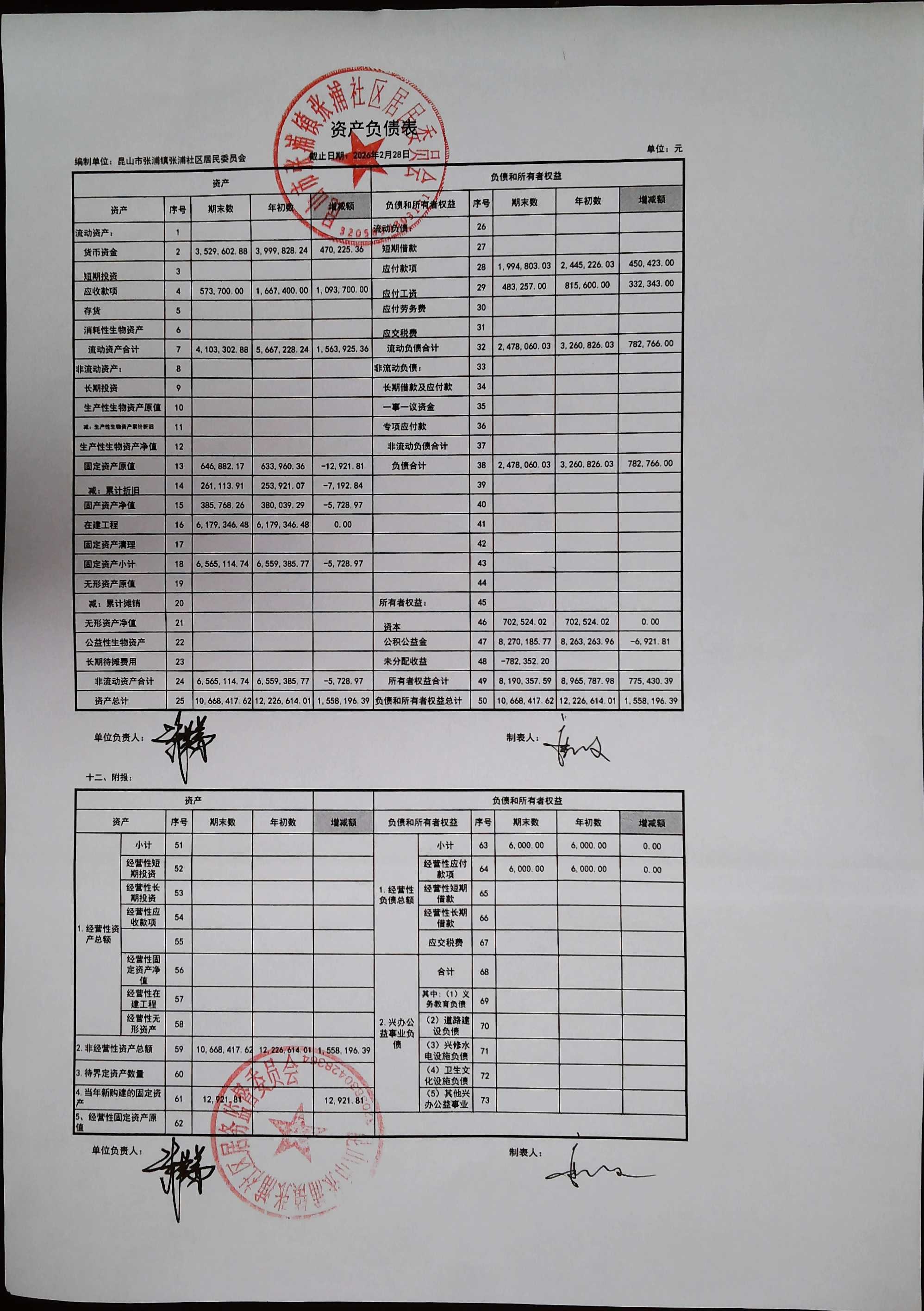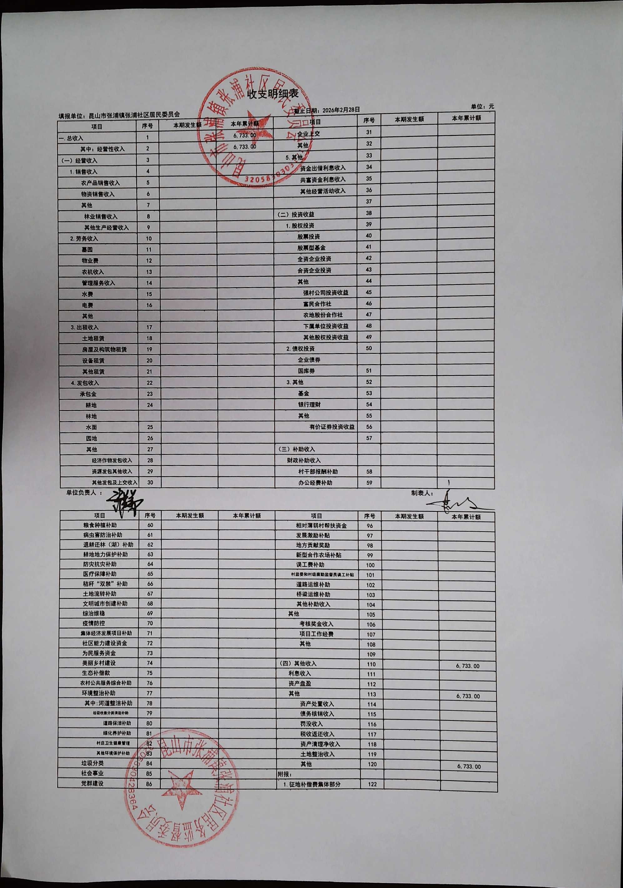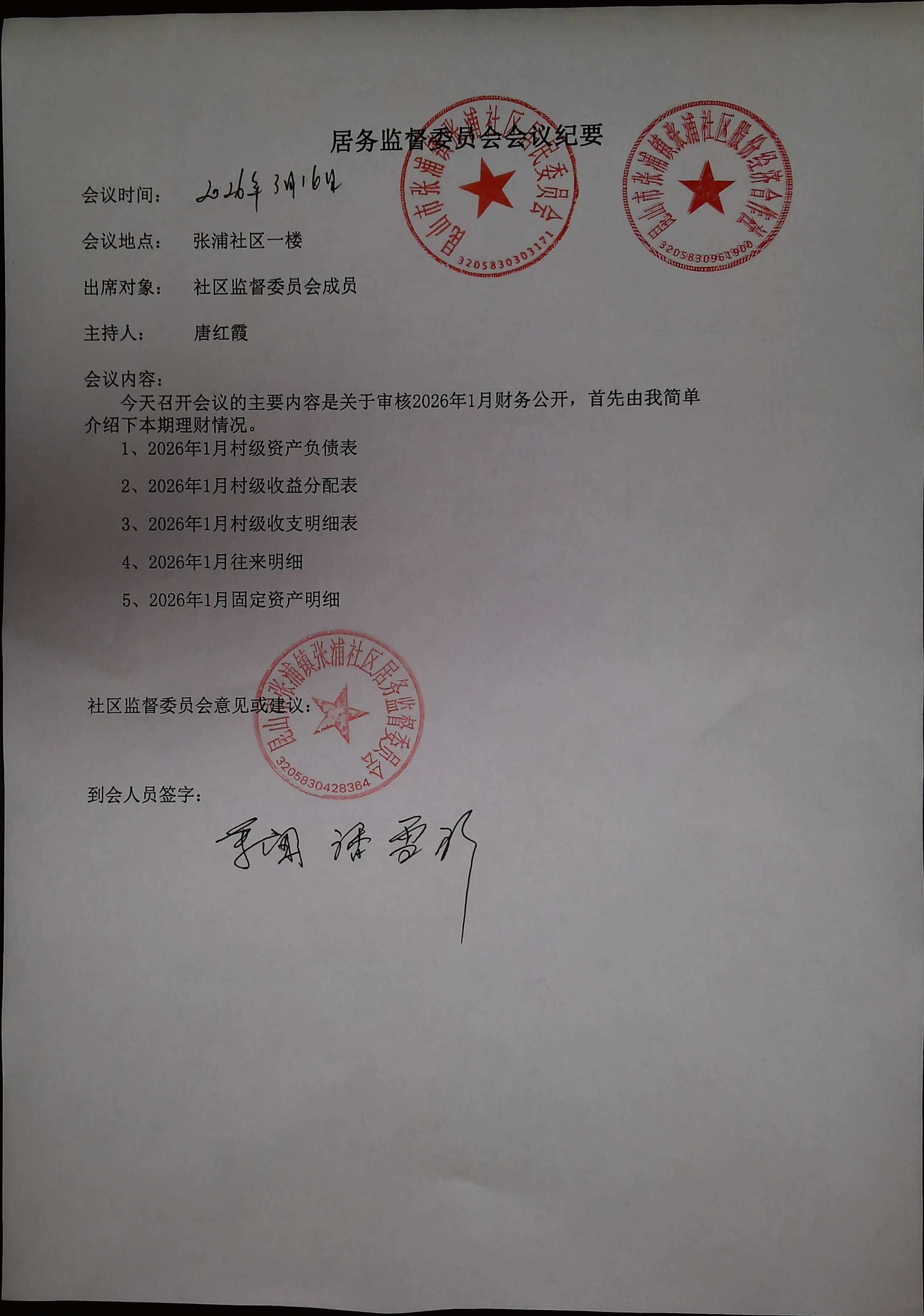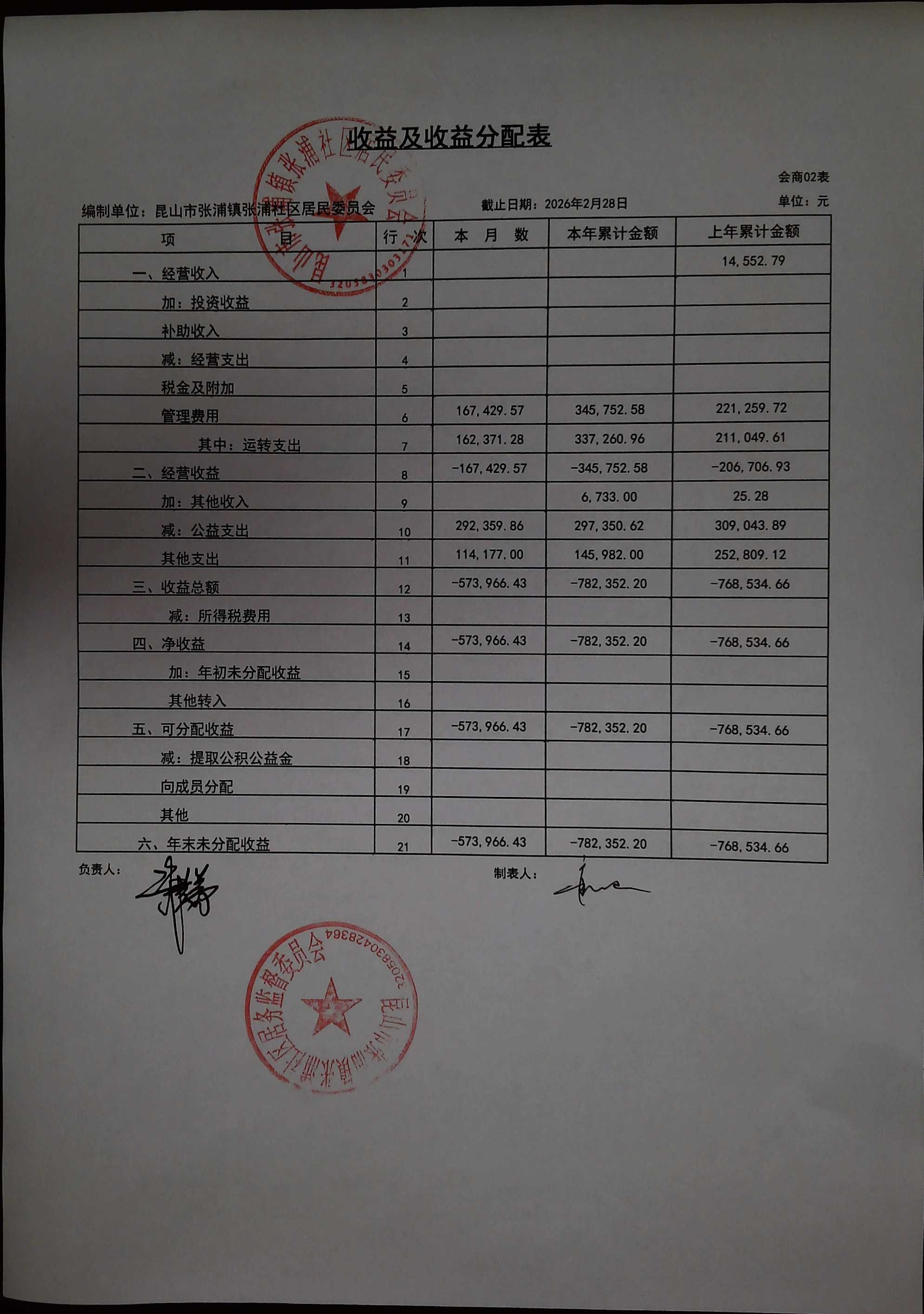 2026年2月居委会财务公开