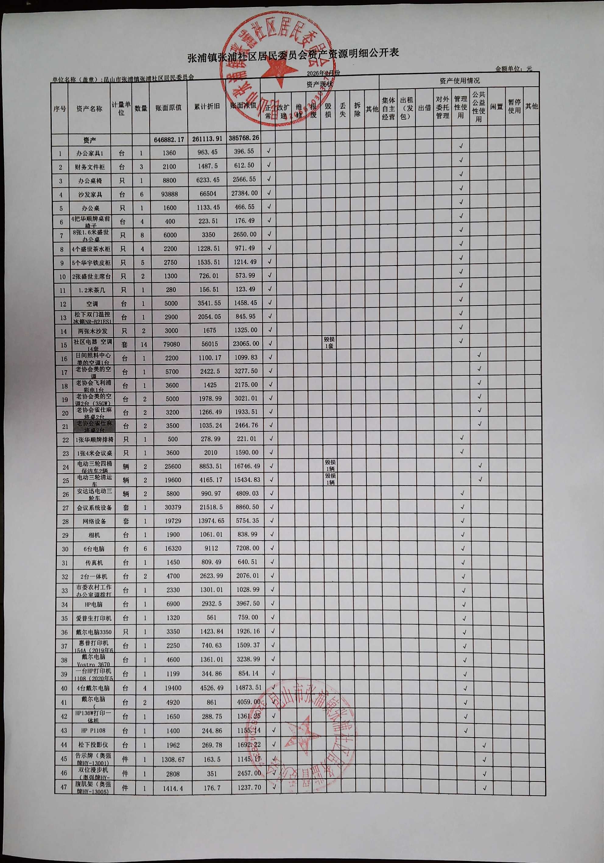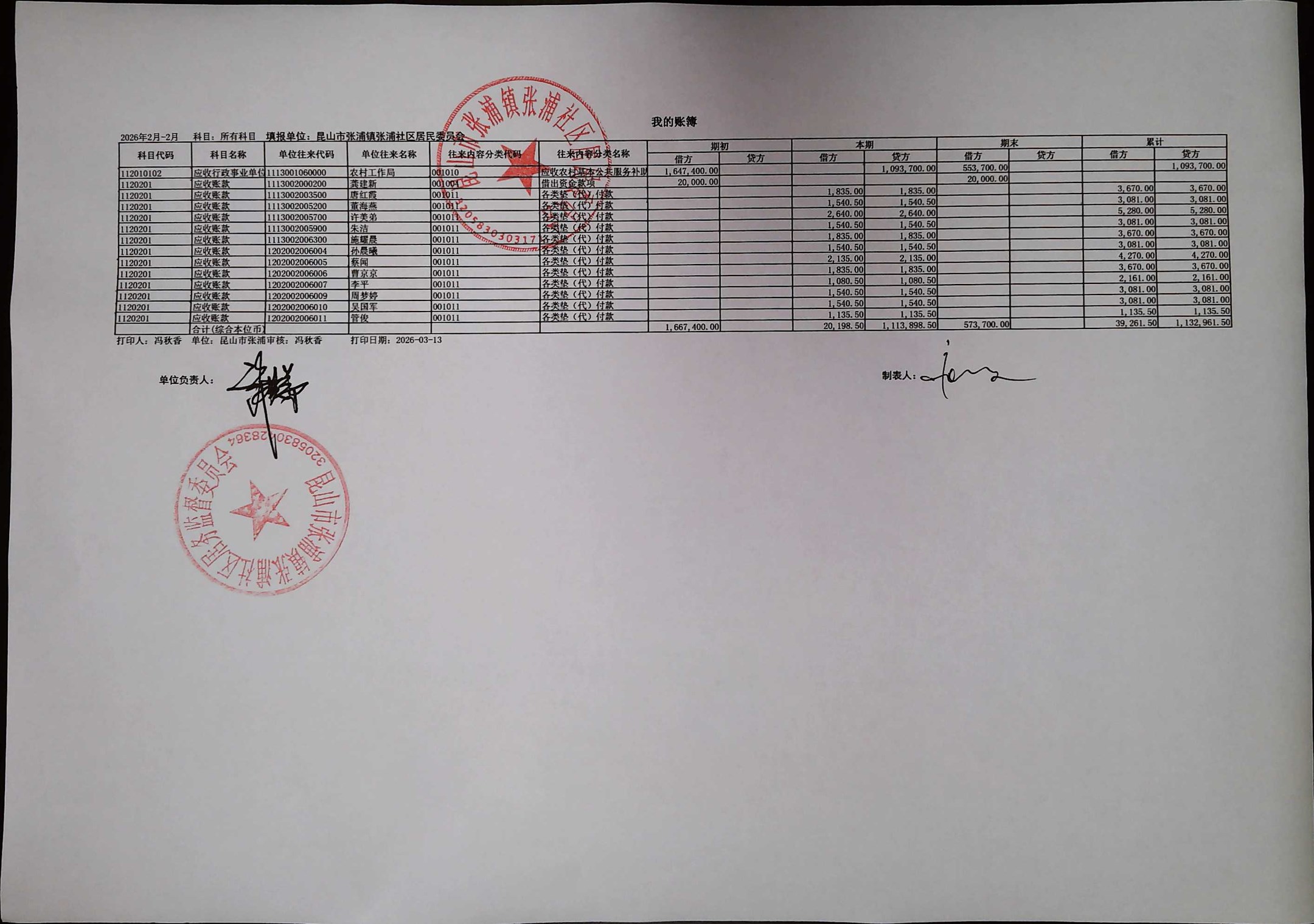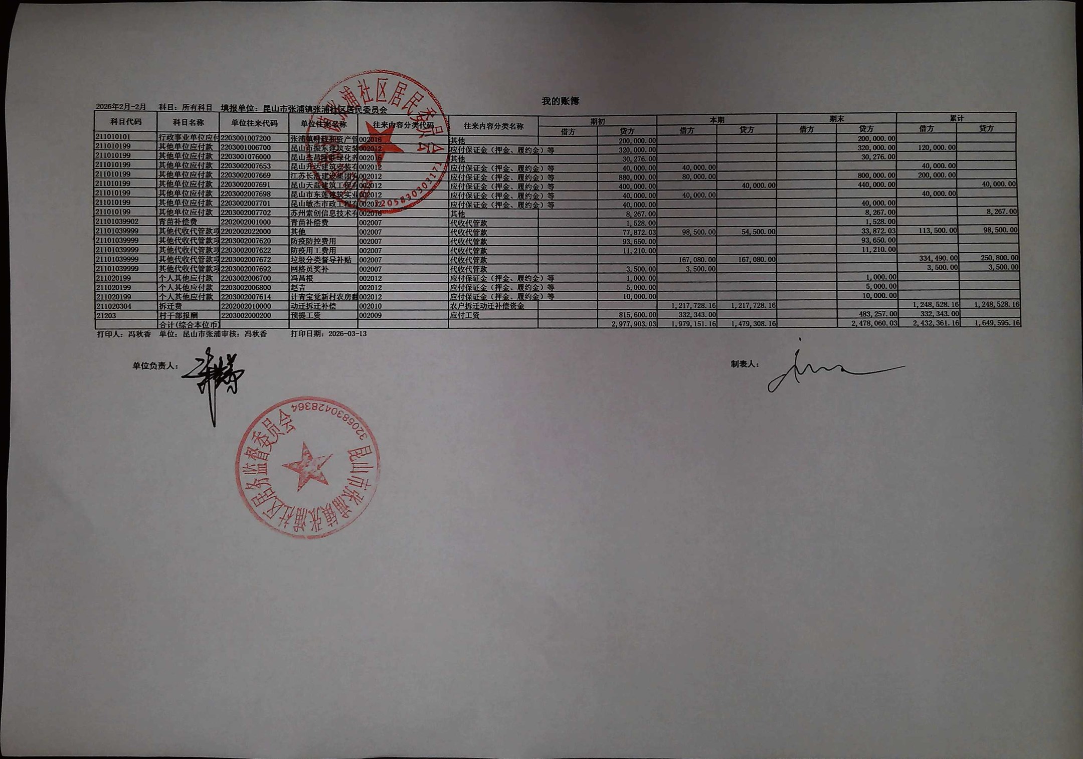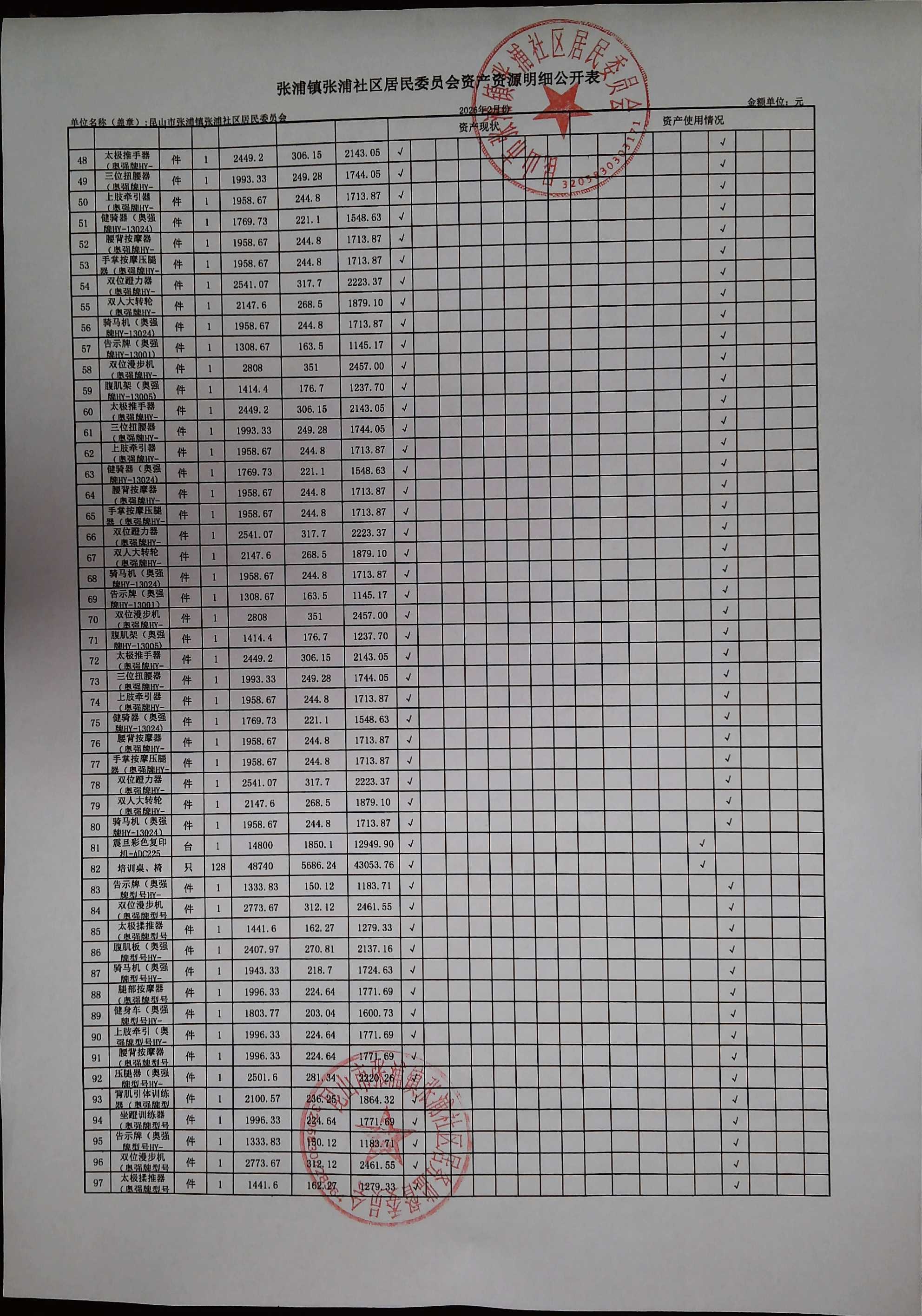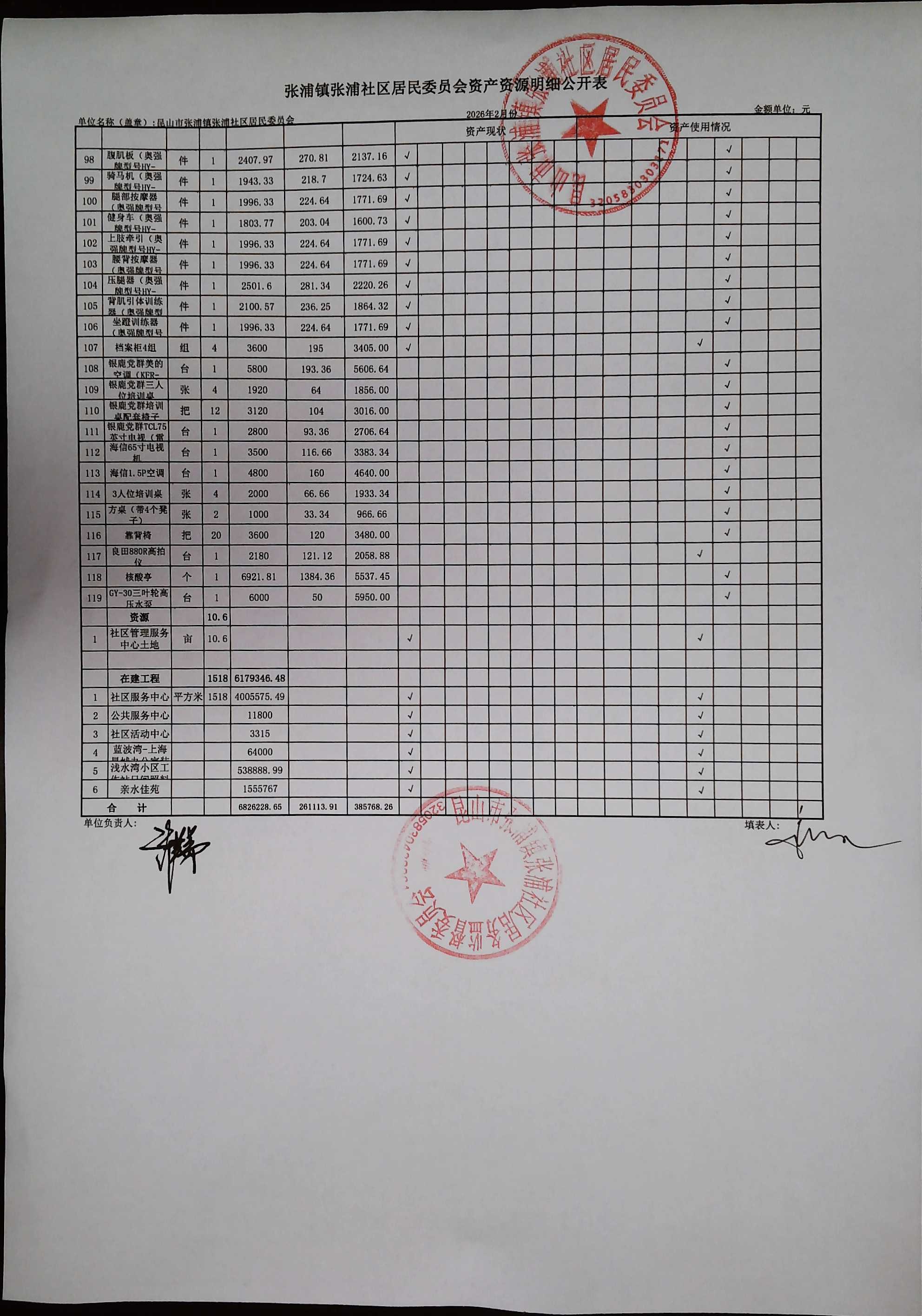 2026年2月居委会财务公开
