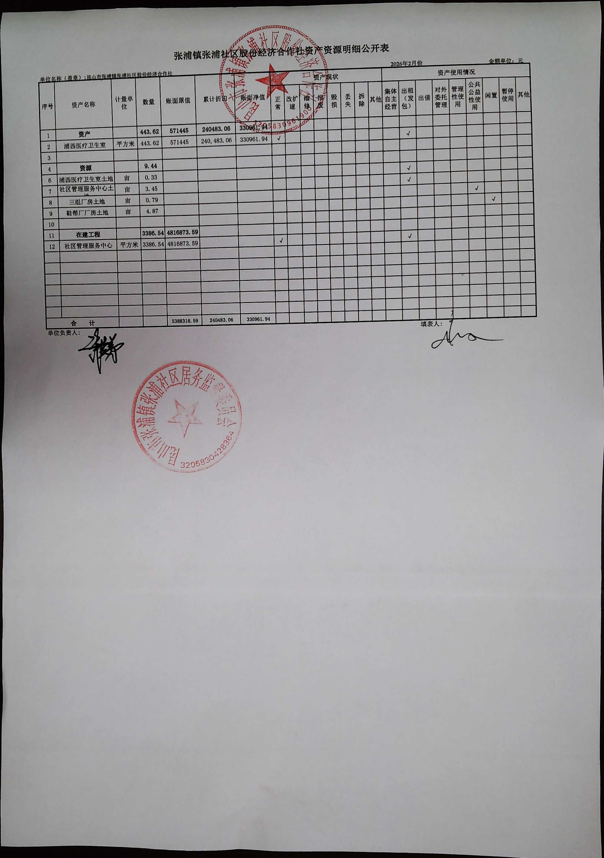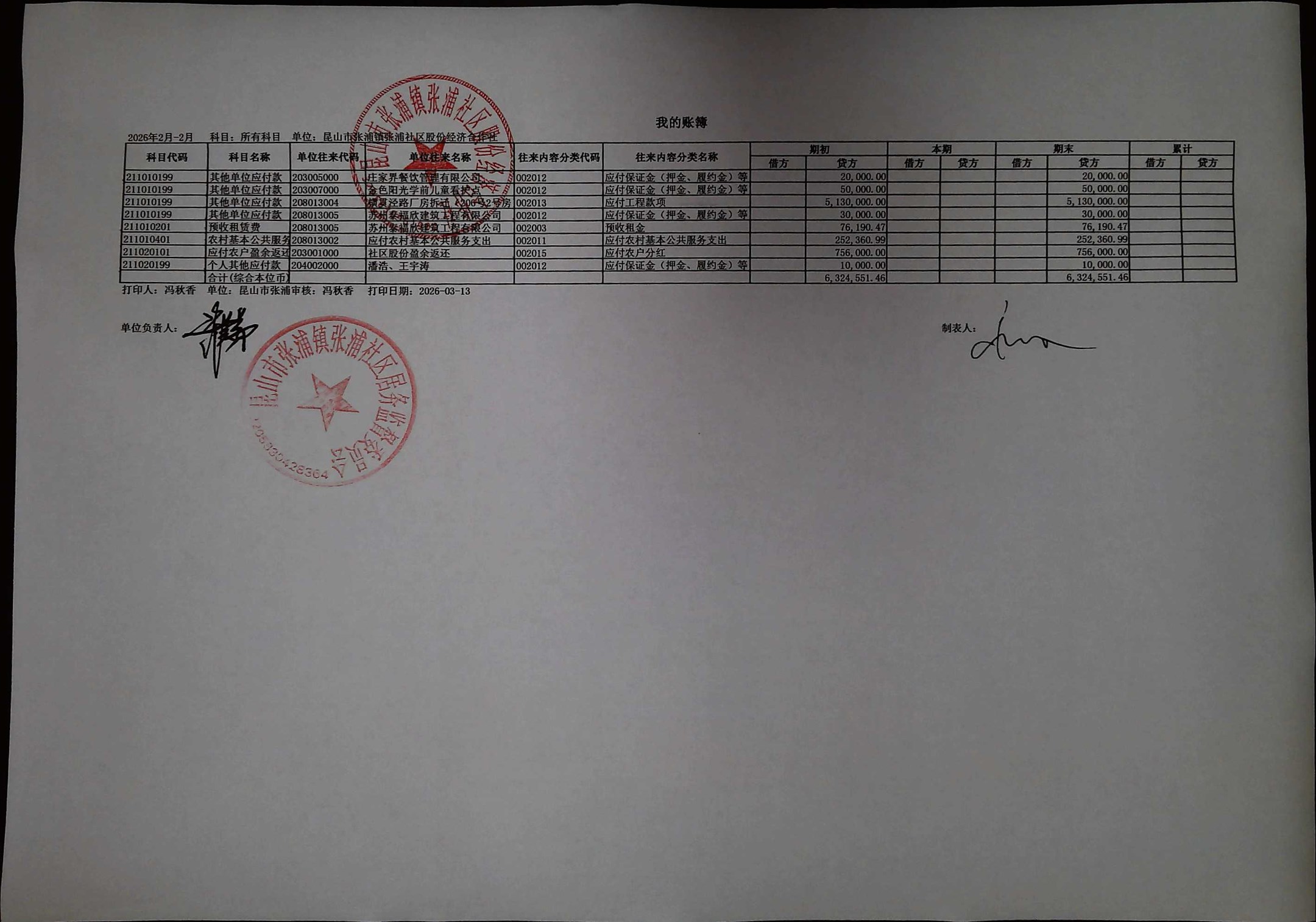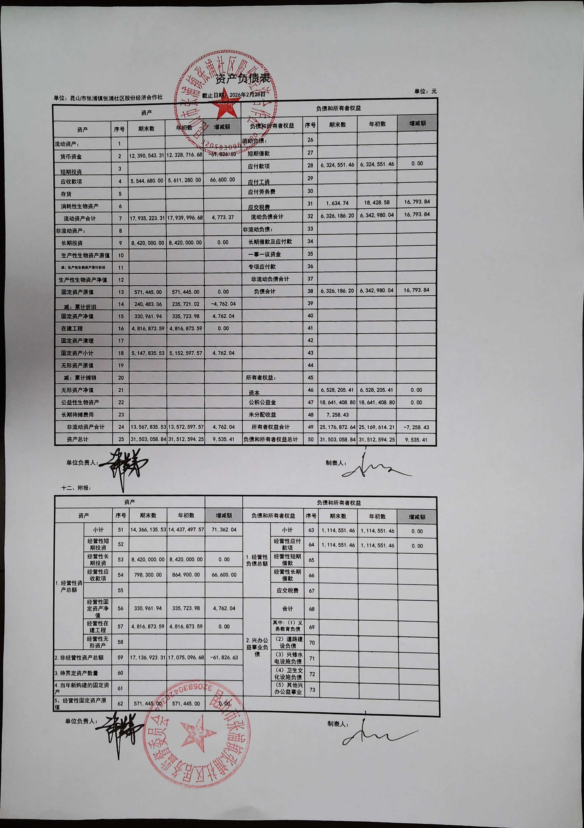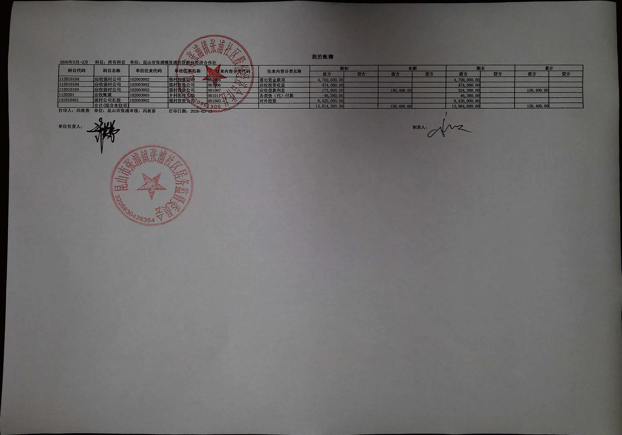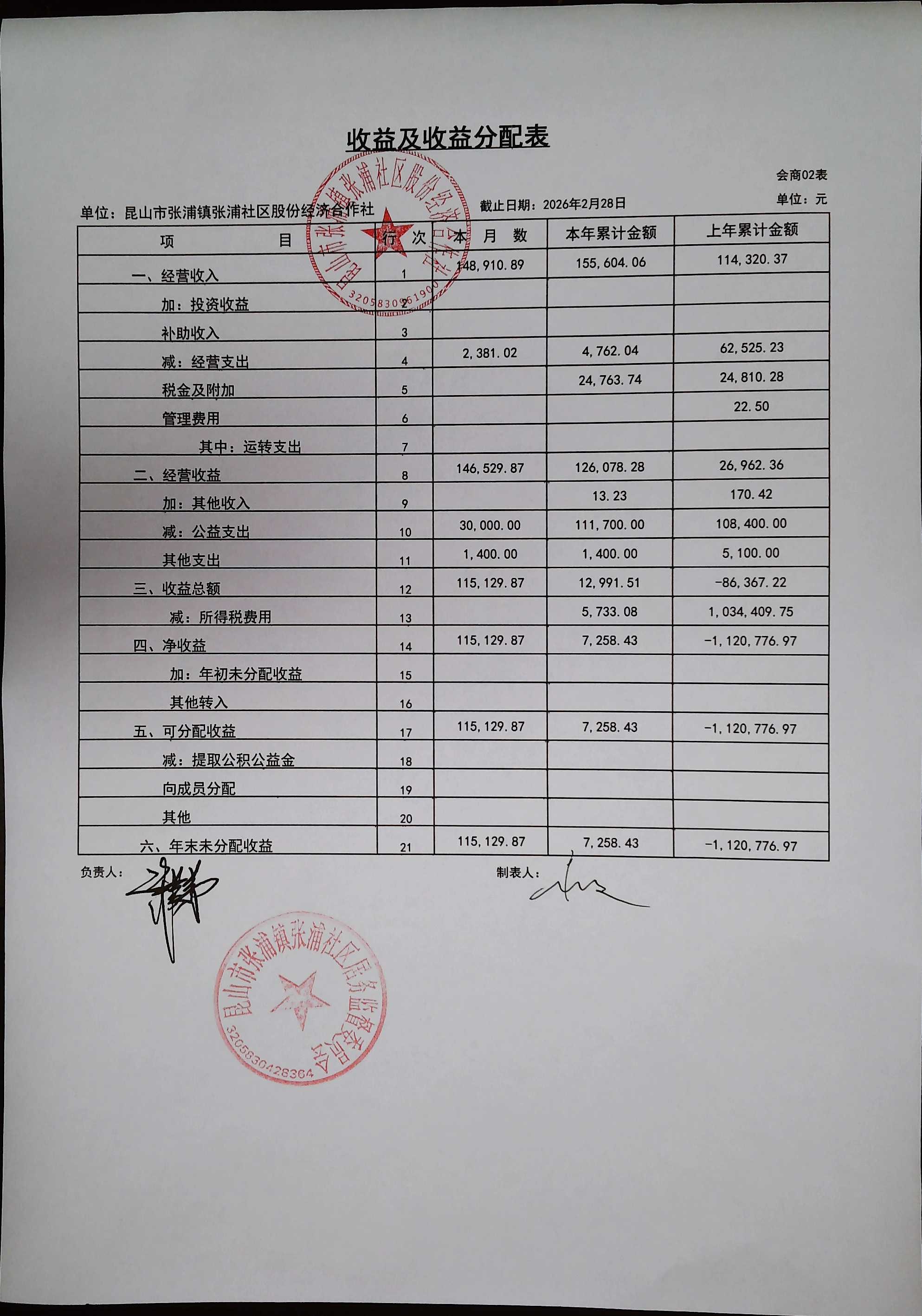 2026年2月合作社财务公开