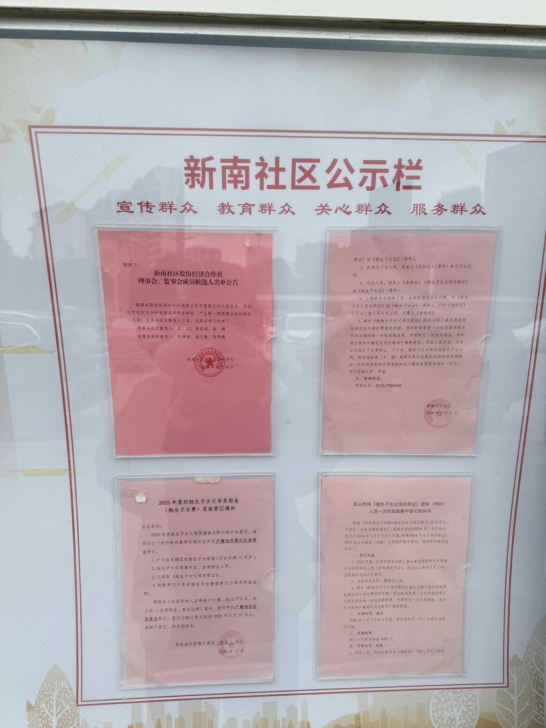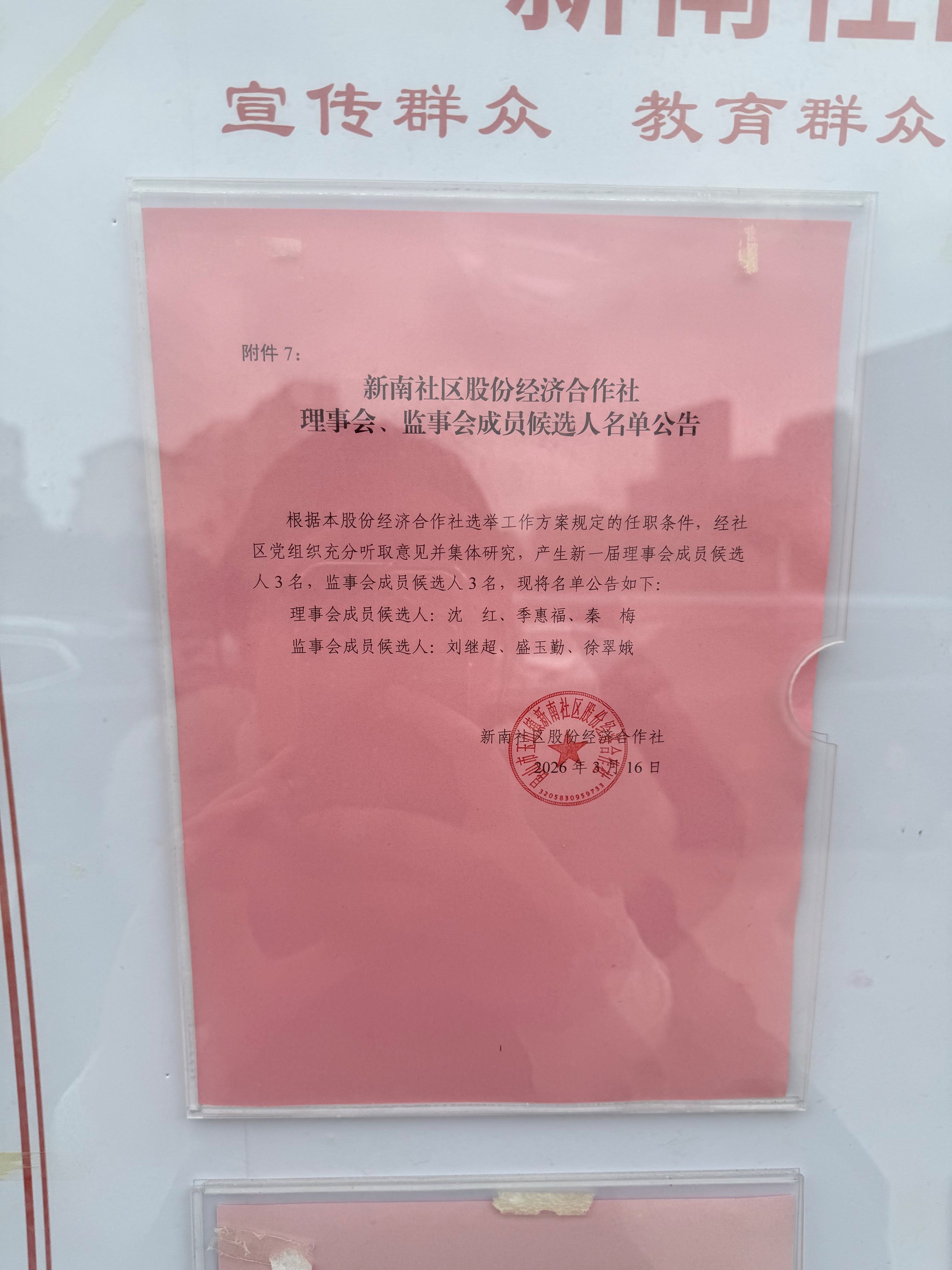 新南社区股份经济合作社理事会、监事会成员候选人名单公告(第二轮)
