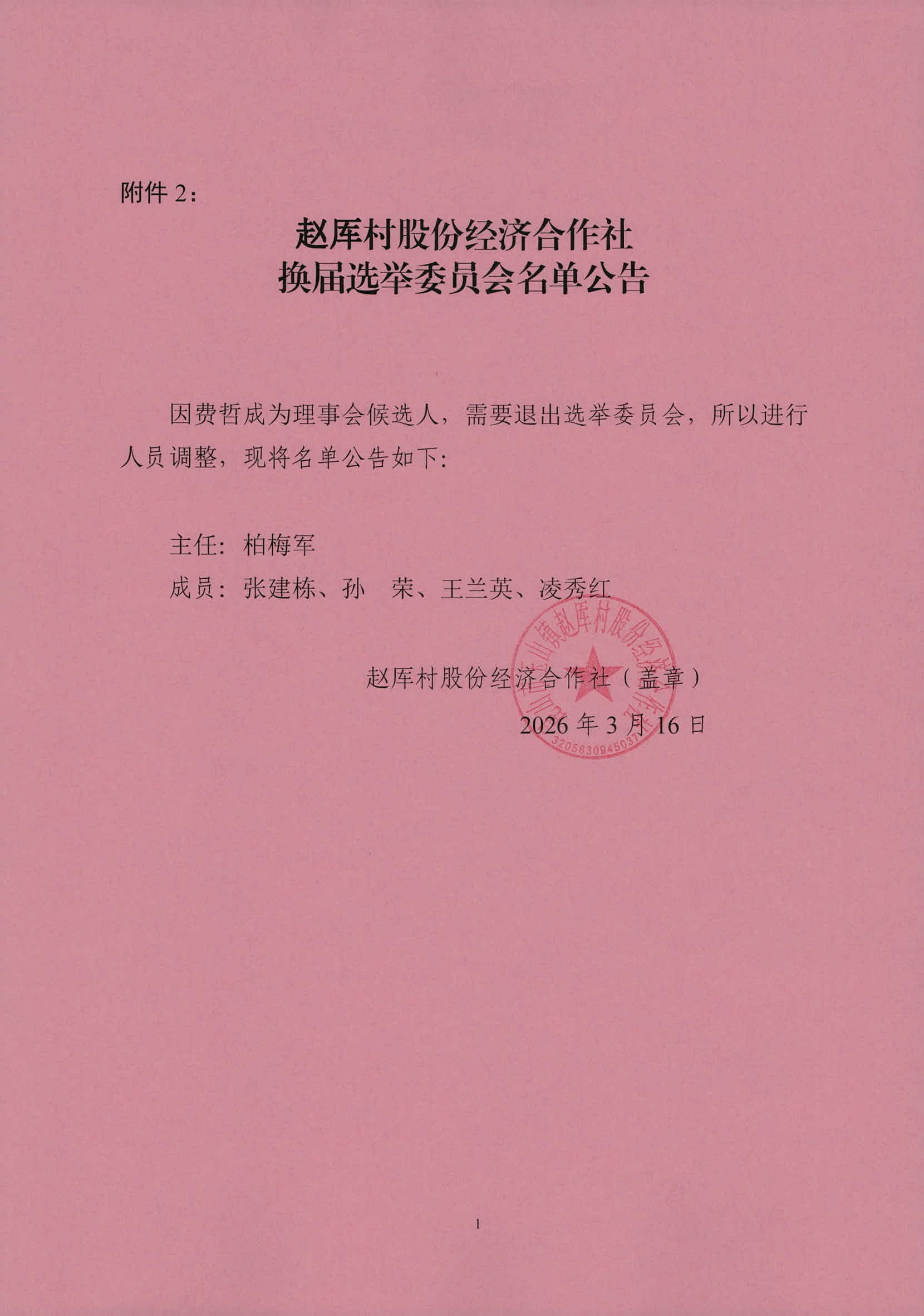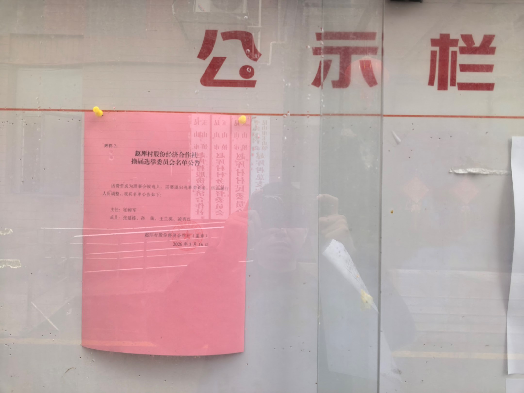赵厍村股份经济合作社换届选举委员会名单公告