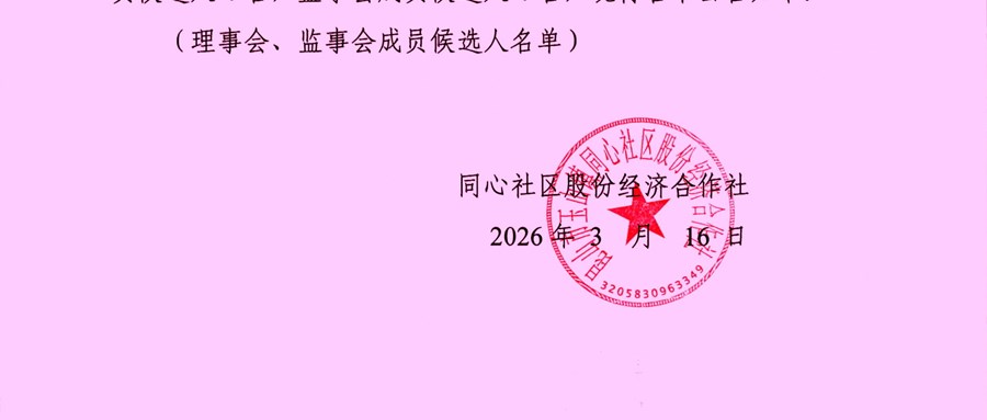 同心股份经济合作社换届选举理事会、监事会候选人名单公示(第二轮)