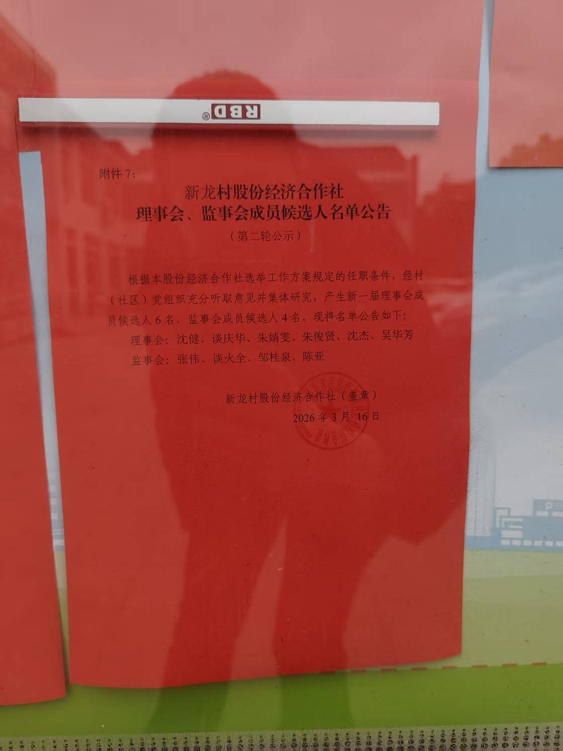 新龙村股份经济合作社 理事会、监事会成员候选人名单公告