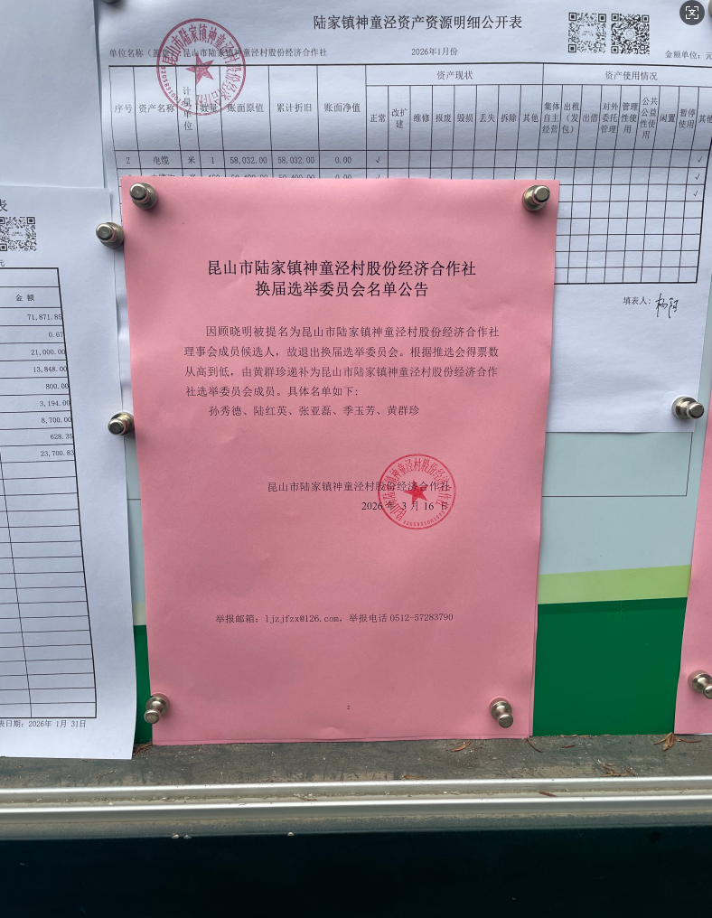 昆山市陆家镇神童泾村股份经济合作社换届选举委员会名单公告2
