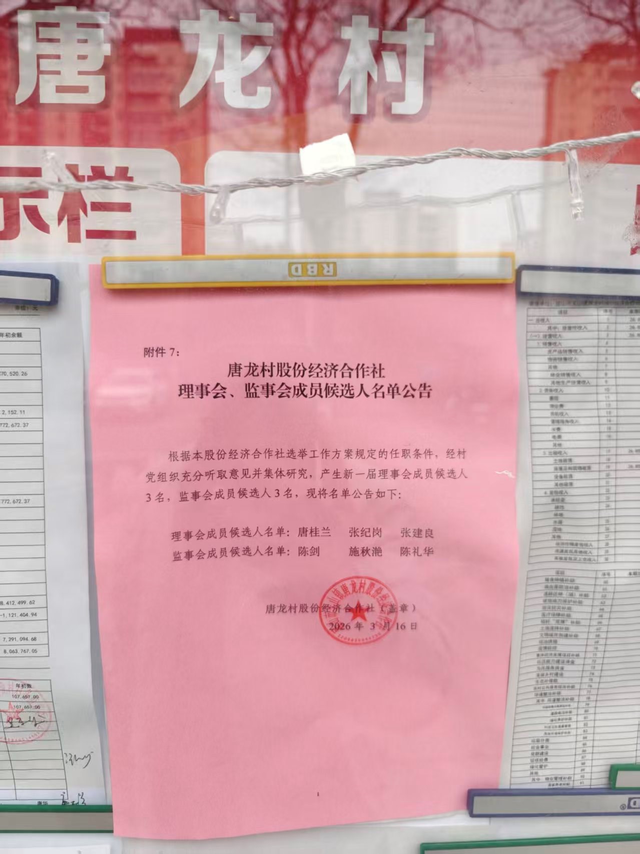 唐龙村股份经济合作社理事会、监事会成员候选人名单公告