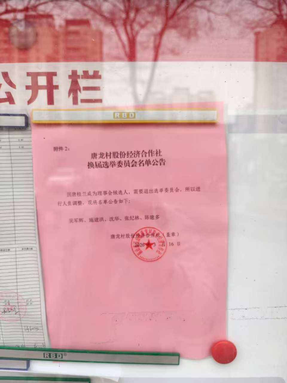 唐龙村股份经济合作社换届选举委员会名单公告
