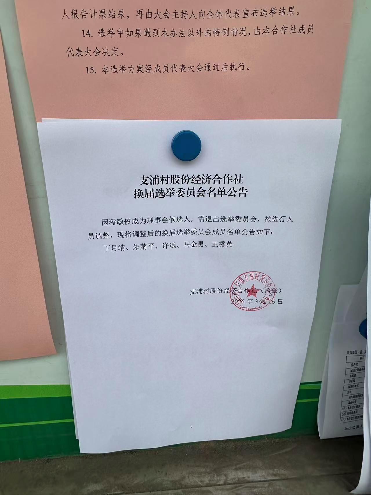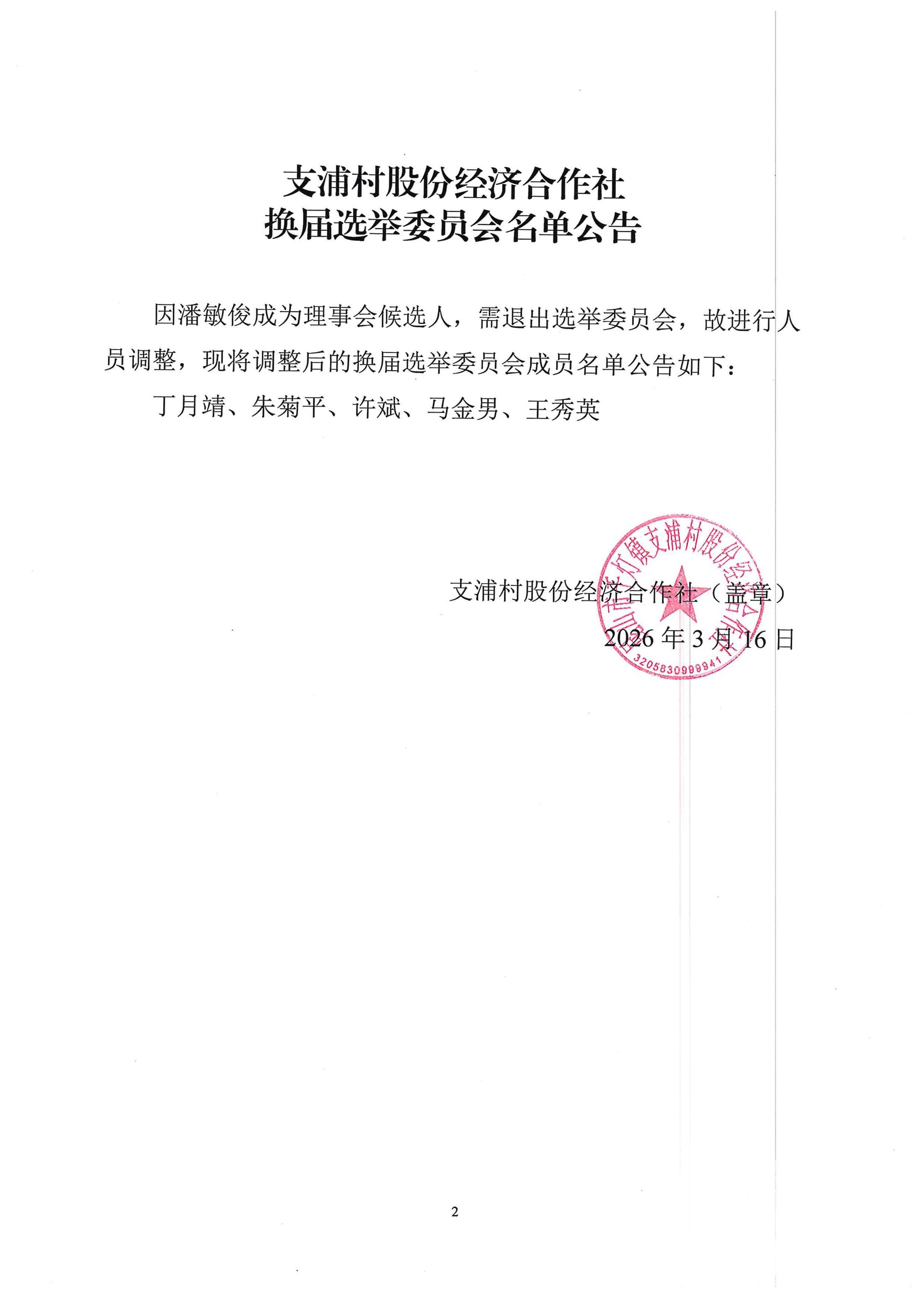 支浦村股份经济合作社换届选举委员会名单公告