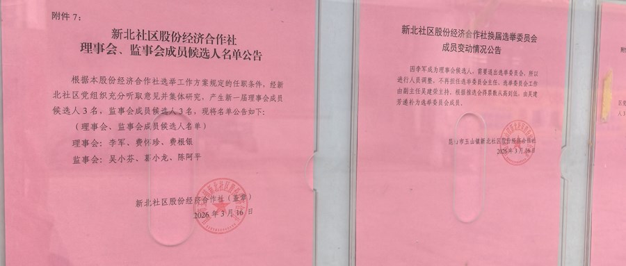 新北社区股份经济合作社理事会、监事会成员候选人名单第二轮公告