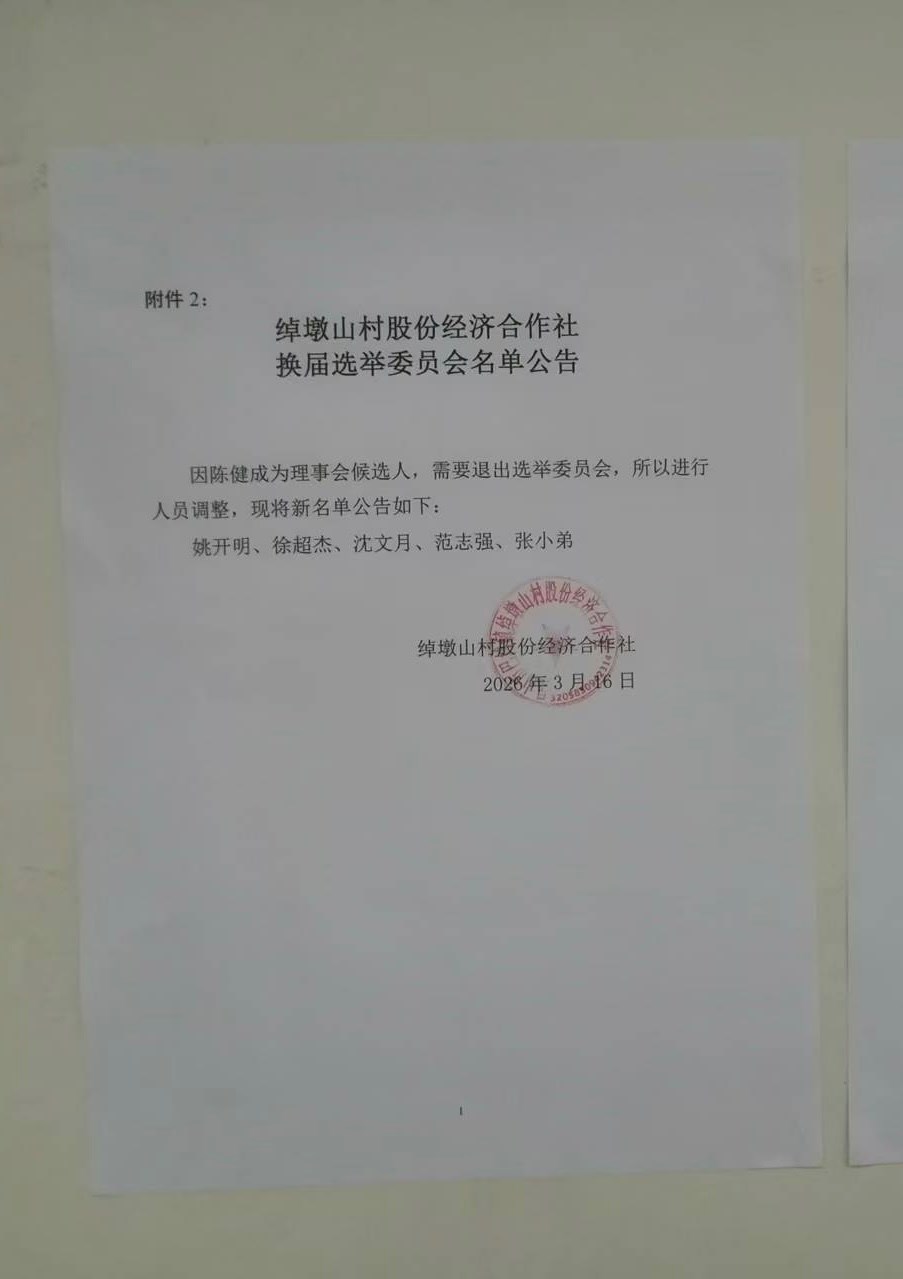 2026年绰墩山村股份经济合作社换届选举委员会名单第二次公告