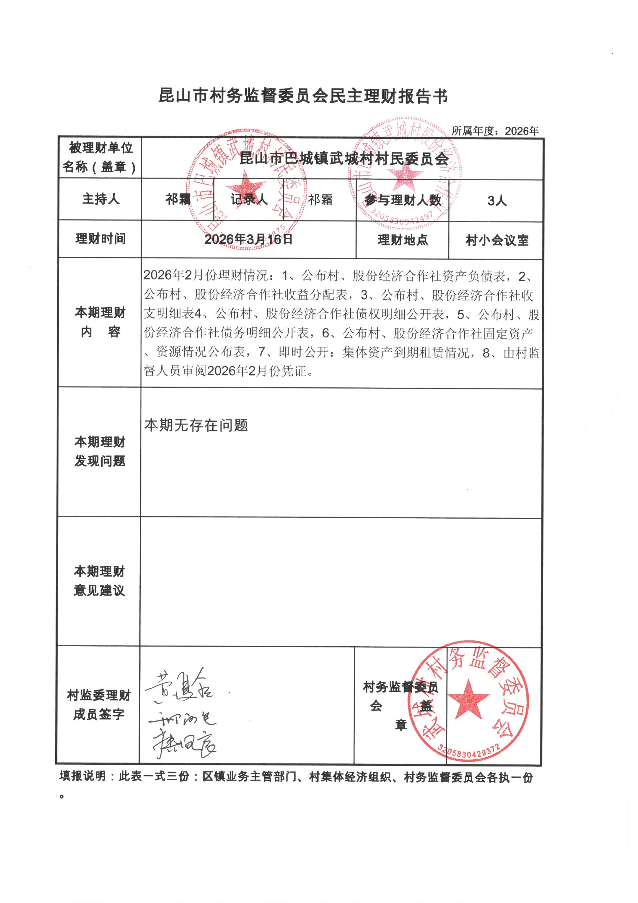 2026年2月村财务公开