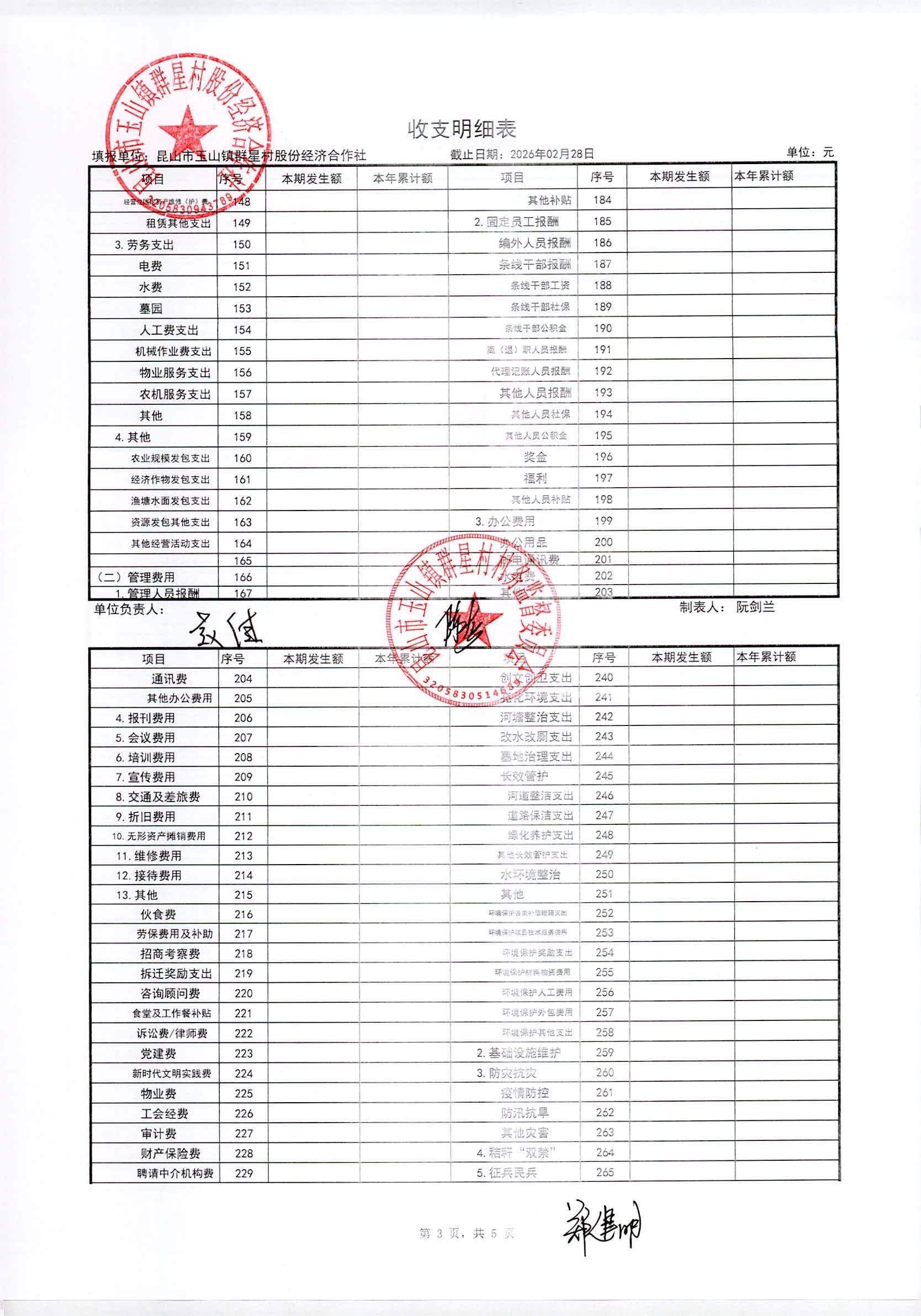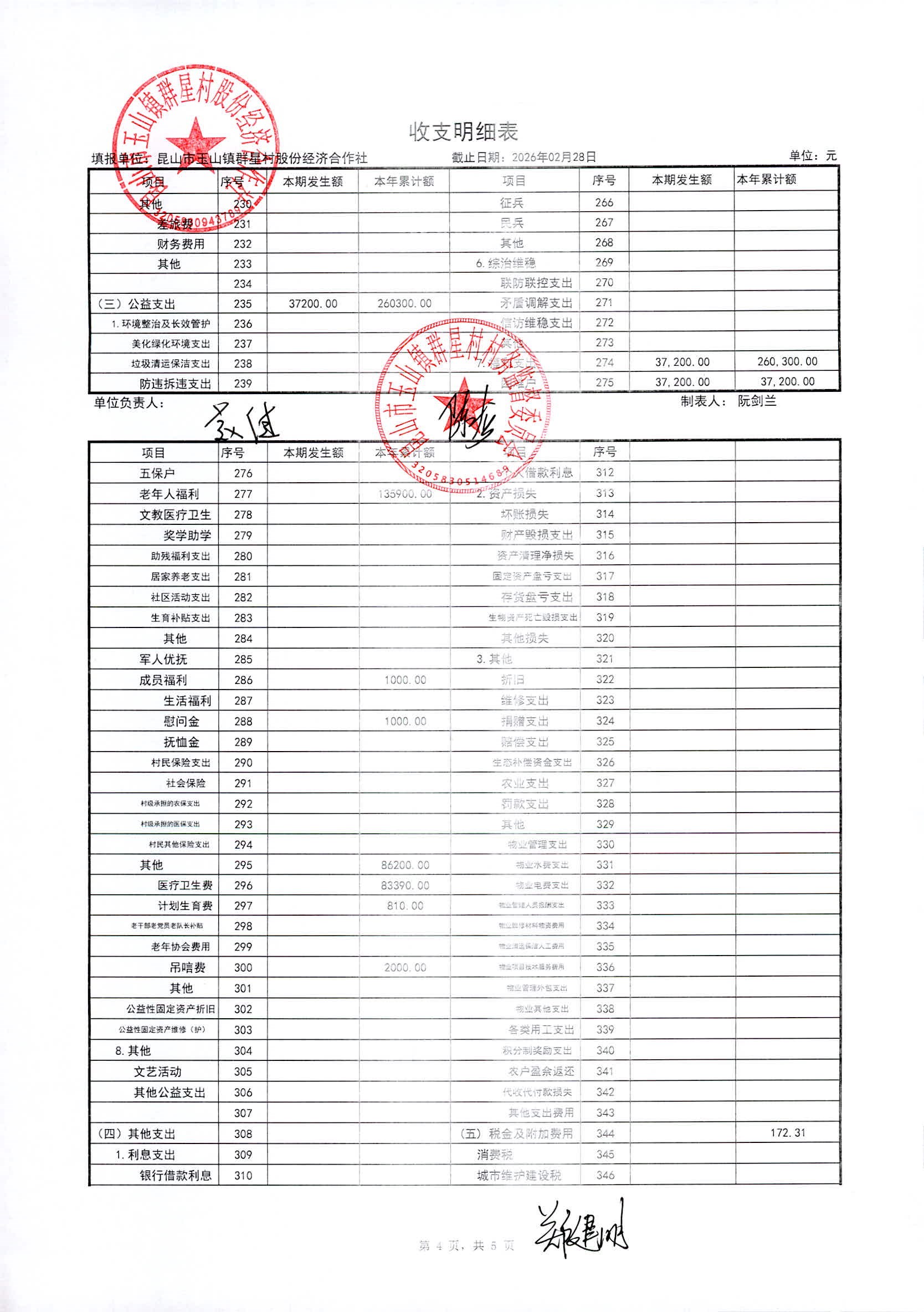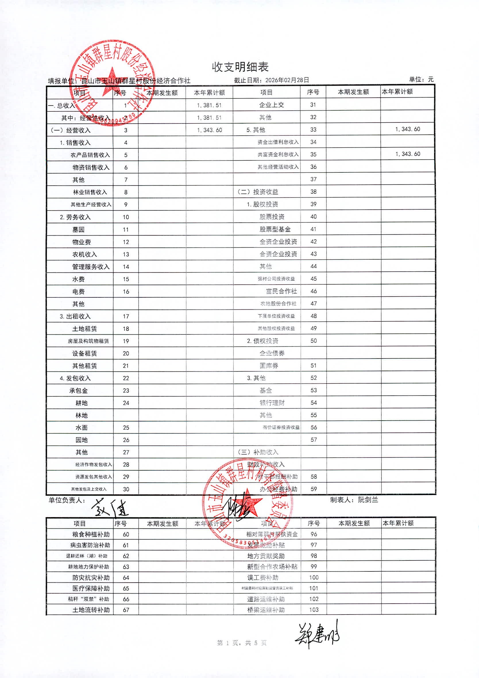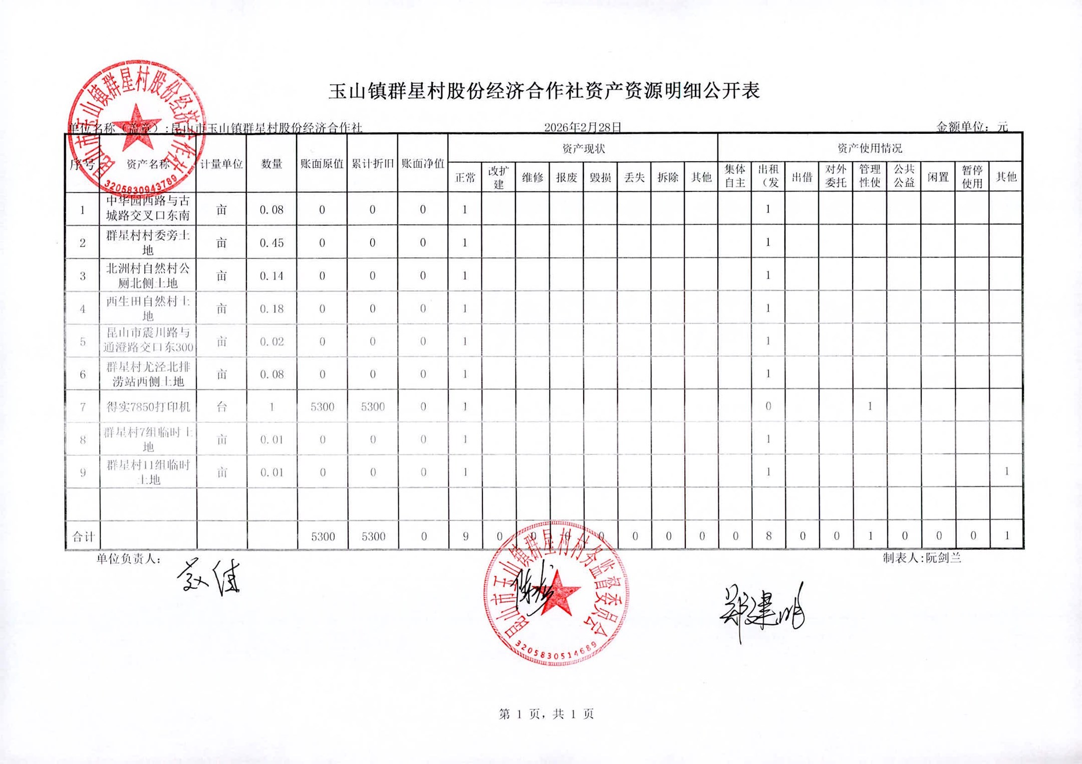 昆山高新区群星村2026年03月份公开股份经济合作社2026年02月财务信息