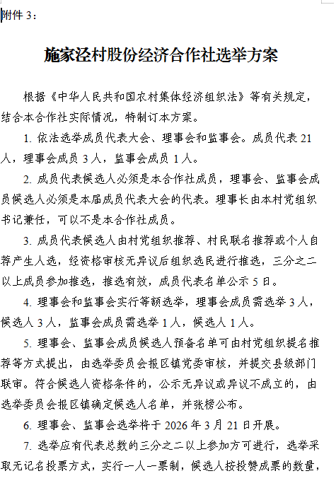 施家泾股份经济合作社换届选举方案