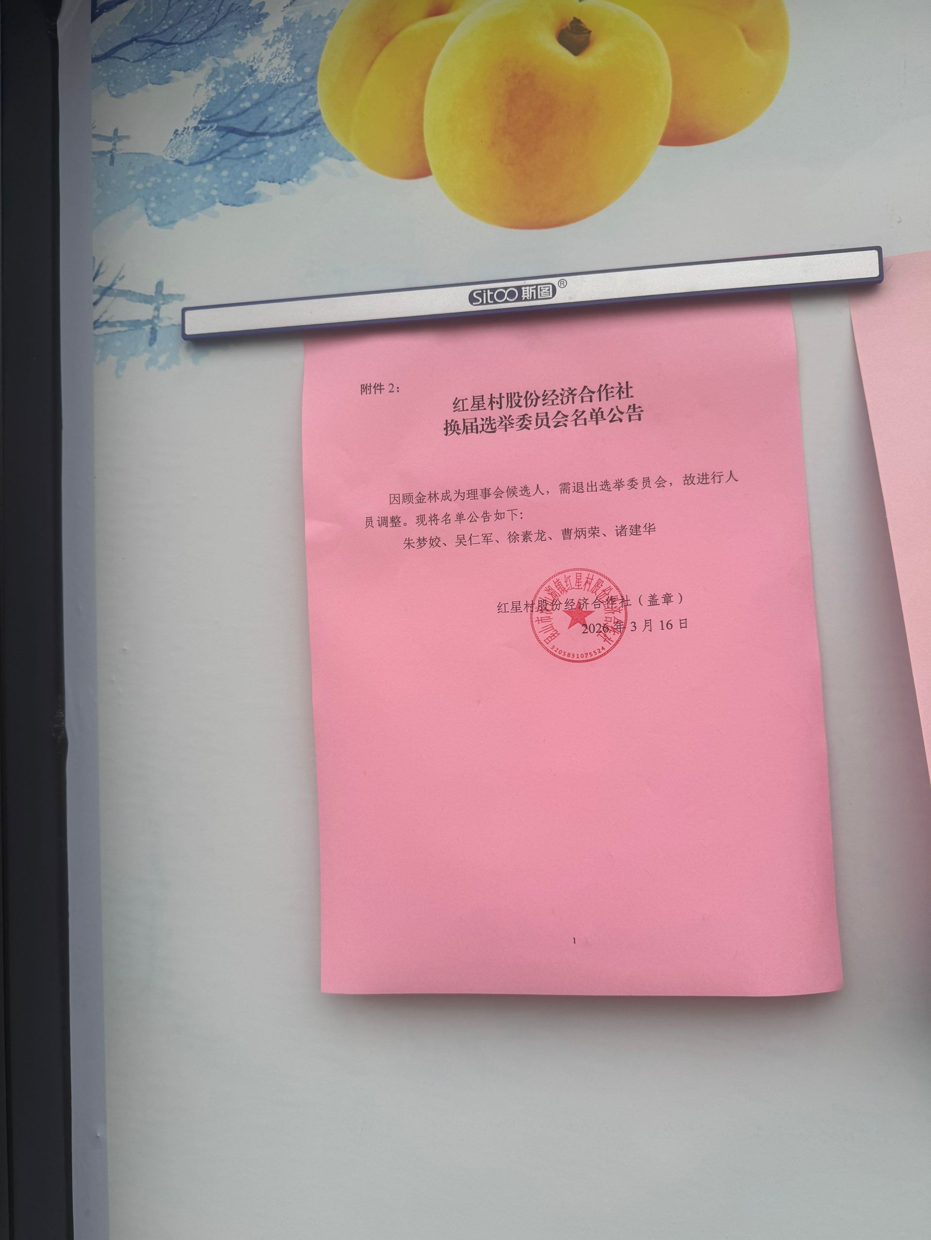 红星村股份经济合作社选举委员会名单第二次公告