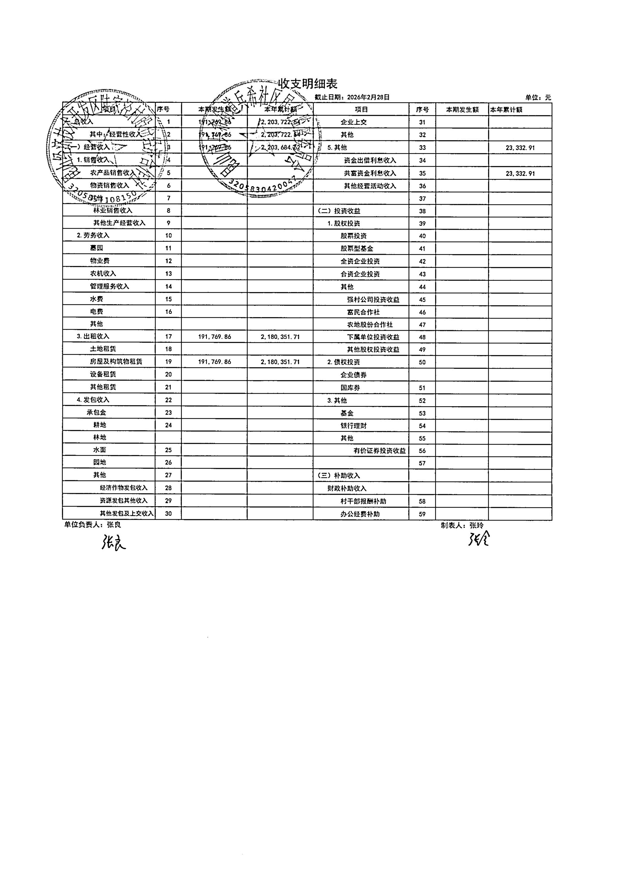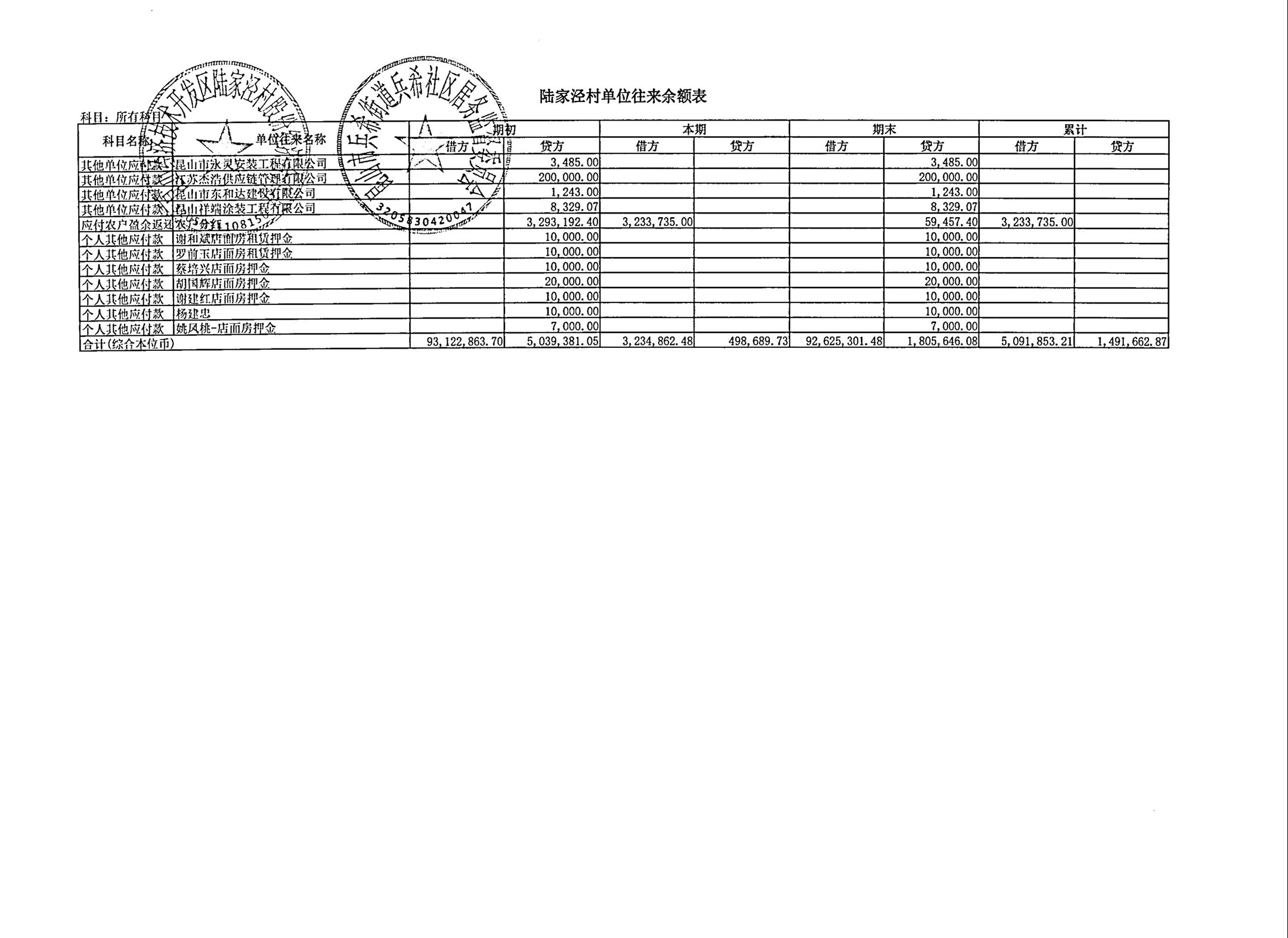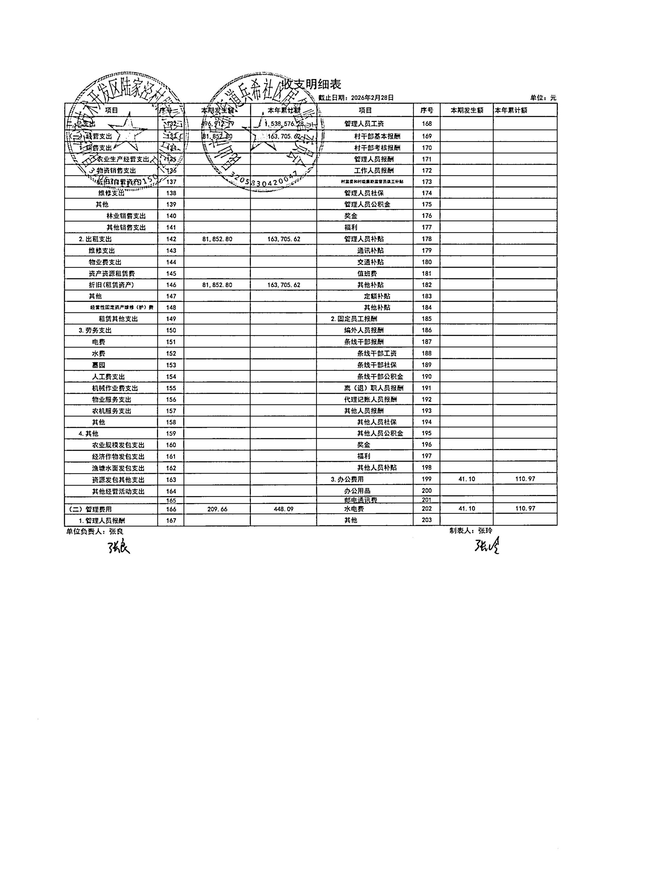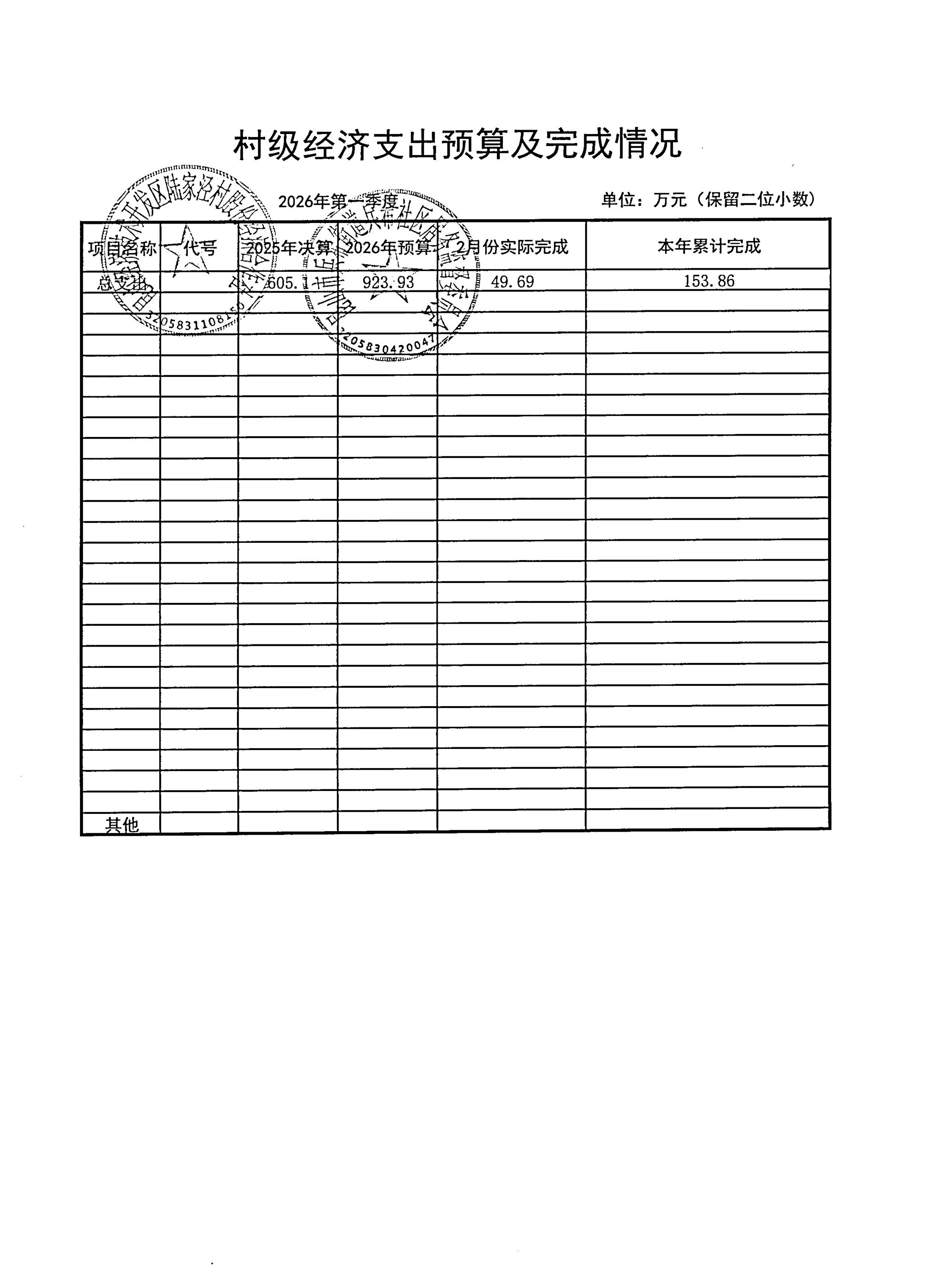 2026年3月陆家泾村财务公开
