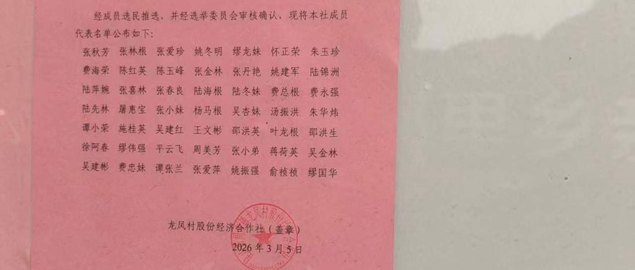 2026年龙凤村股份经济合作社换届选举社成员代表公告