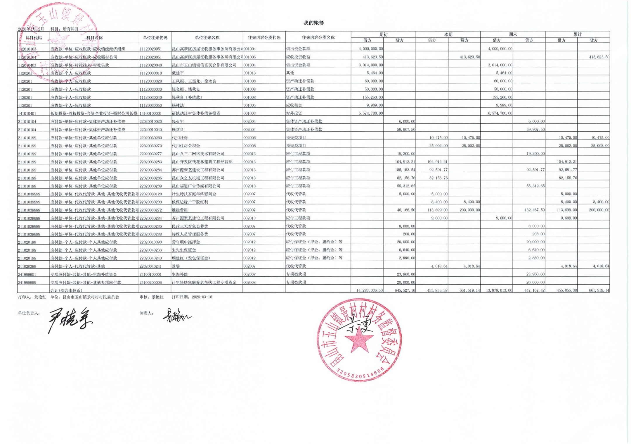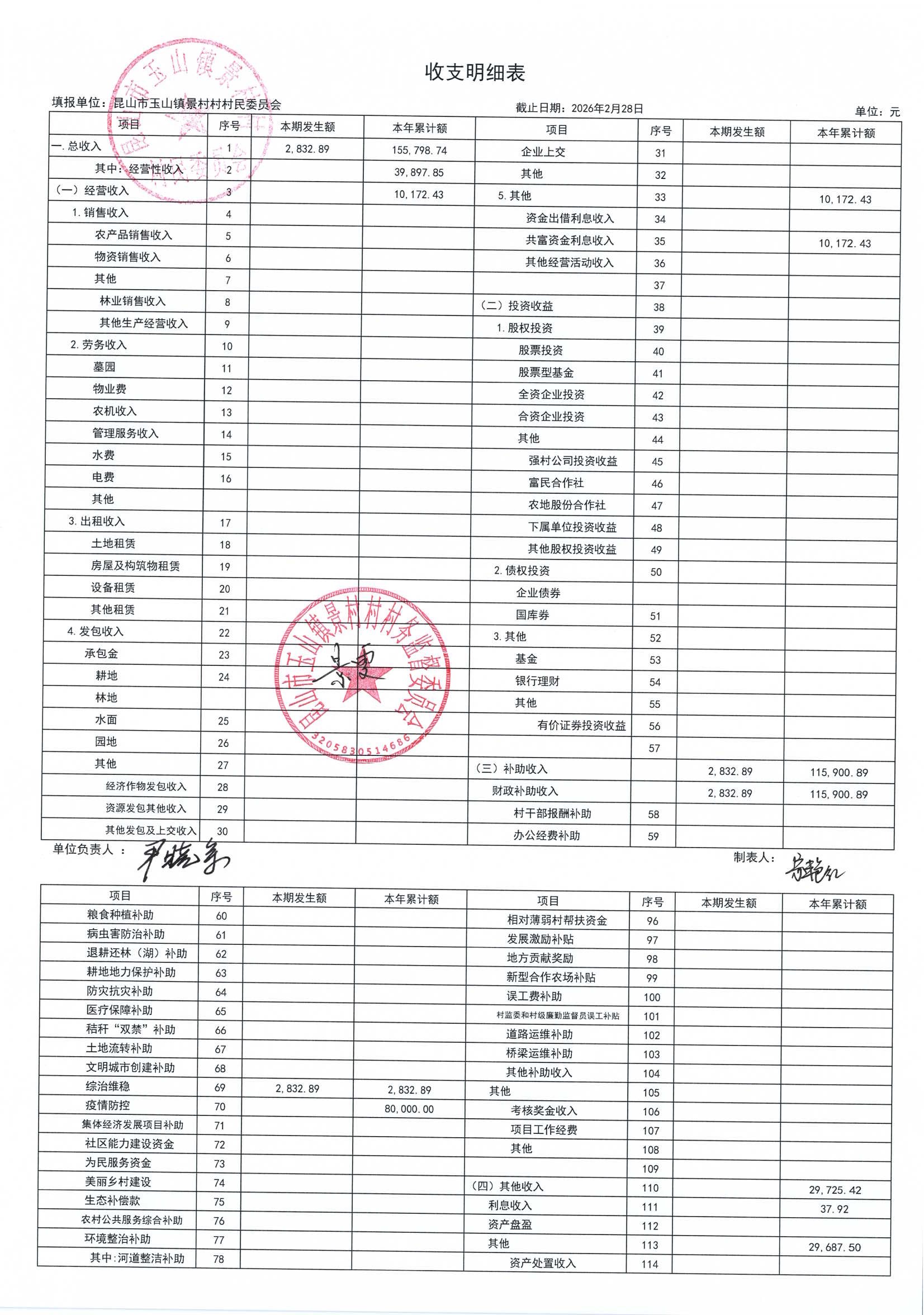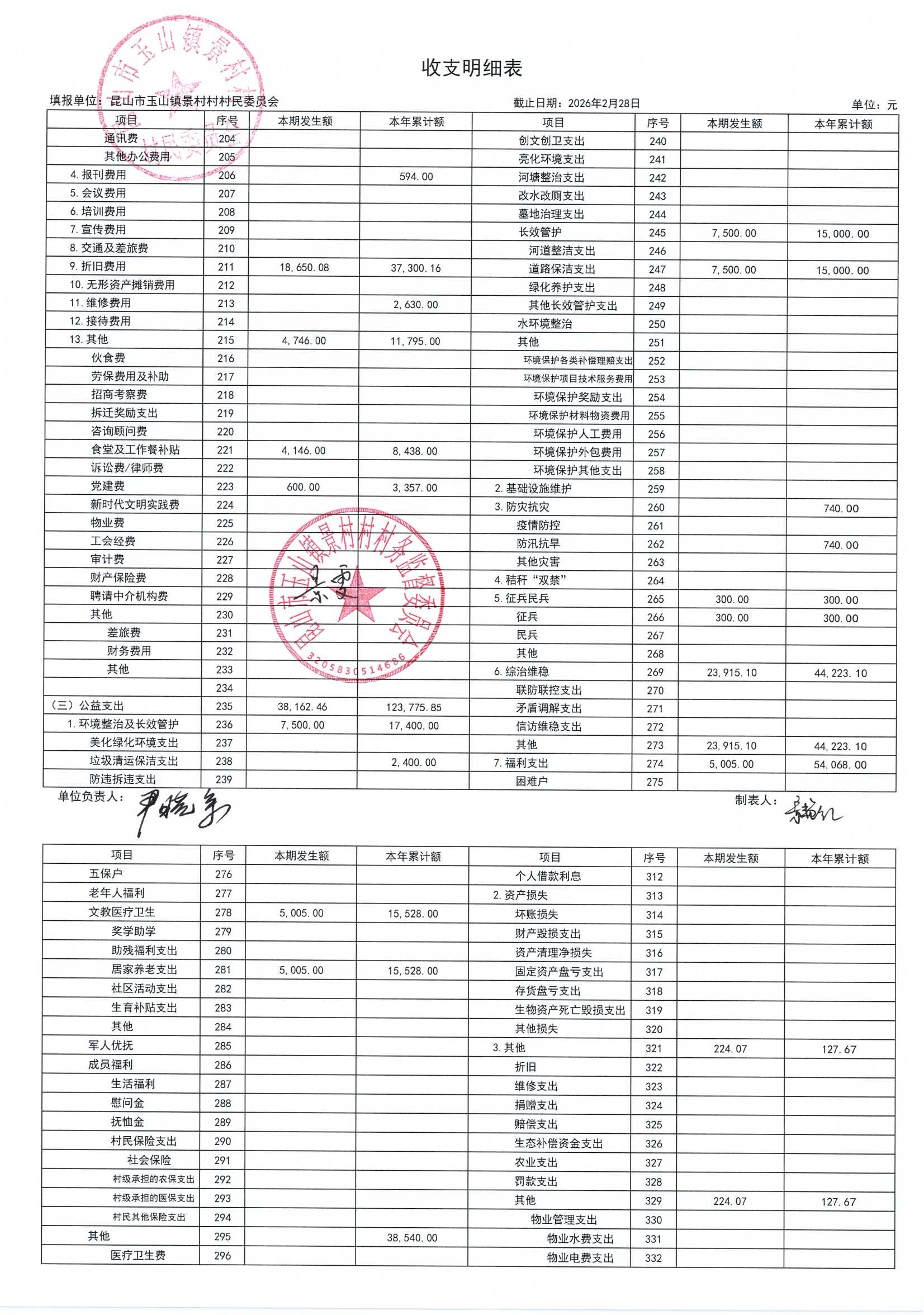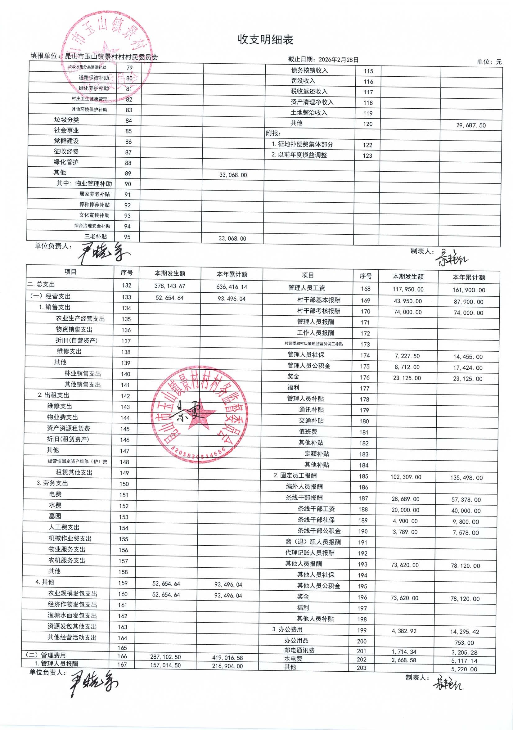 高新区景村村委会2026年3月财务公开: