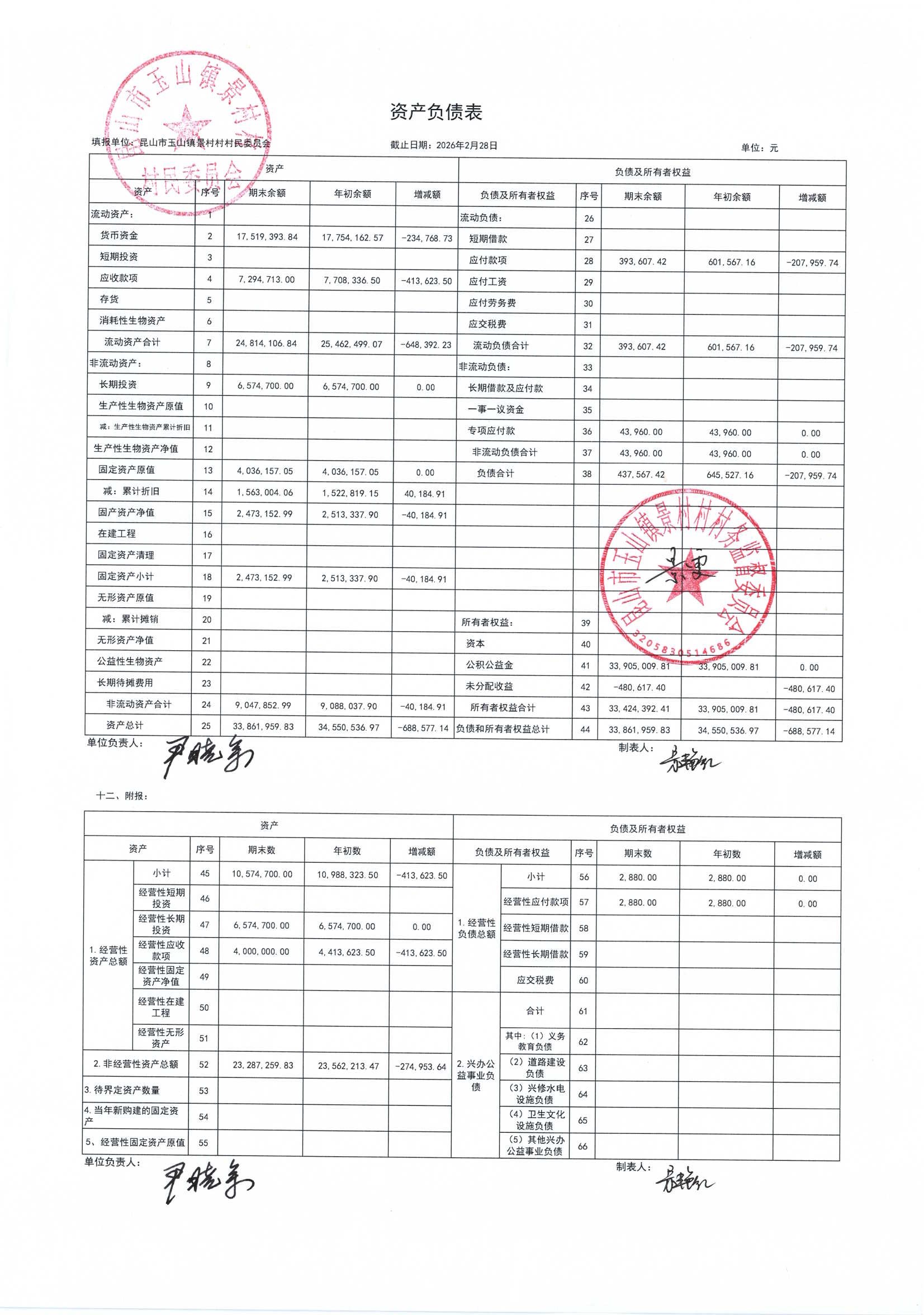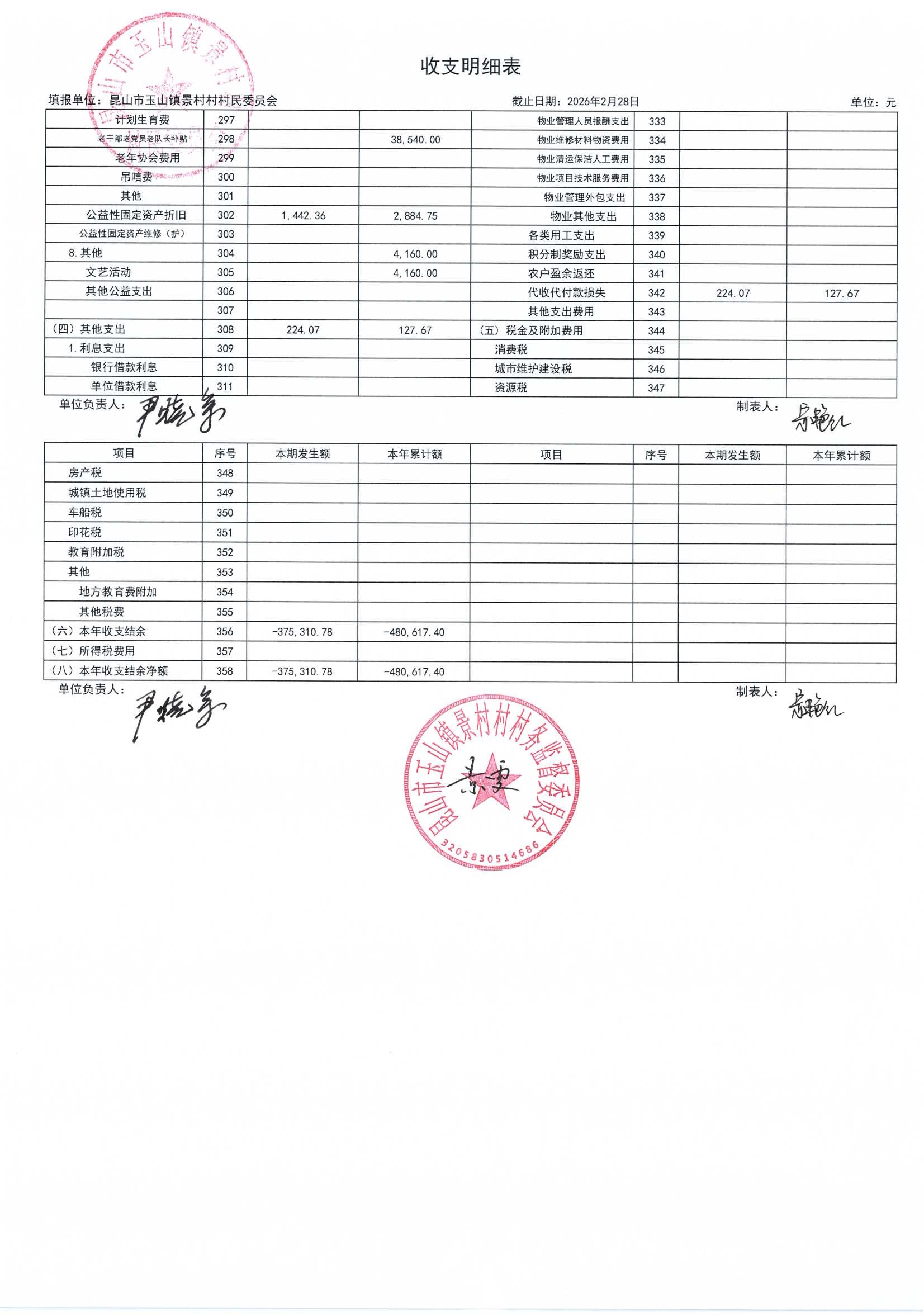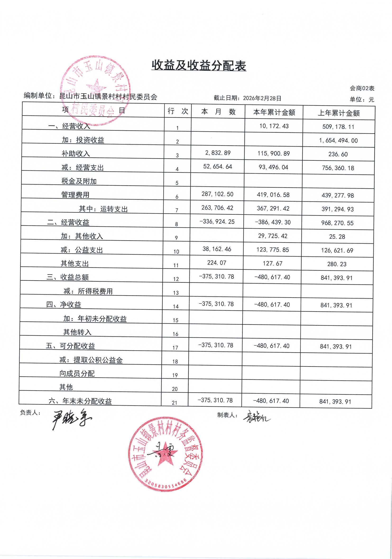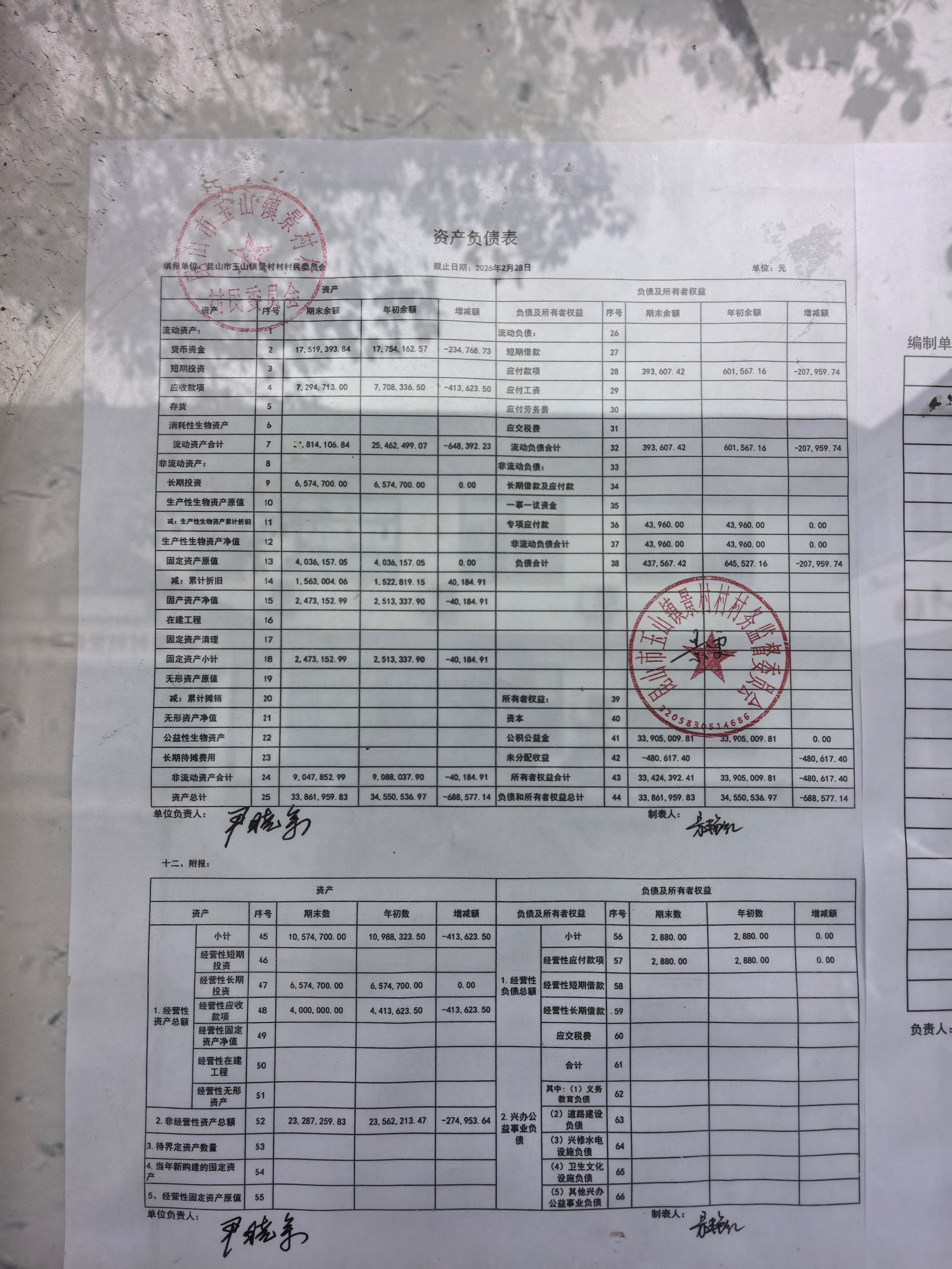 高新区景村村委会2026年3月财务公开: