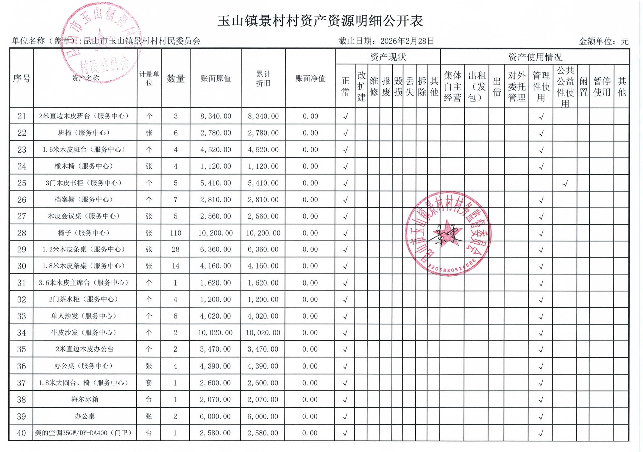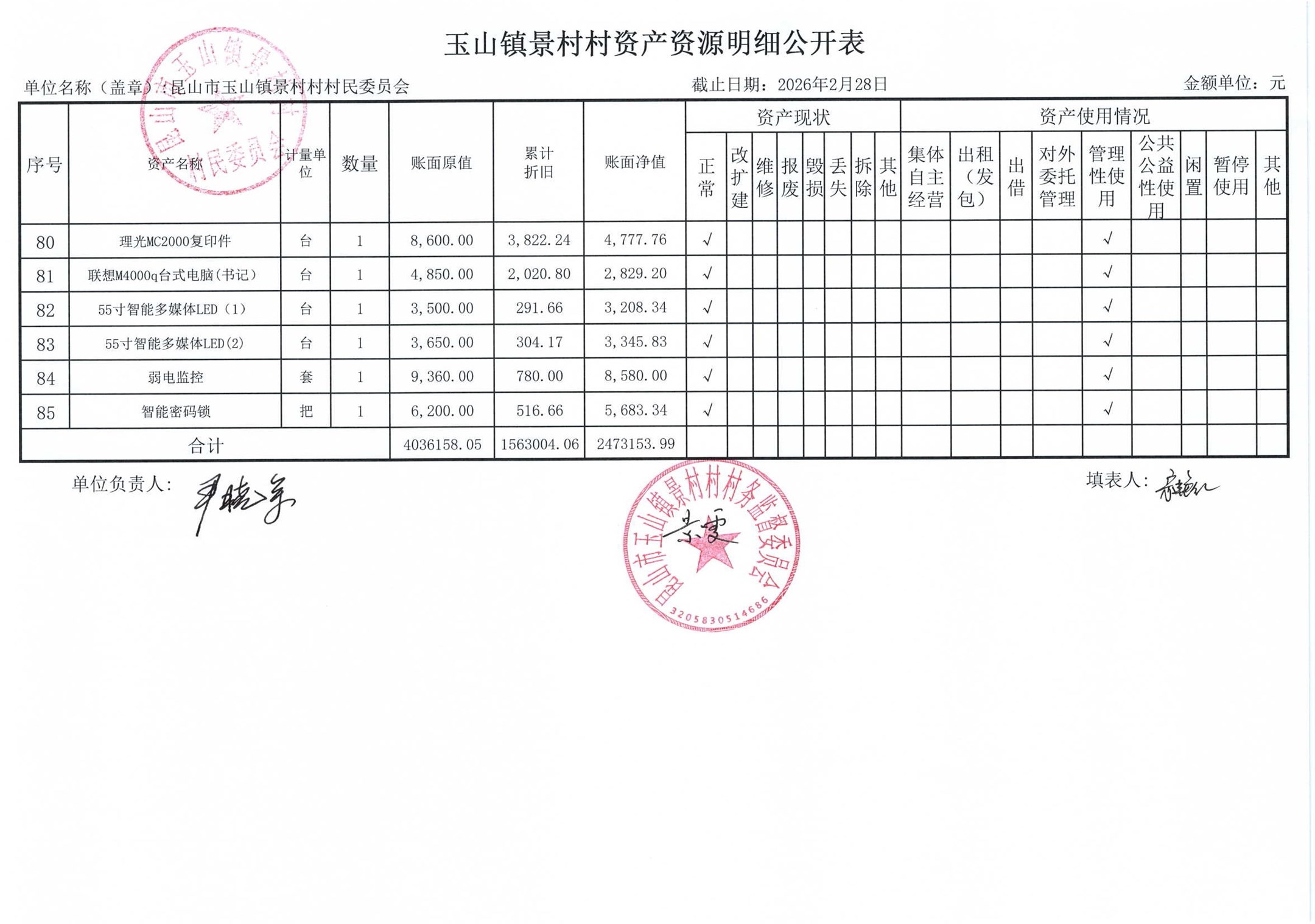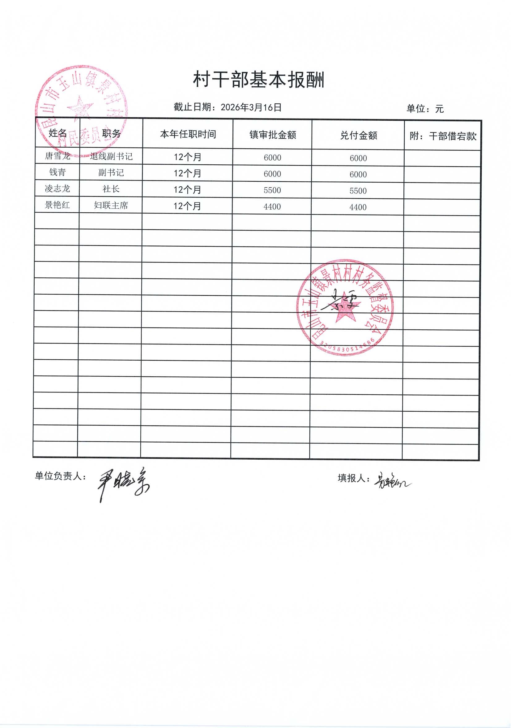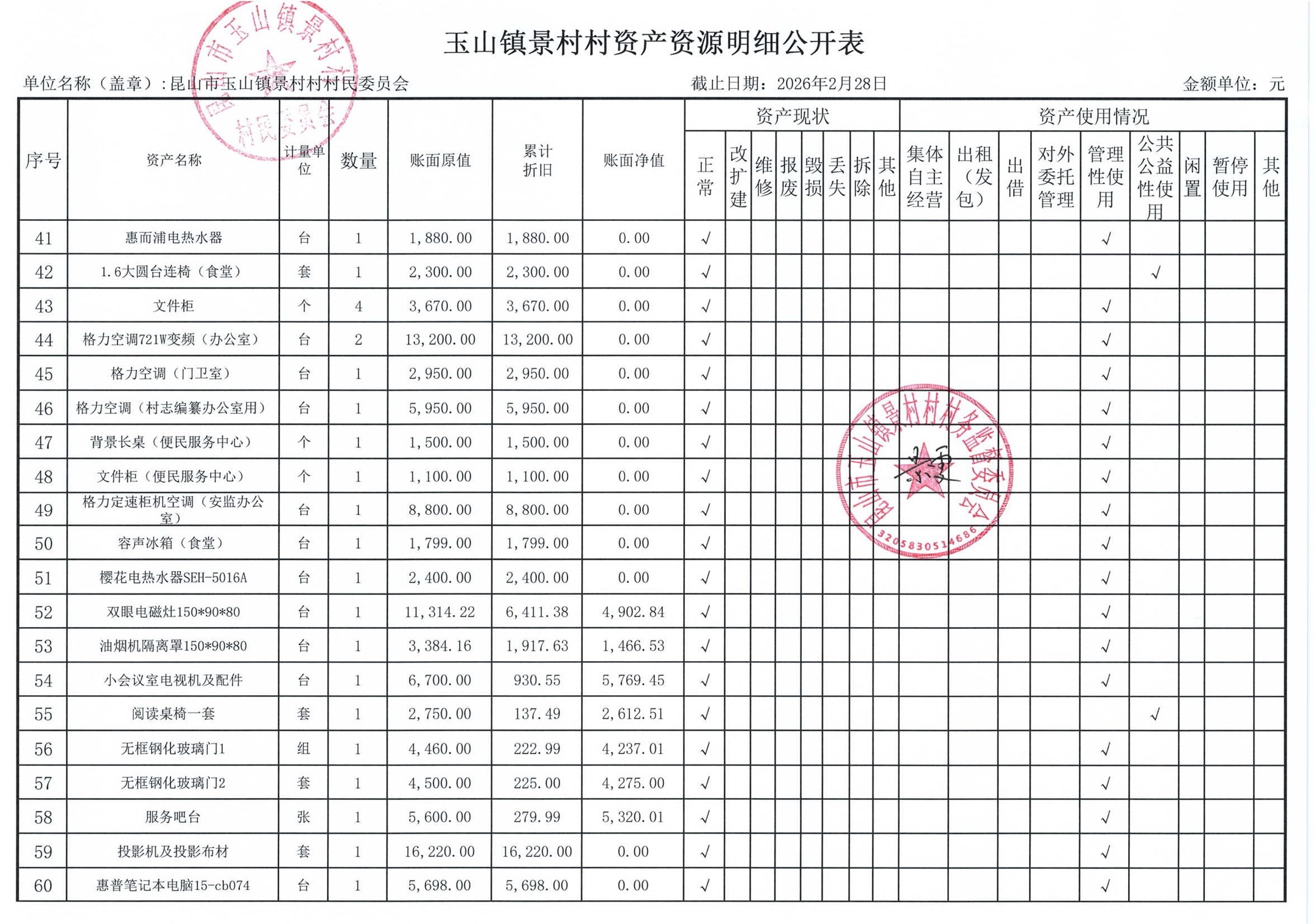 高新区景村村委会2026年3月财务公开: