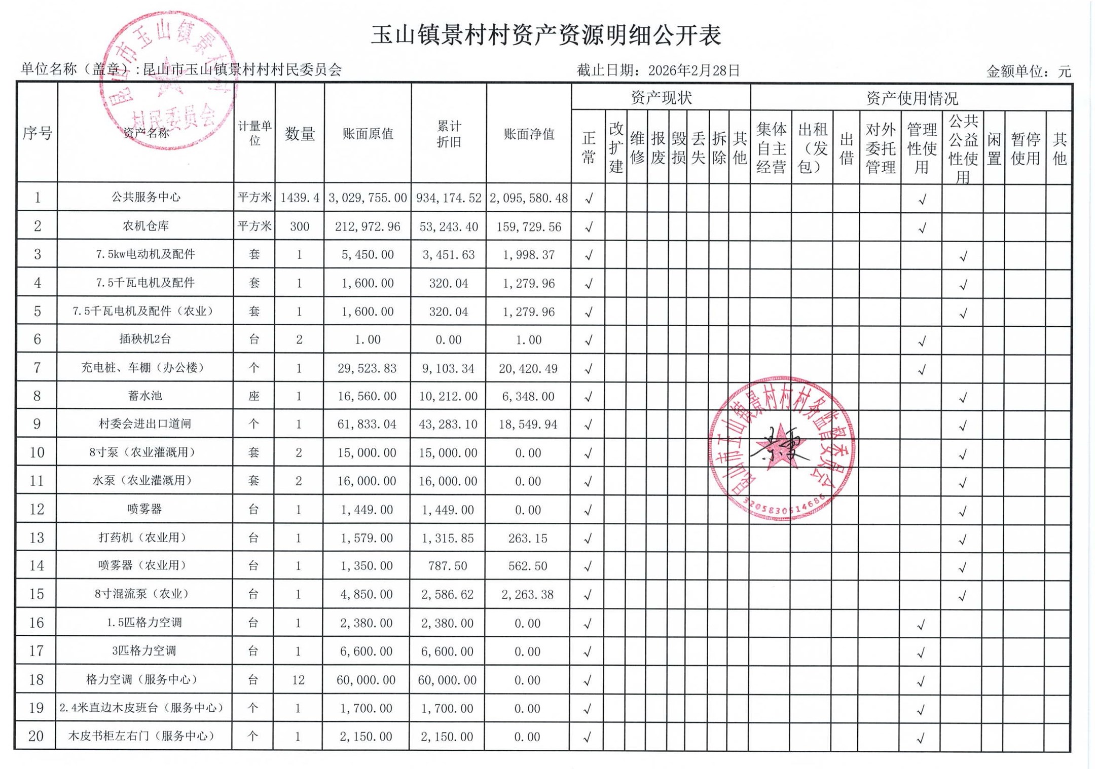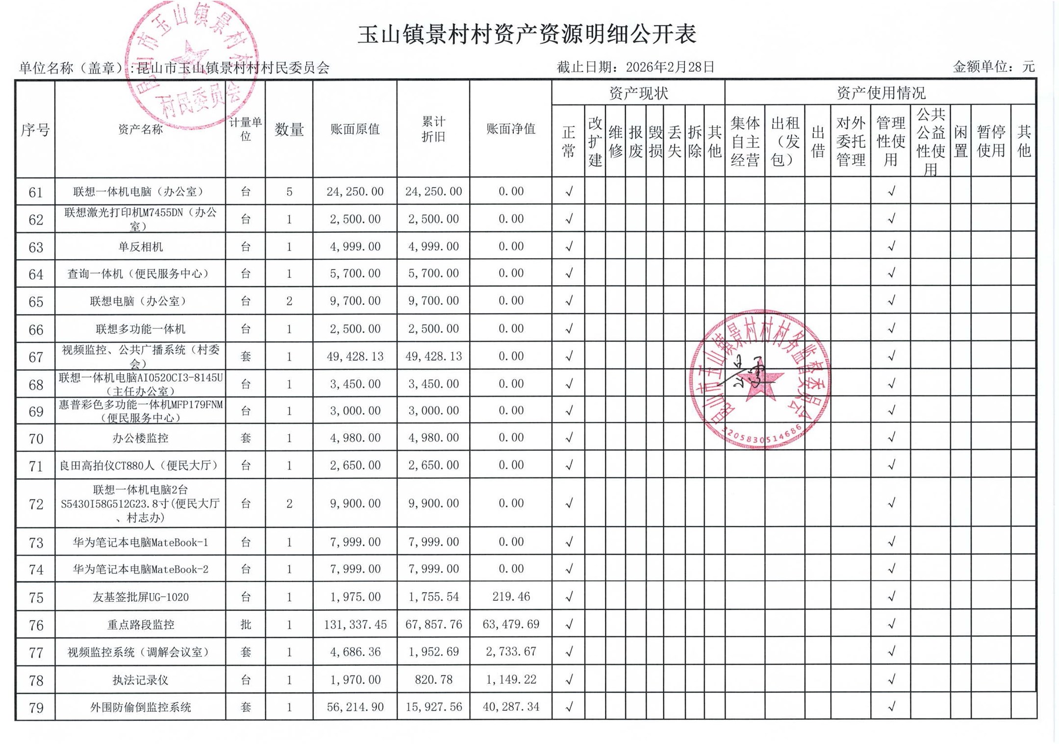 高新区景村村委会2026年3月财务公开