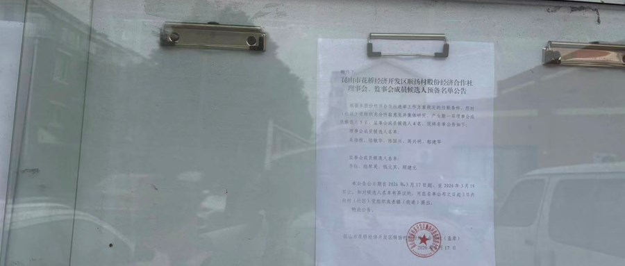 昆山市花桥经济开发区顺扬村股份经济合作社理事会、监事会成员候选人预备名单公告