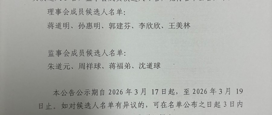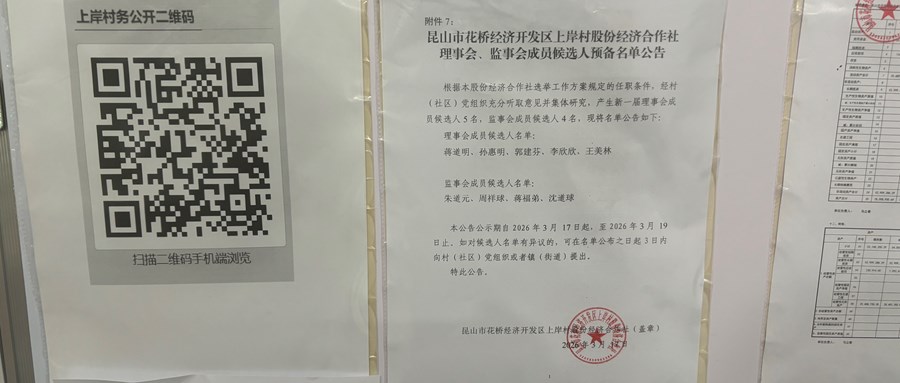 2026年上岸村股份经济合作社 理事会、监事会成员候选人预备名单公告