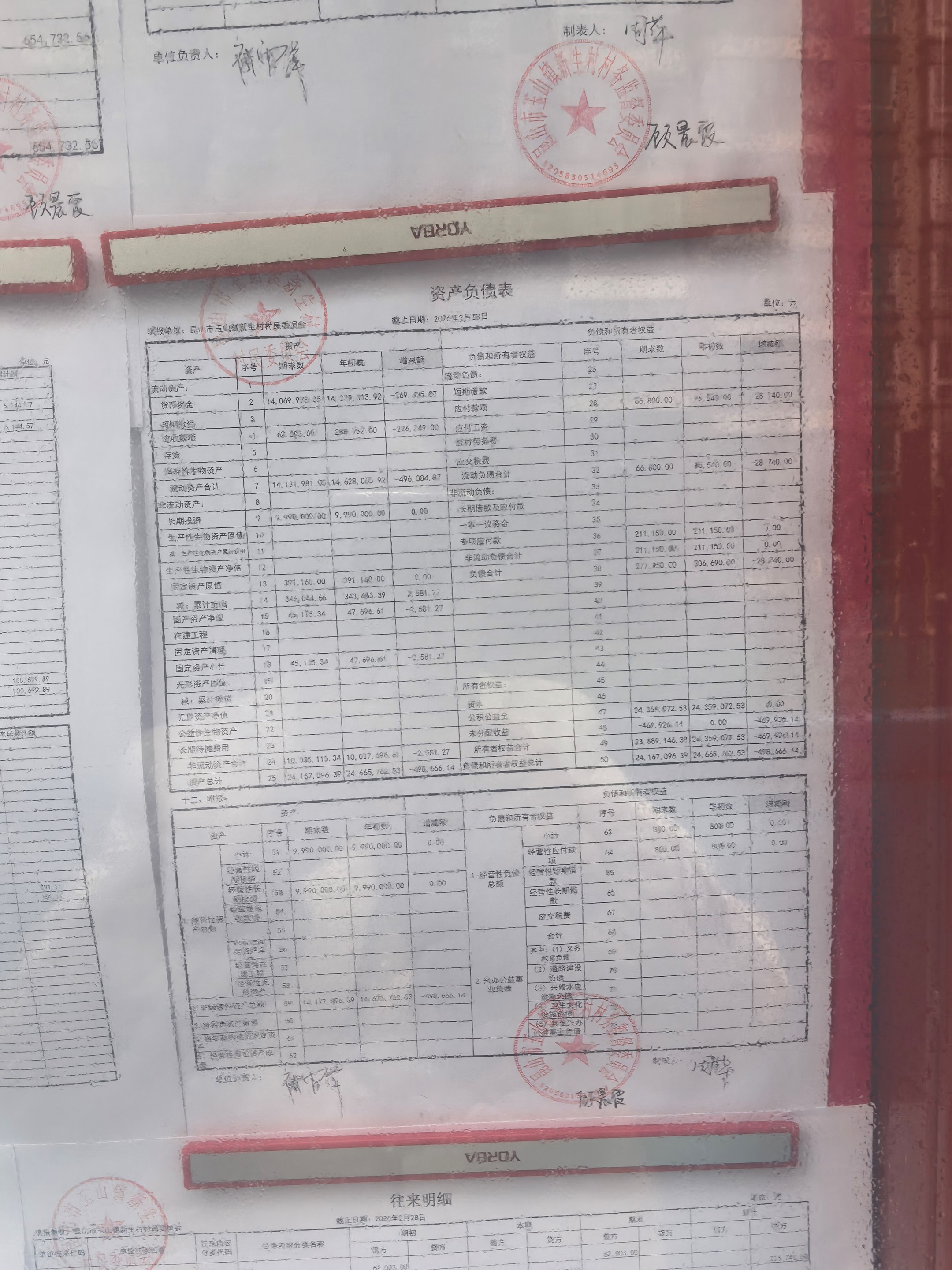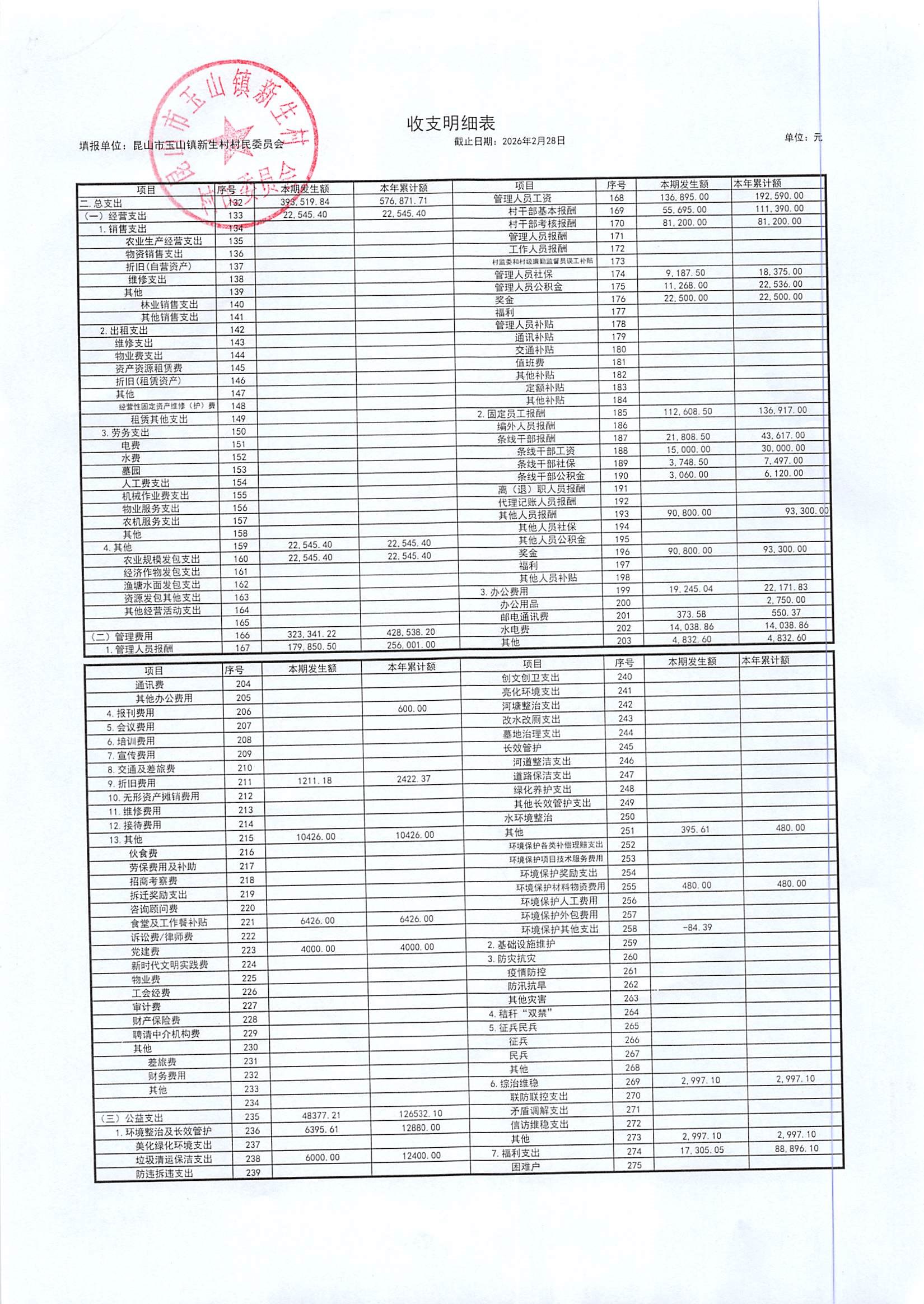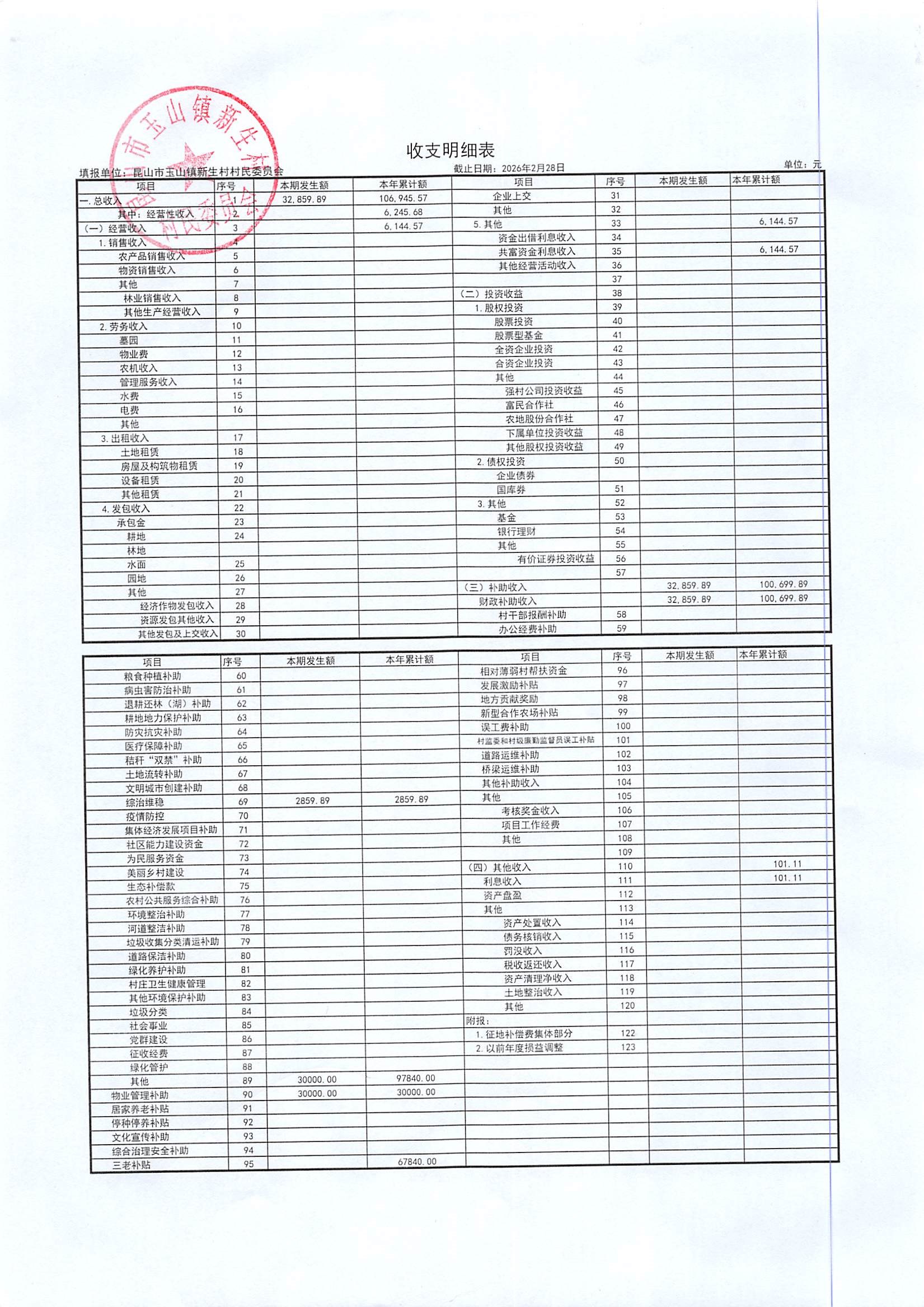 2026年3月新生村村民委员会财务公开