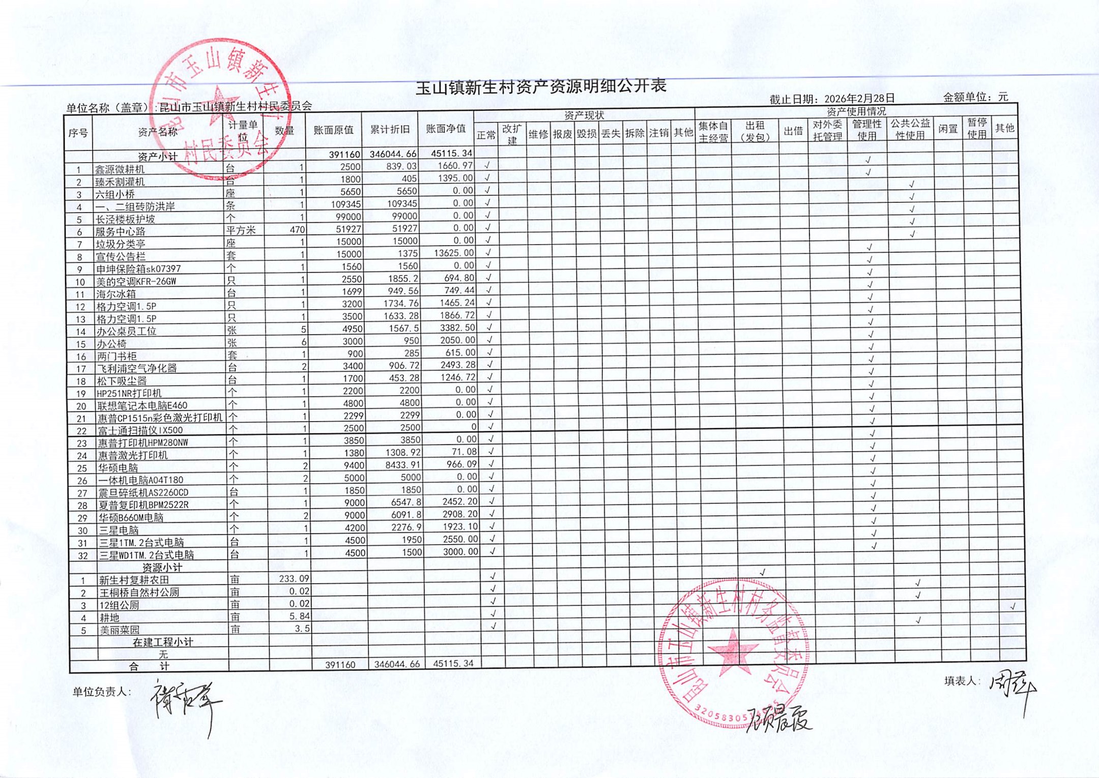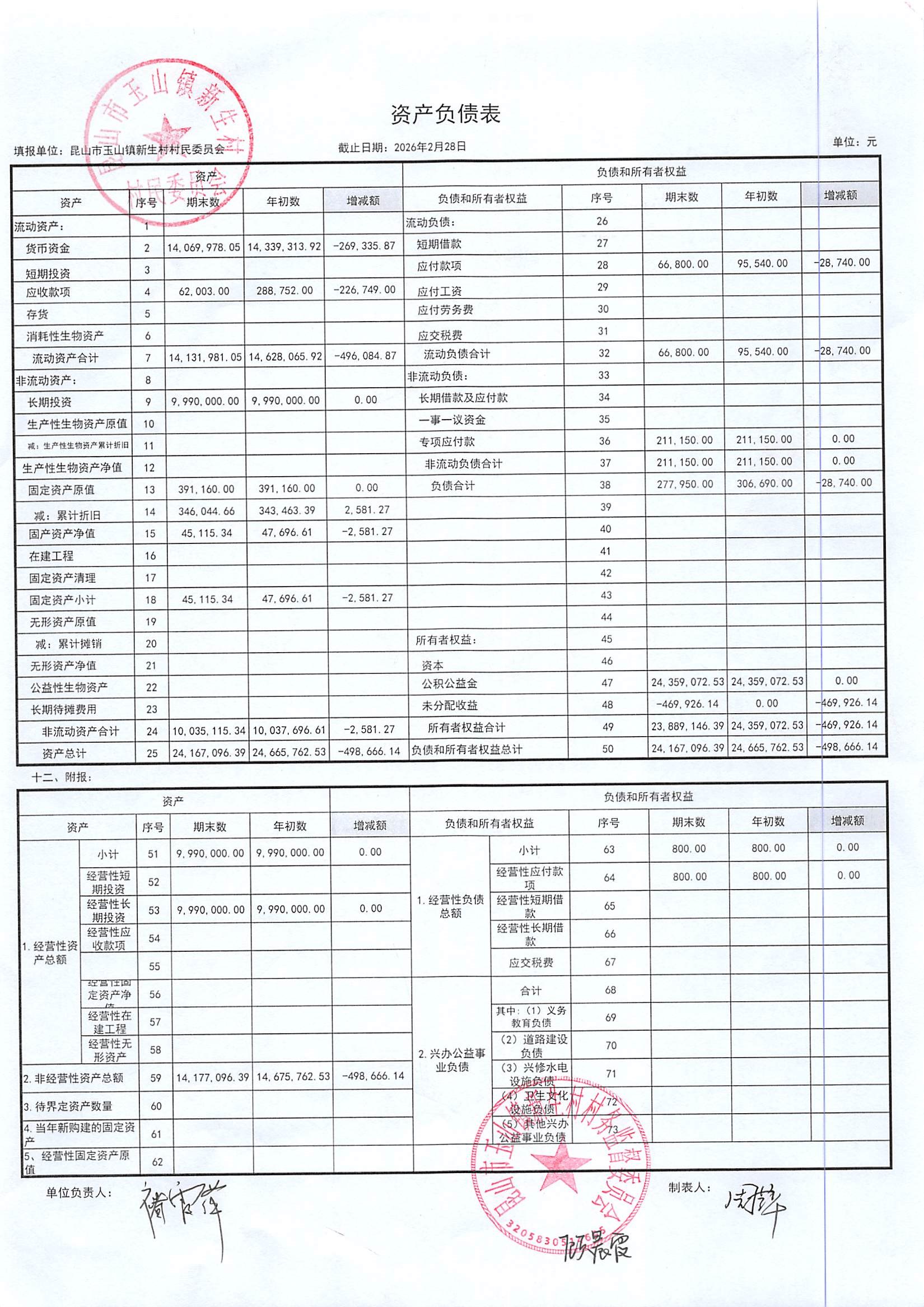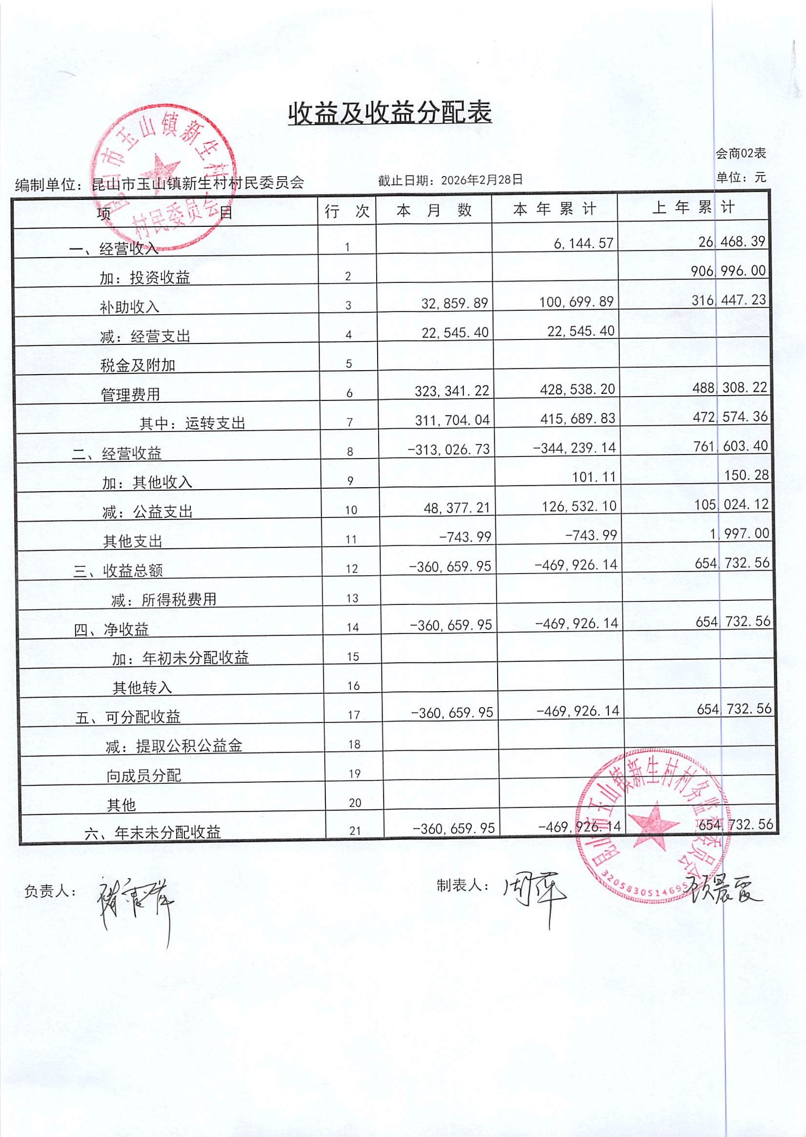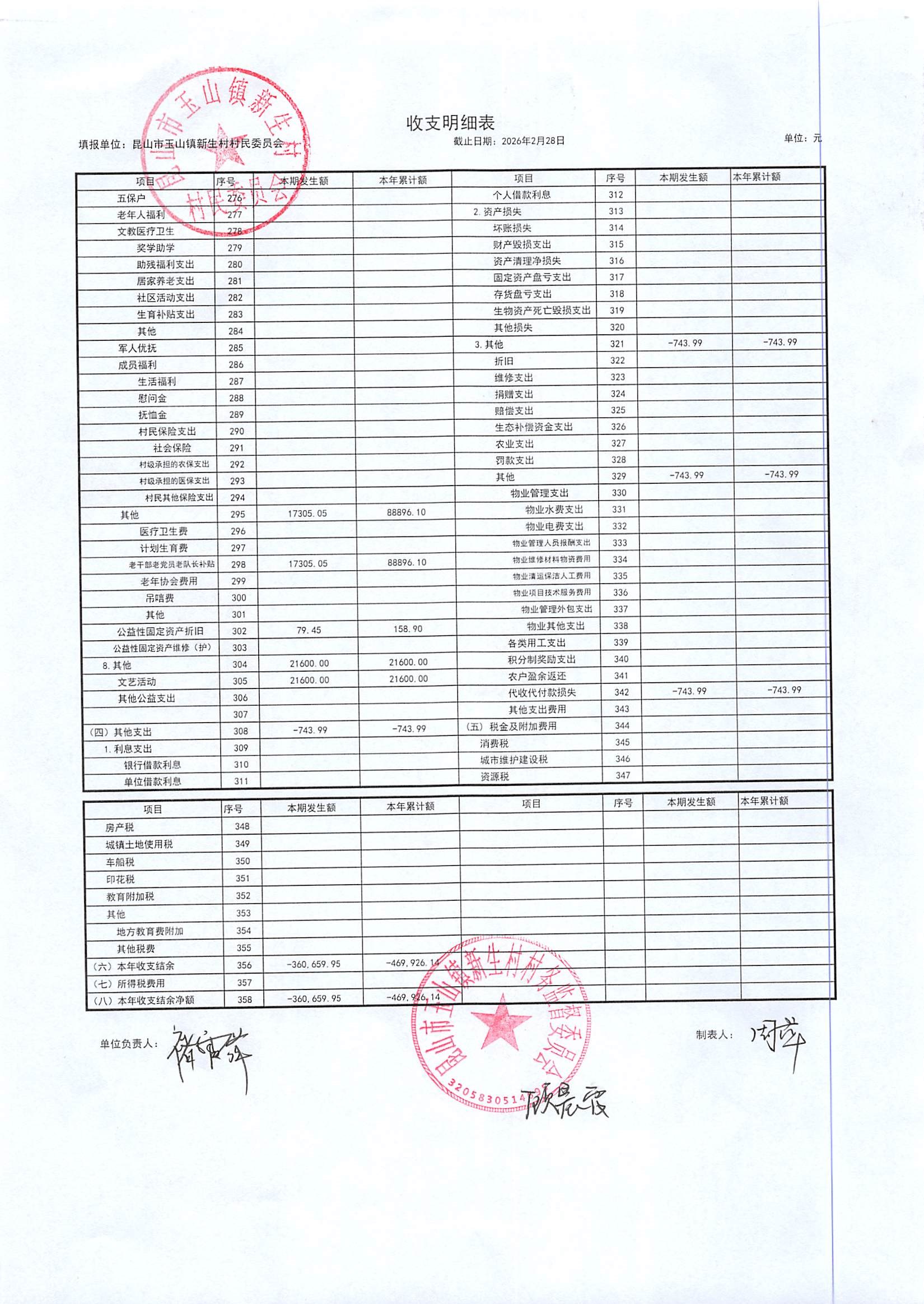 2026年3月新生村村民委员会财务公开