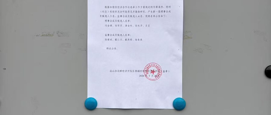 巷浦村股份经济合作社 理事会、监事会成员候选人正式名单公告2026年3月20日