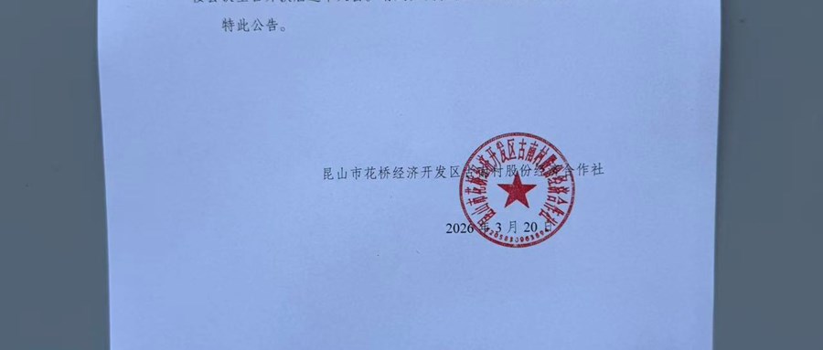 昆山市花桥经济开发区古南村股份经济合作社换届选举 选举日公告