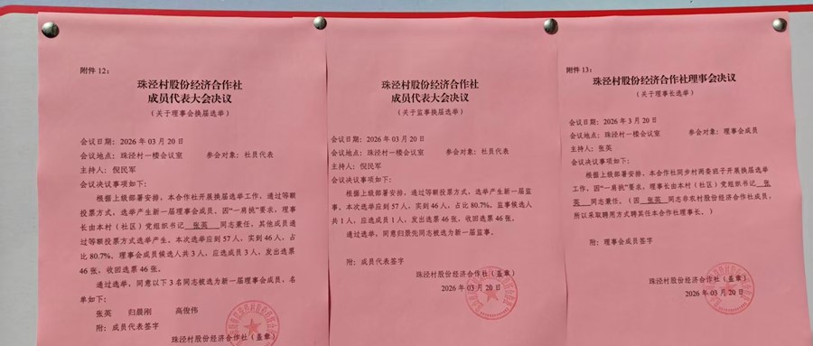 珠泾村股份经济合作社理事会、成员代表大会决议