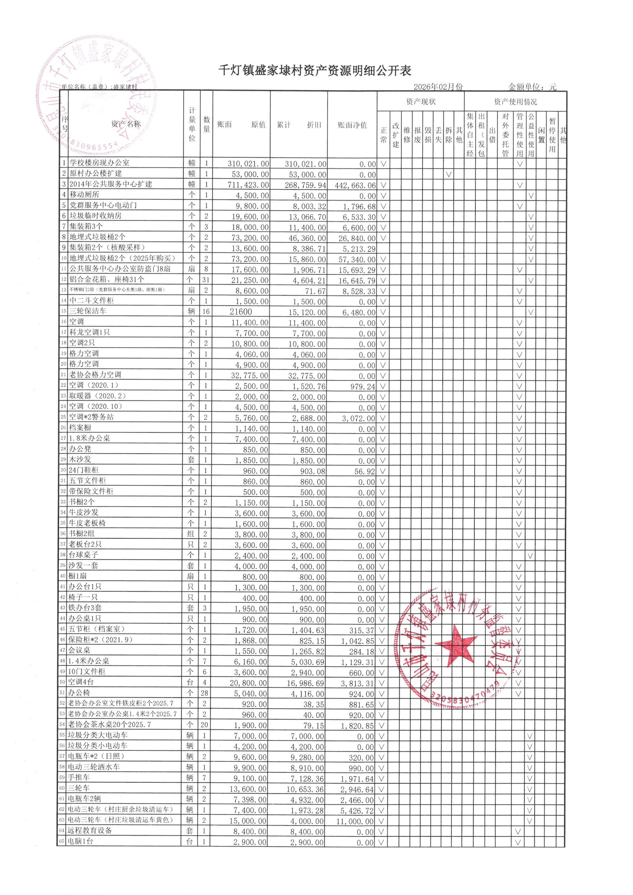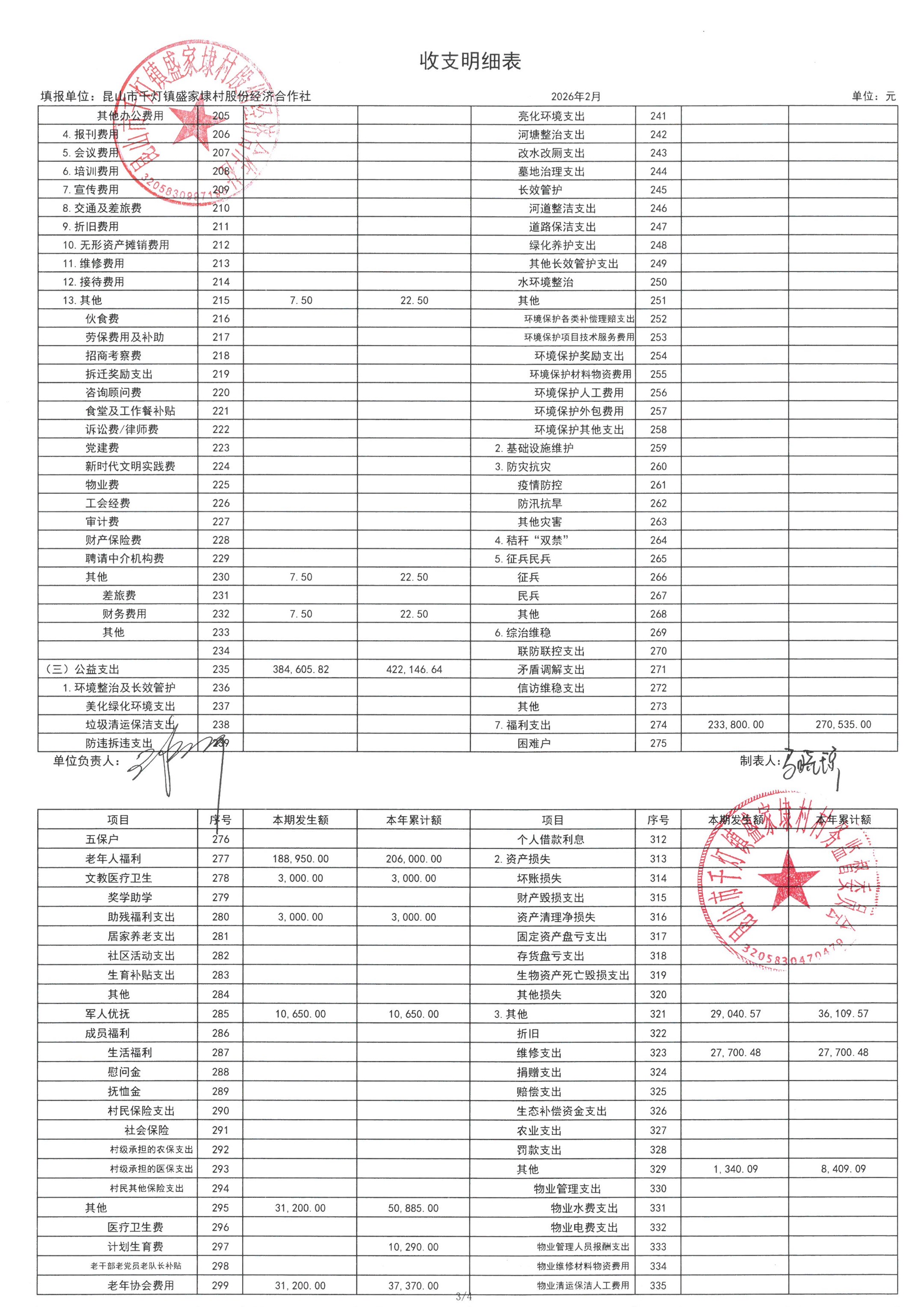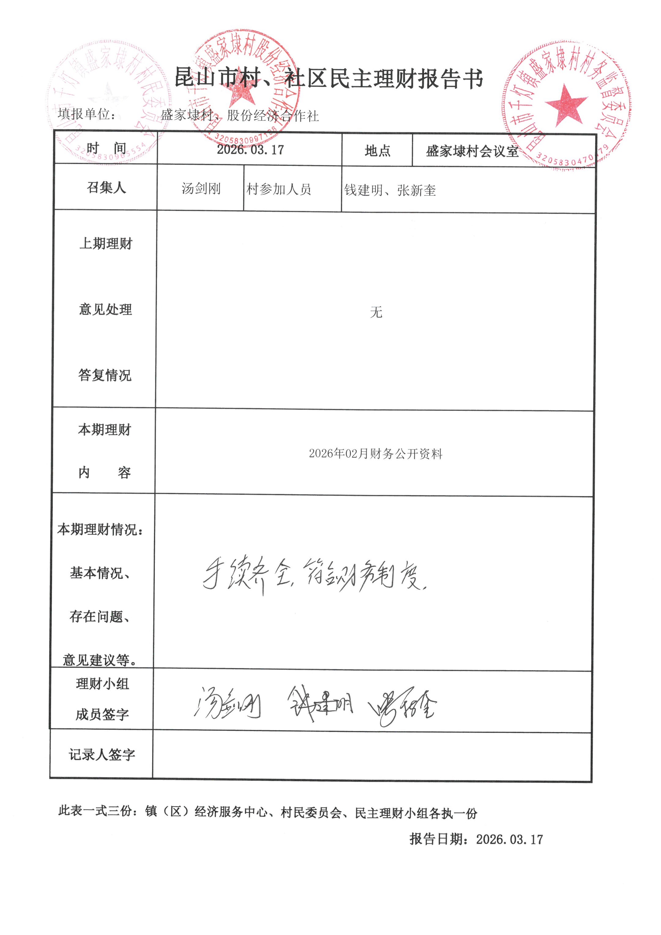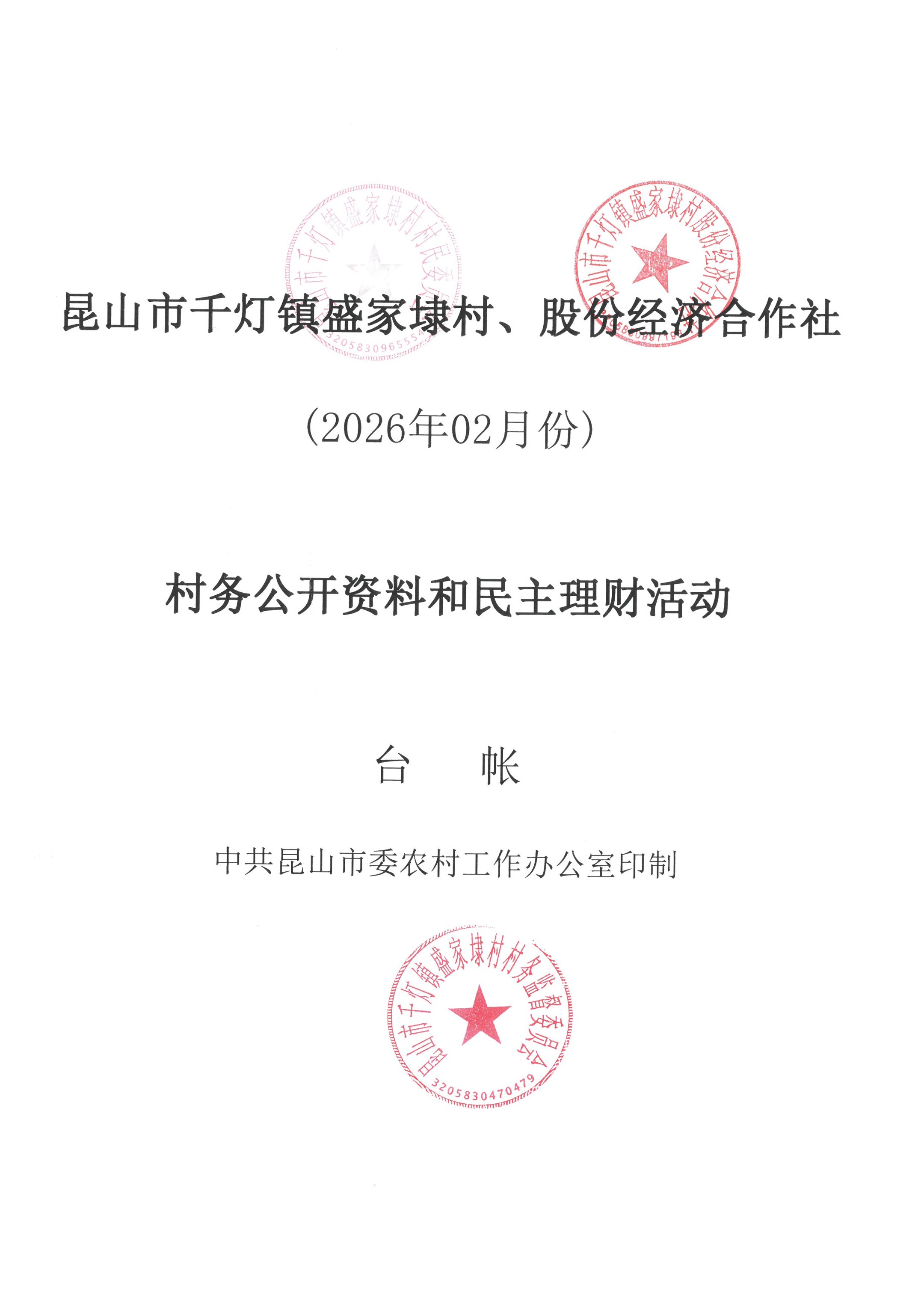 2026年02月份盛家埭村、股份经济合作社定期公开