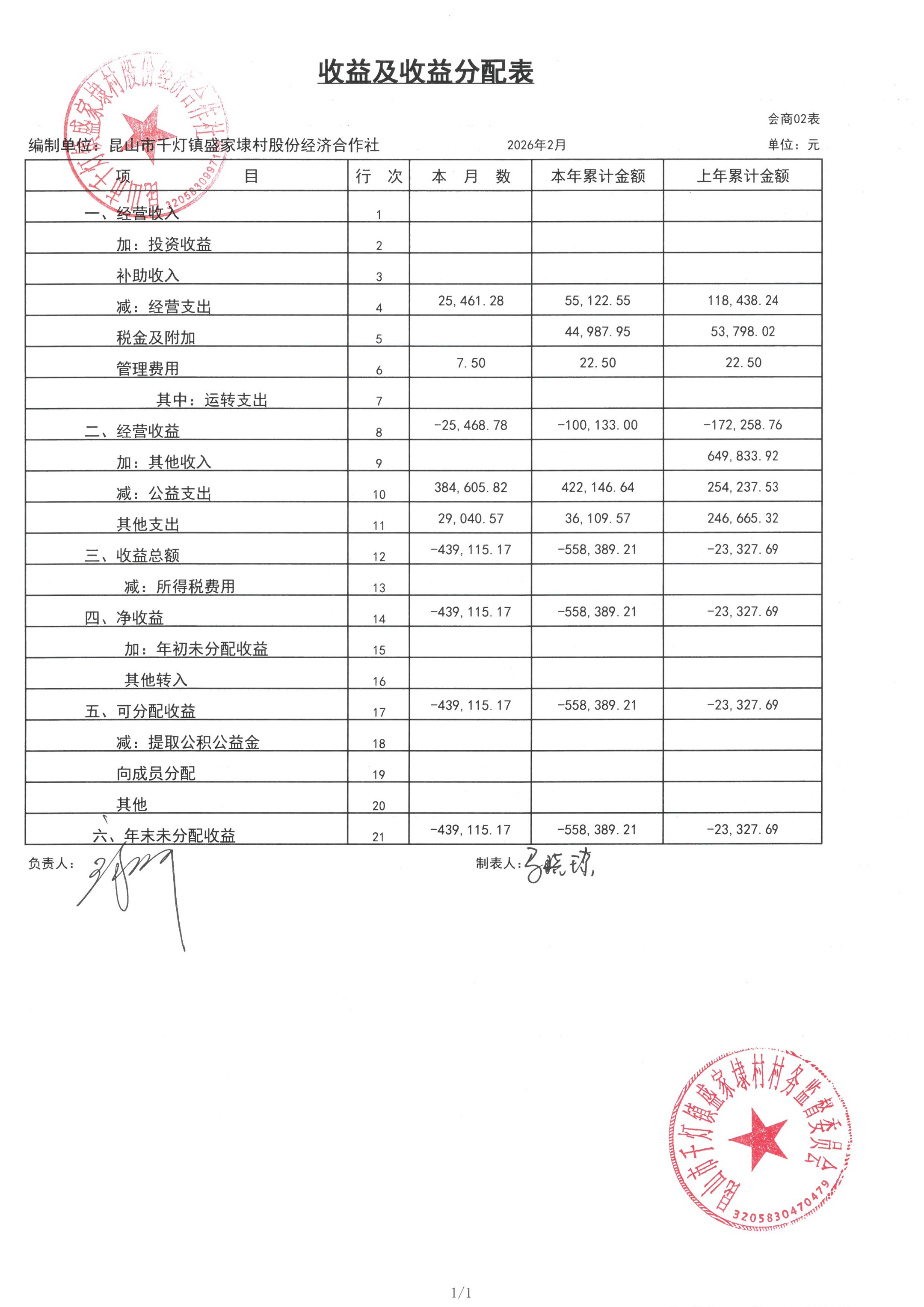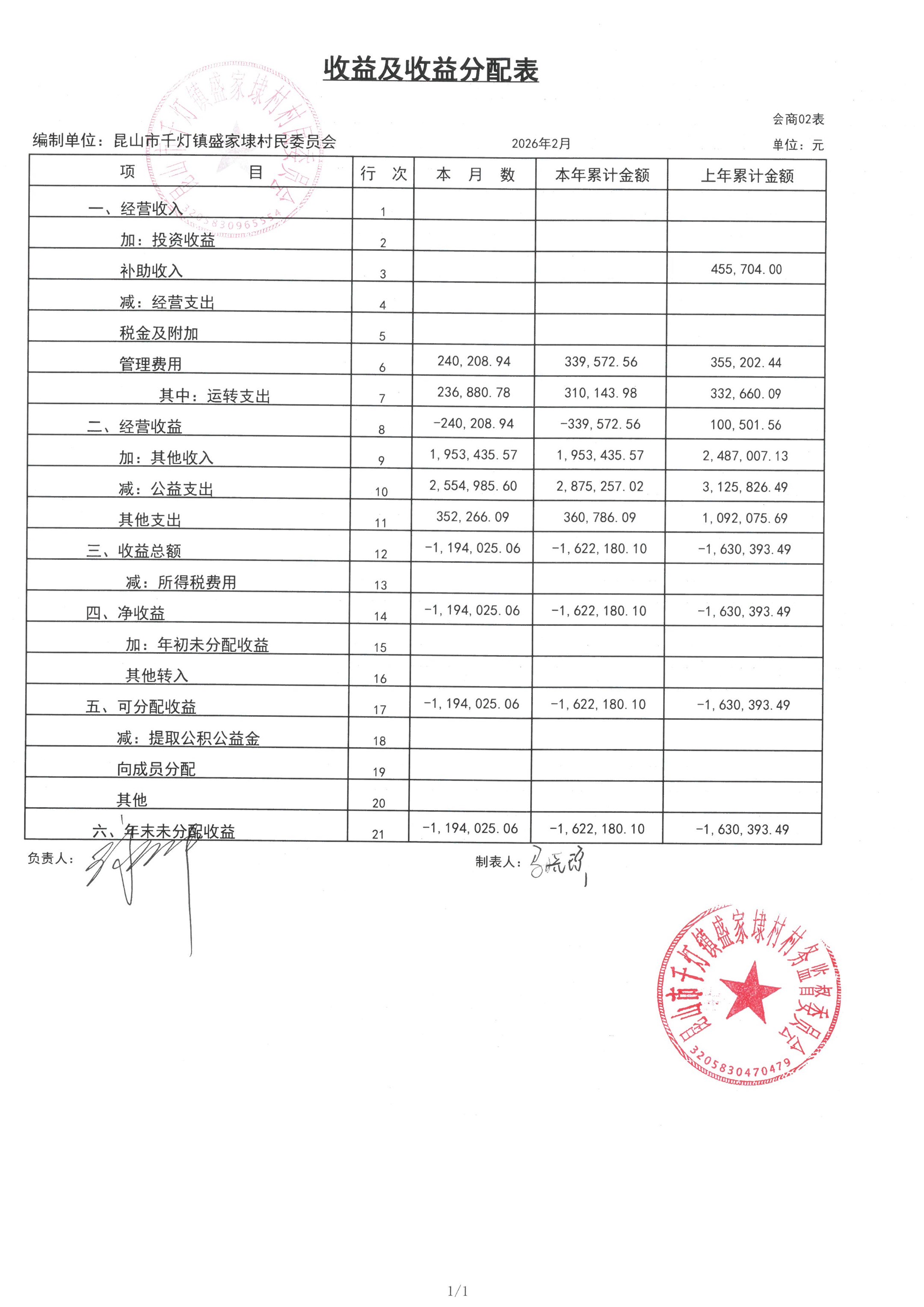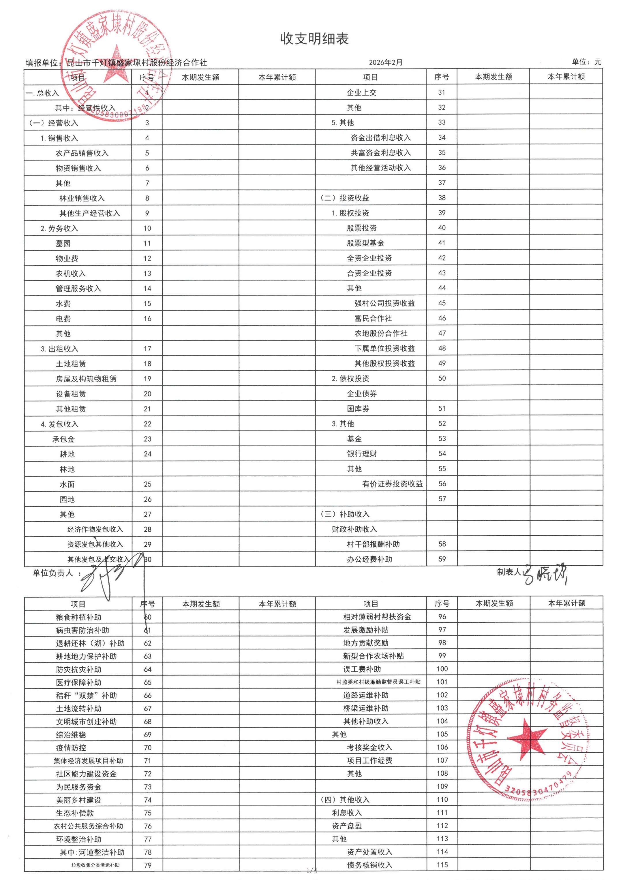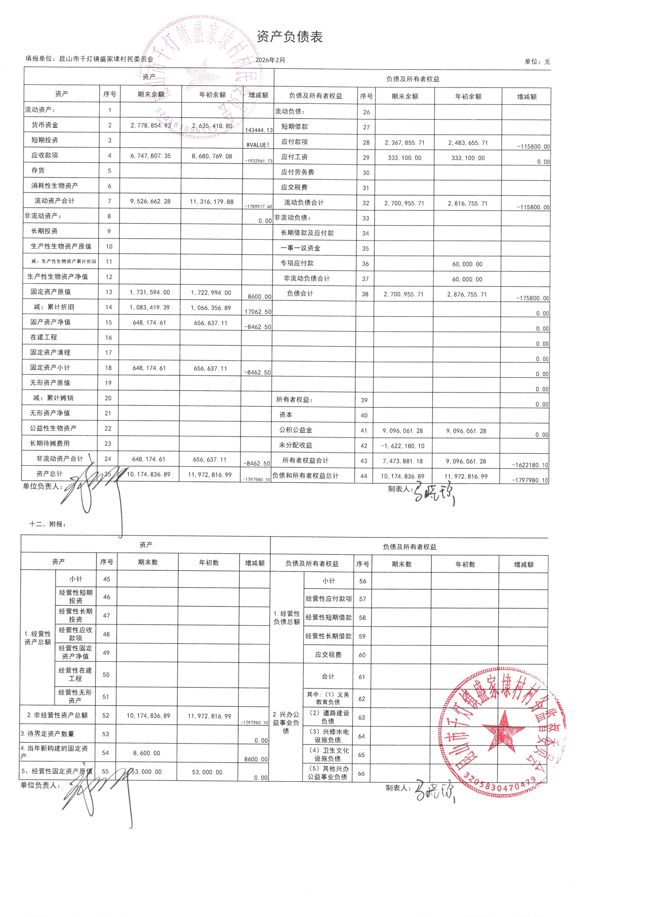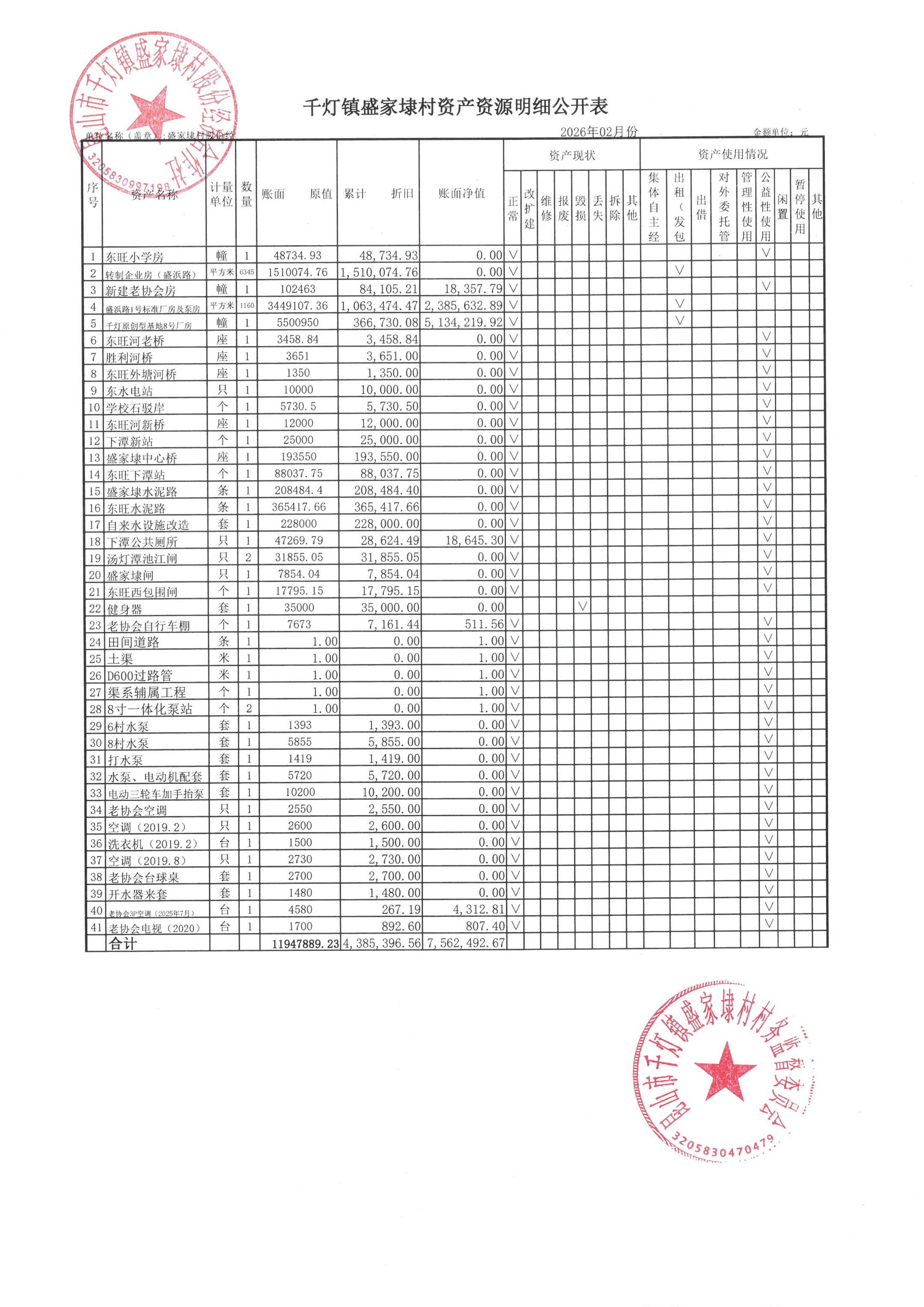 2026年02月份盛家埭村、股份经济合作社定期公开