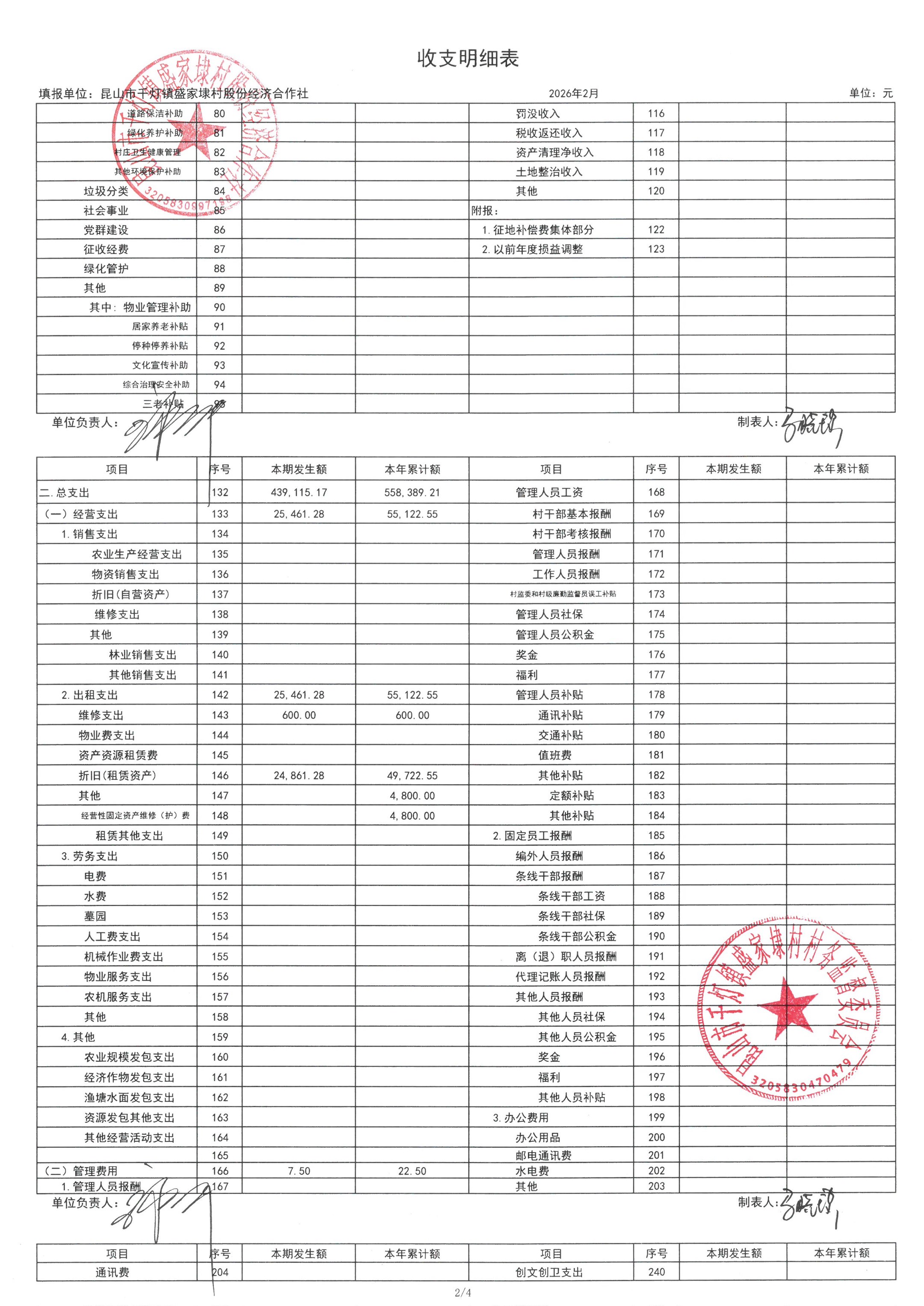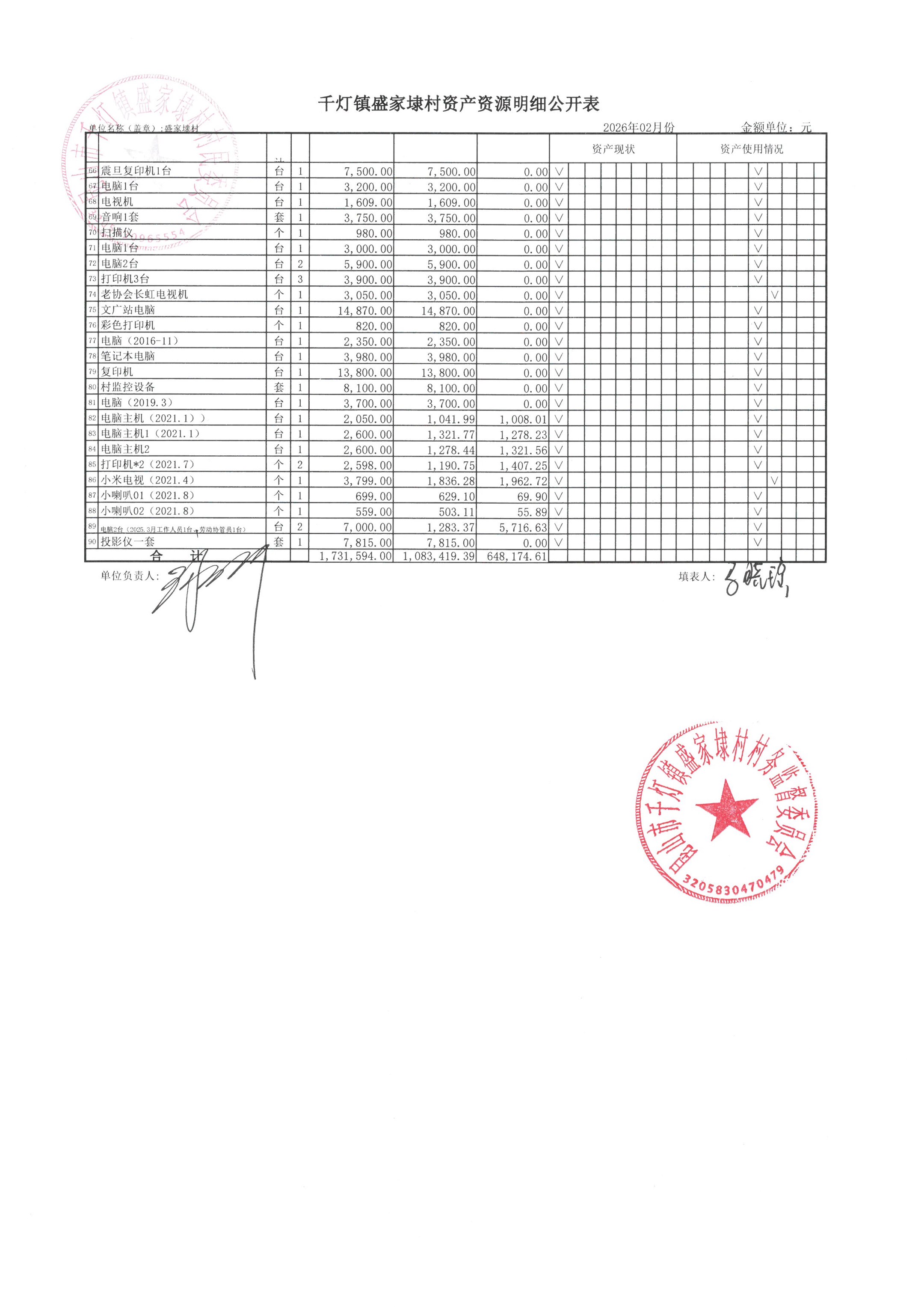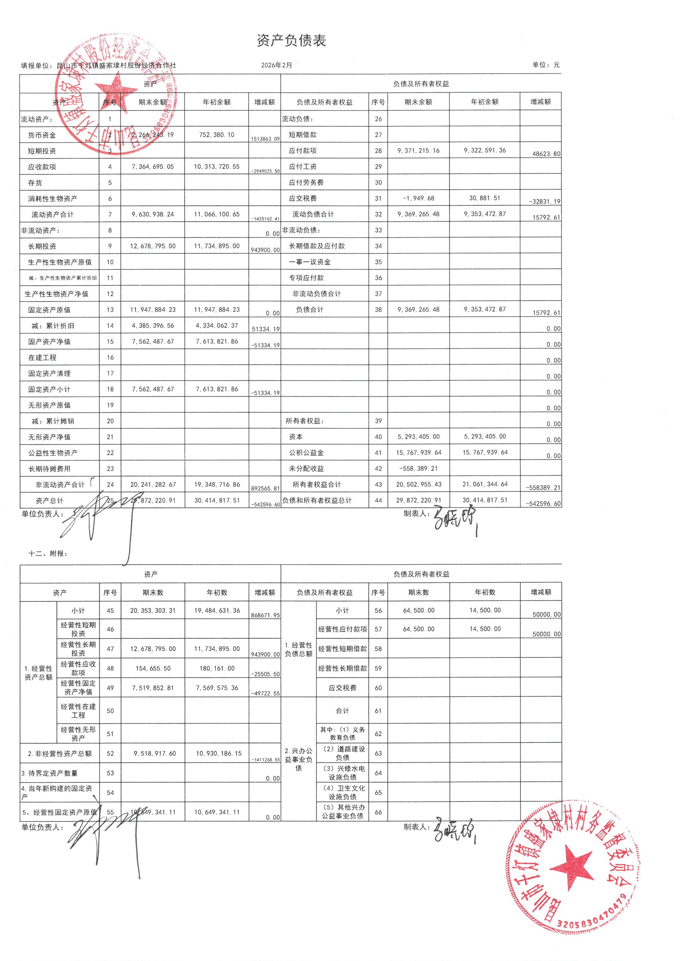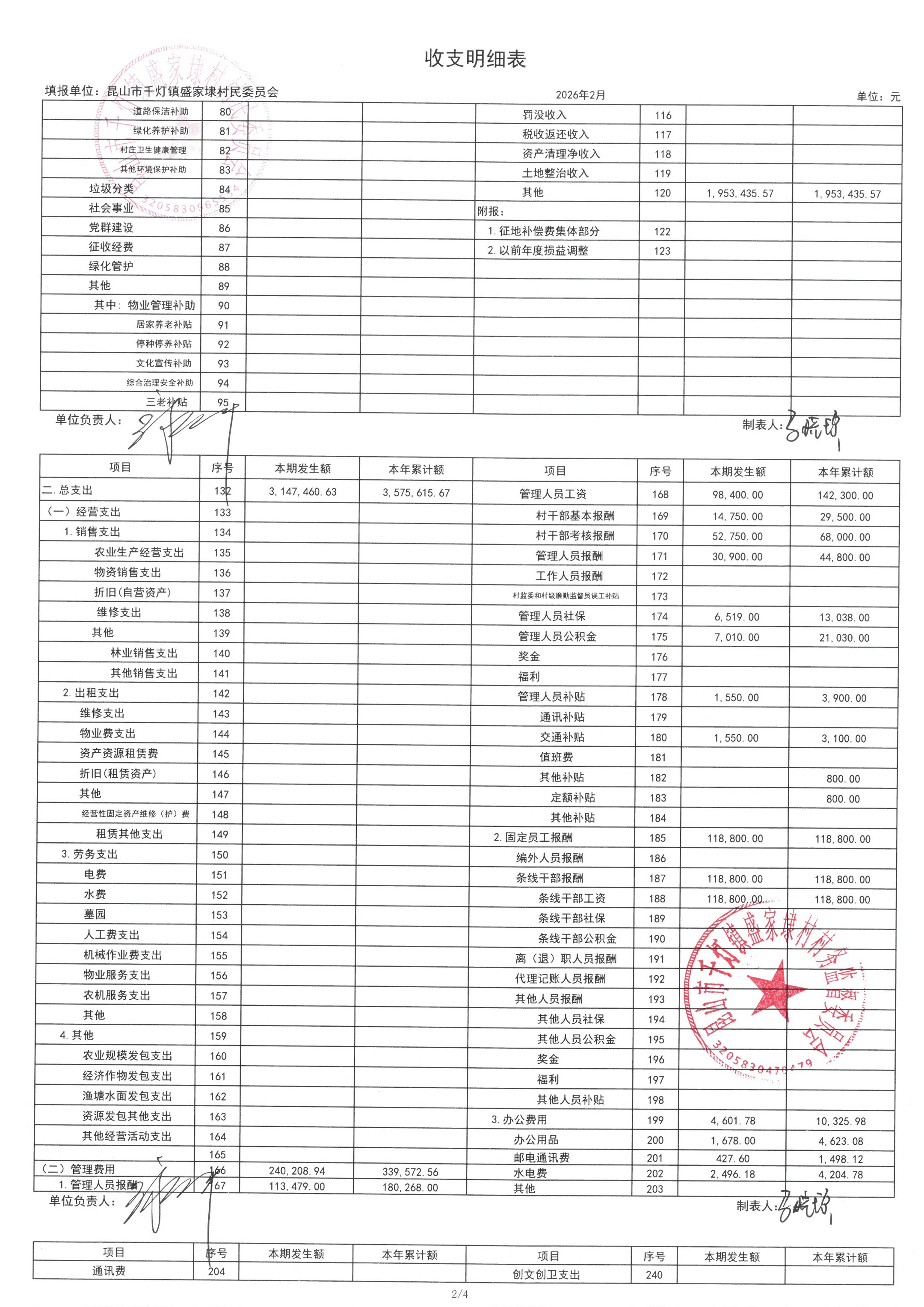 2026年02月份盛家埭村、股份经济合作社定期公开