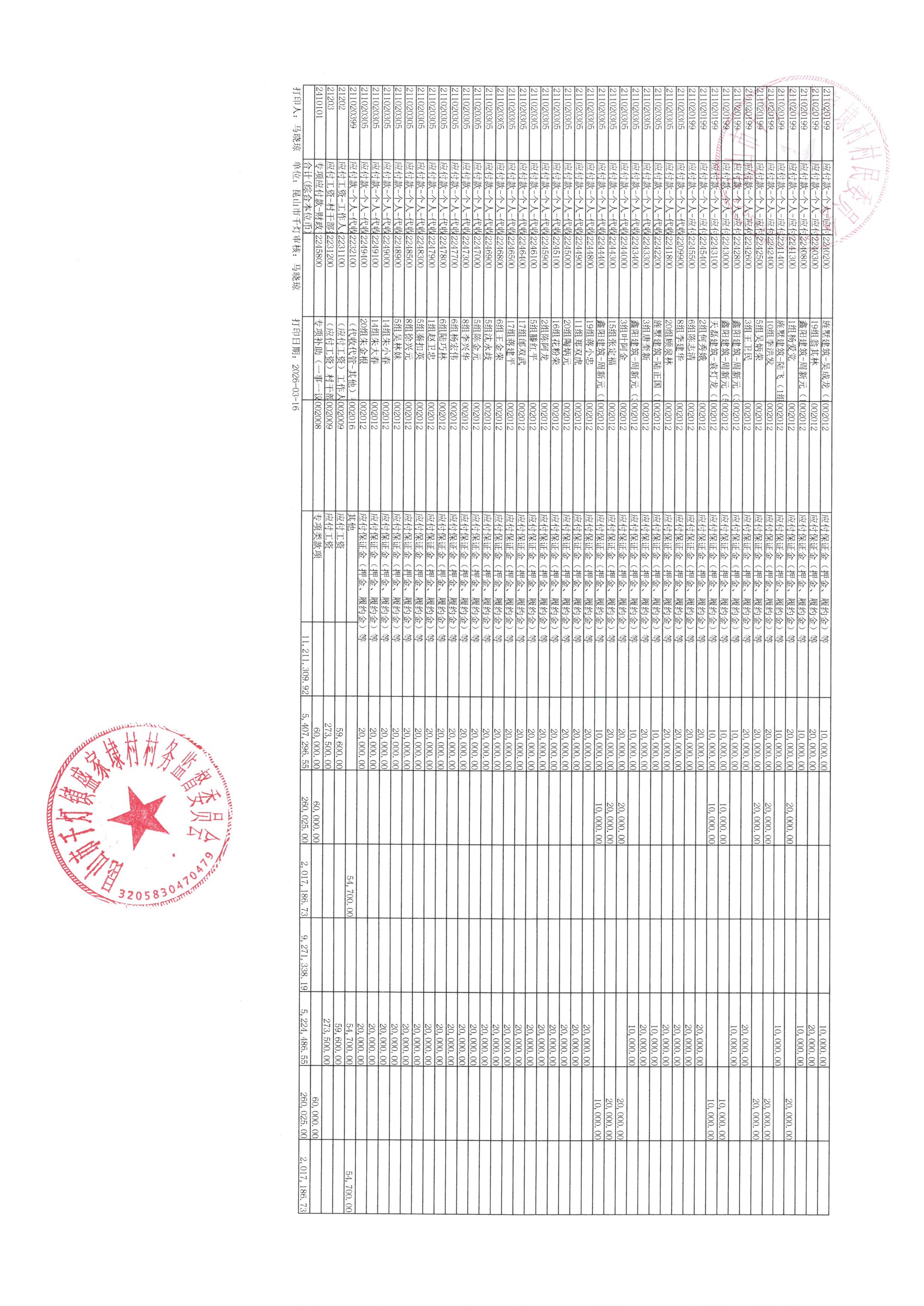 村盖章事项名录