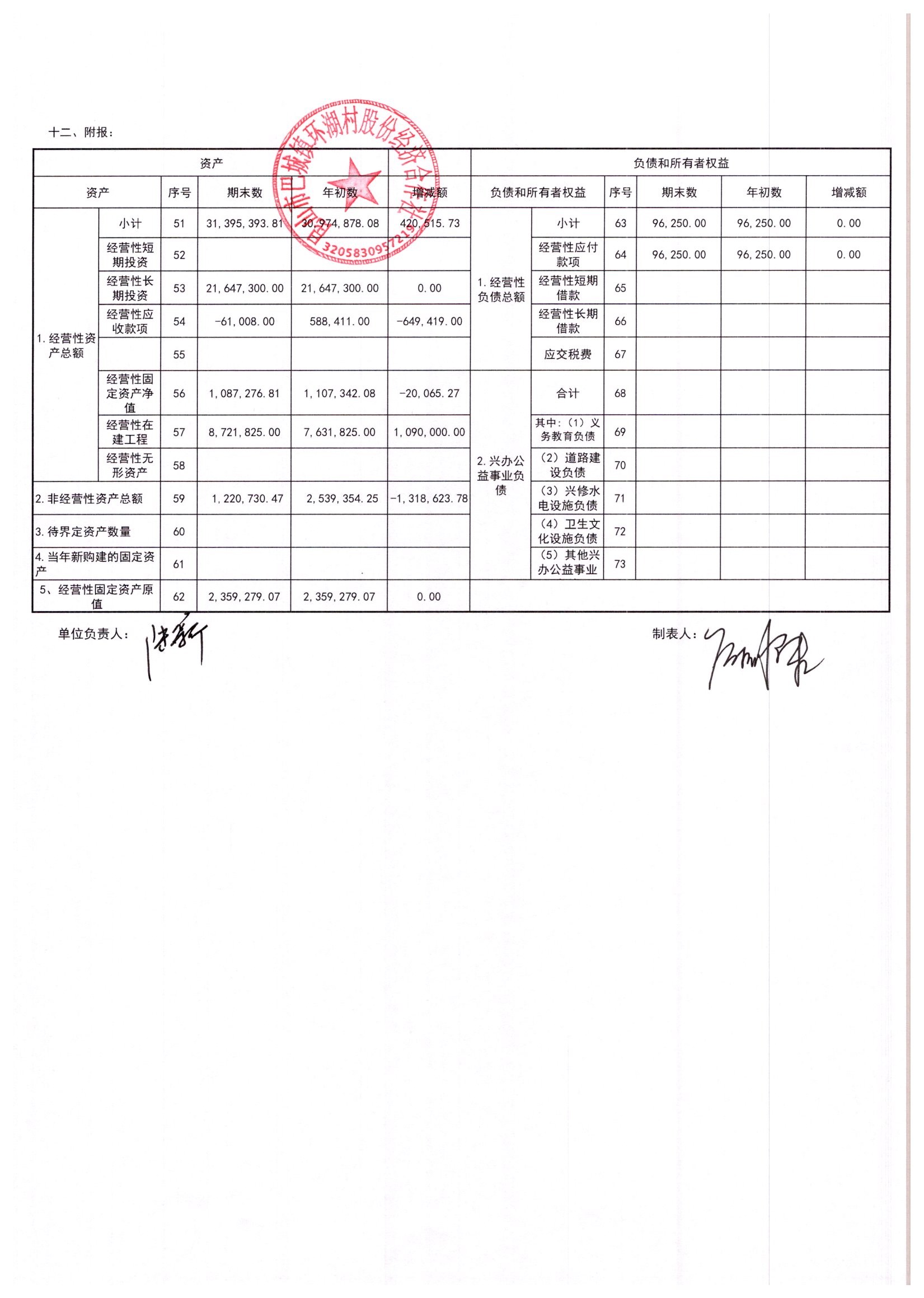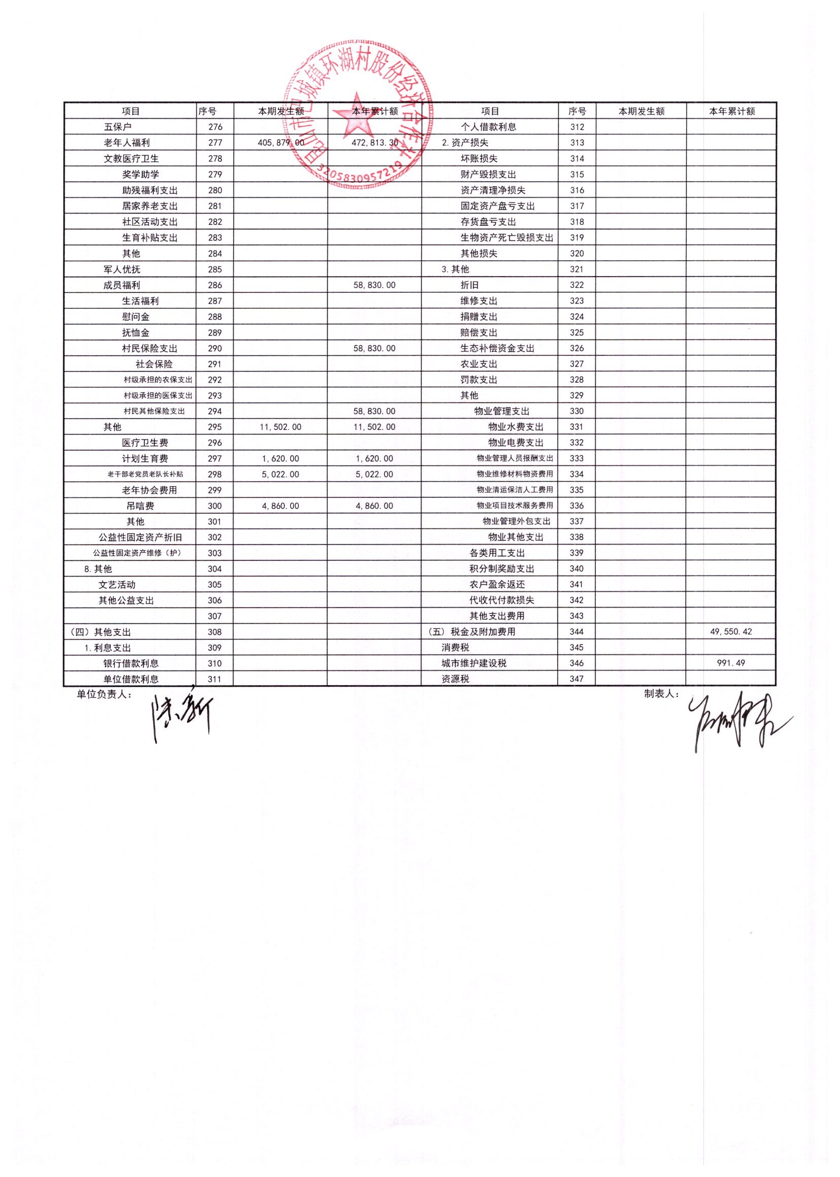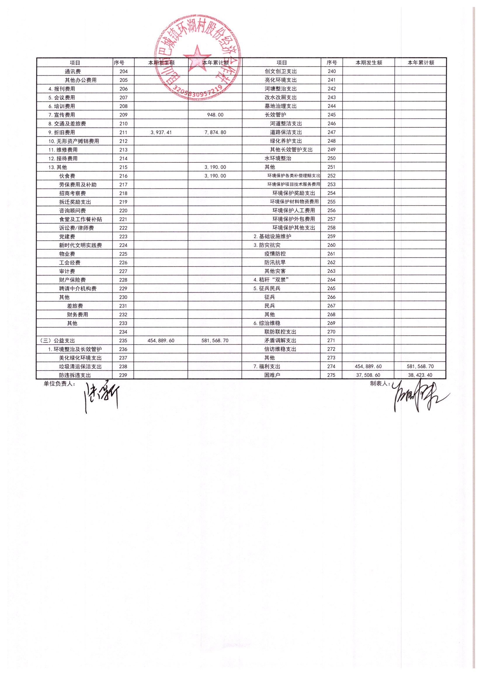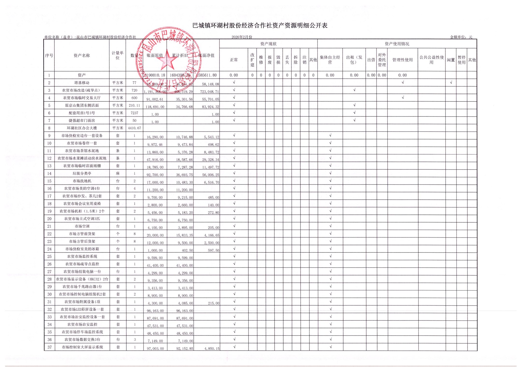 2026年2月环湖村股份经济合作社财务公开