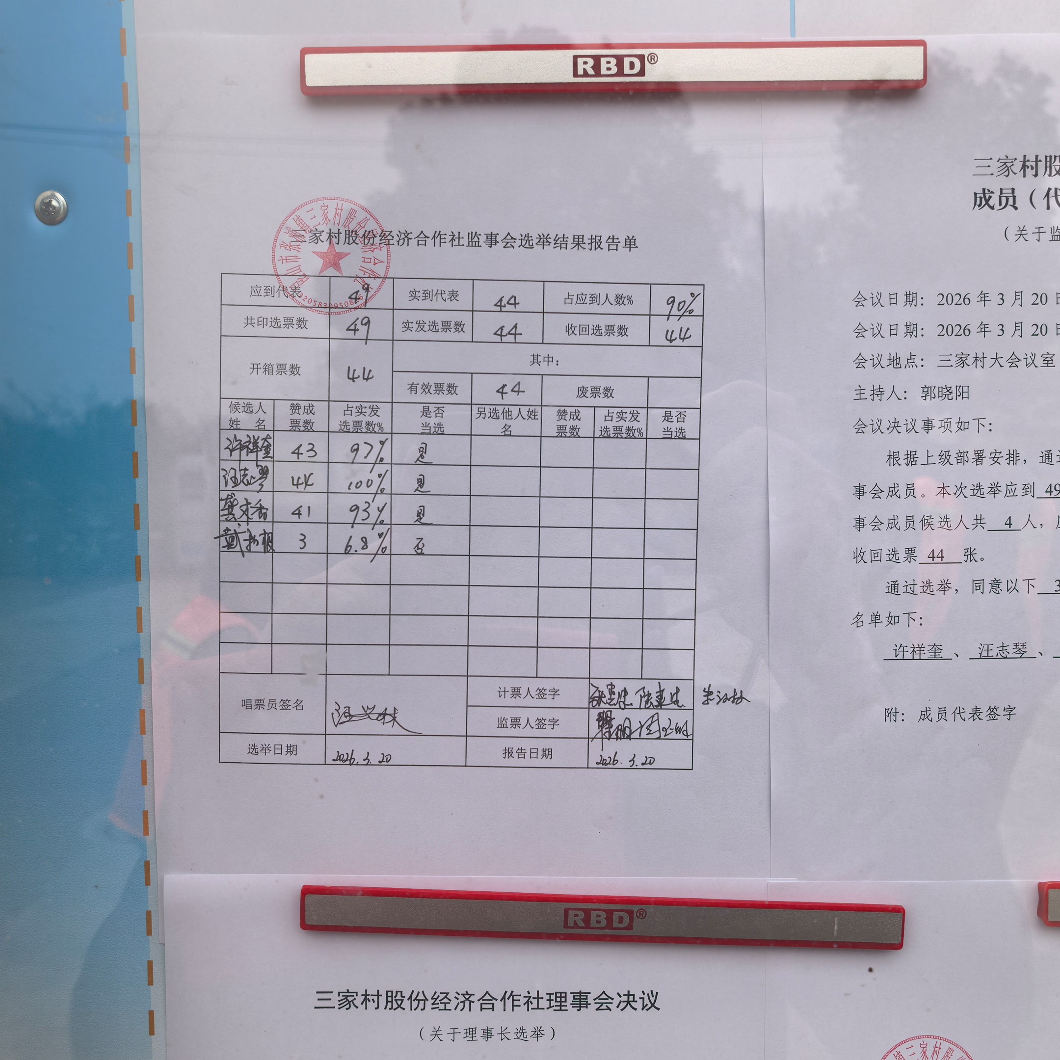 三家村股份经济合作社换届选举监事会计票结果报告单