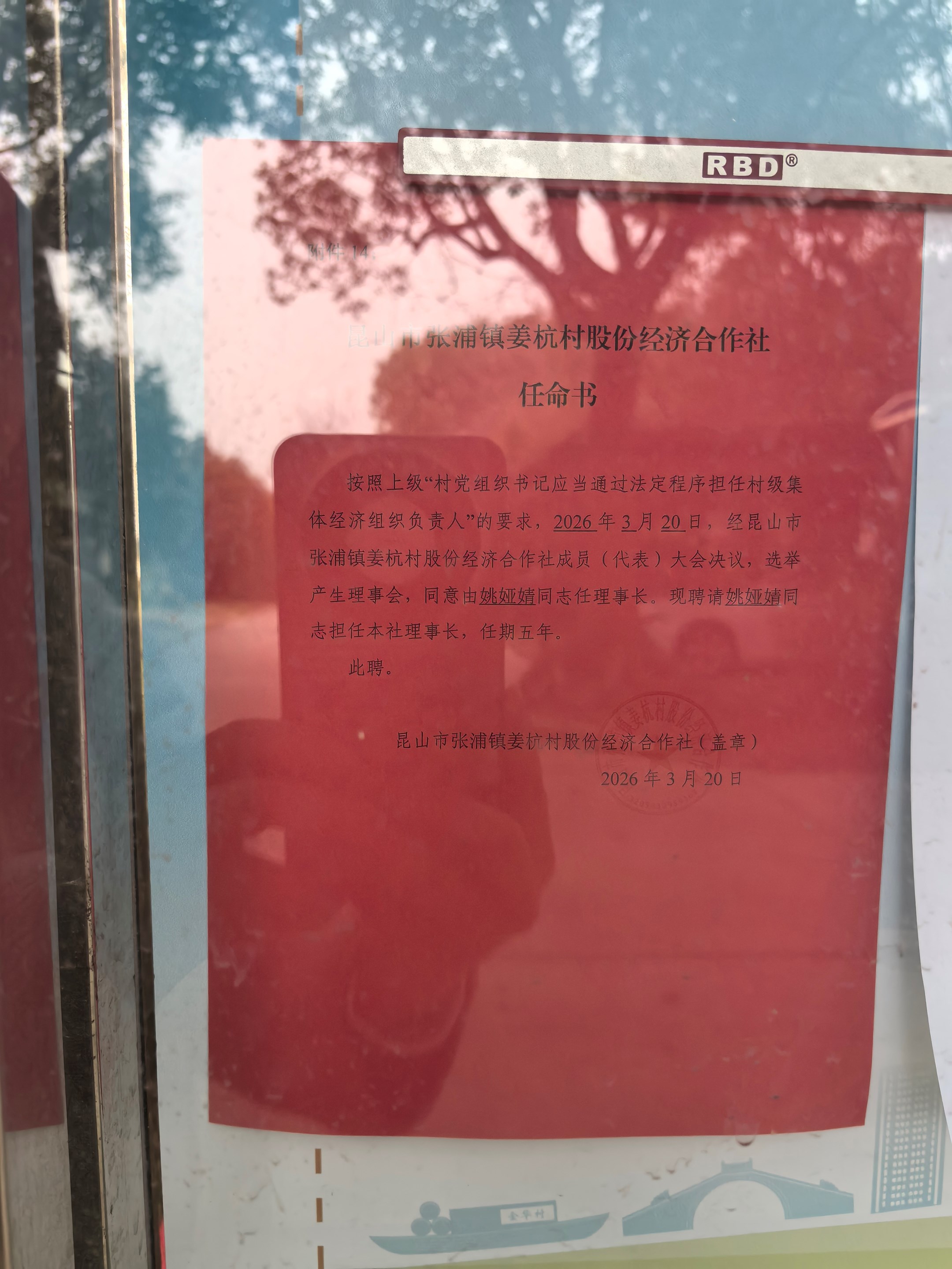 姜杭村股份经济合作社任命书