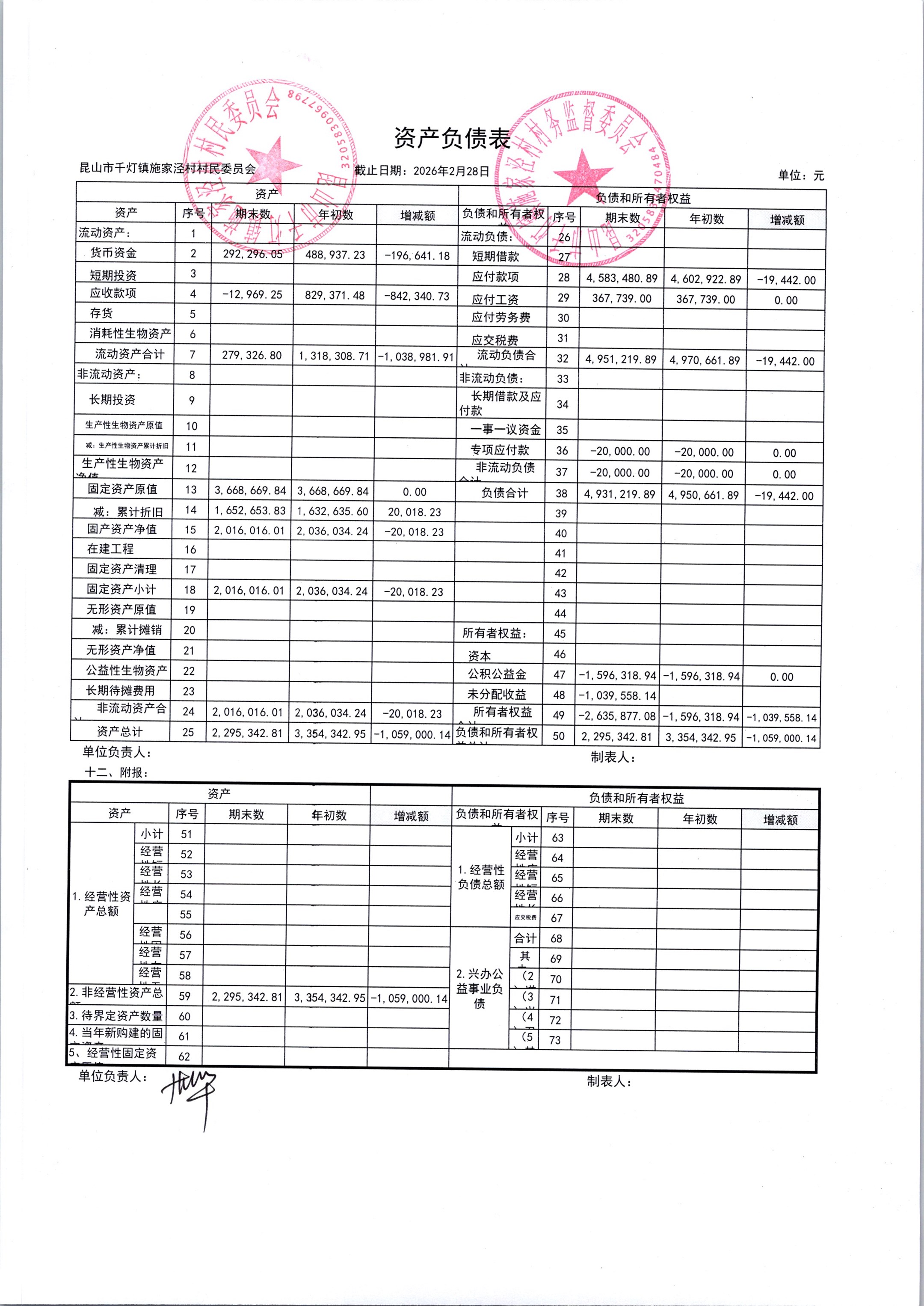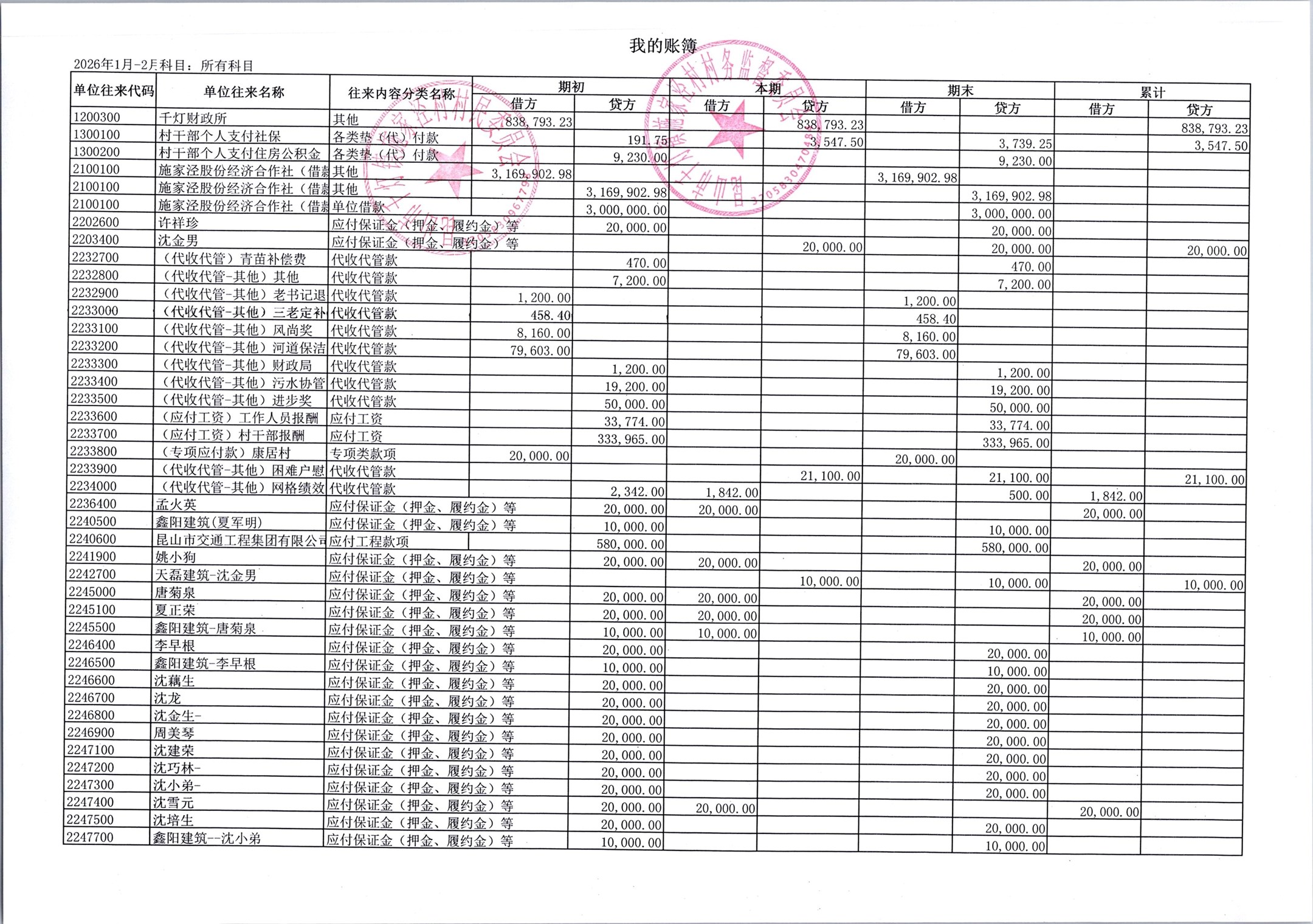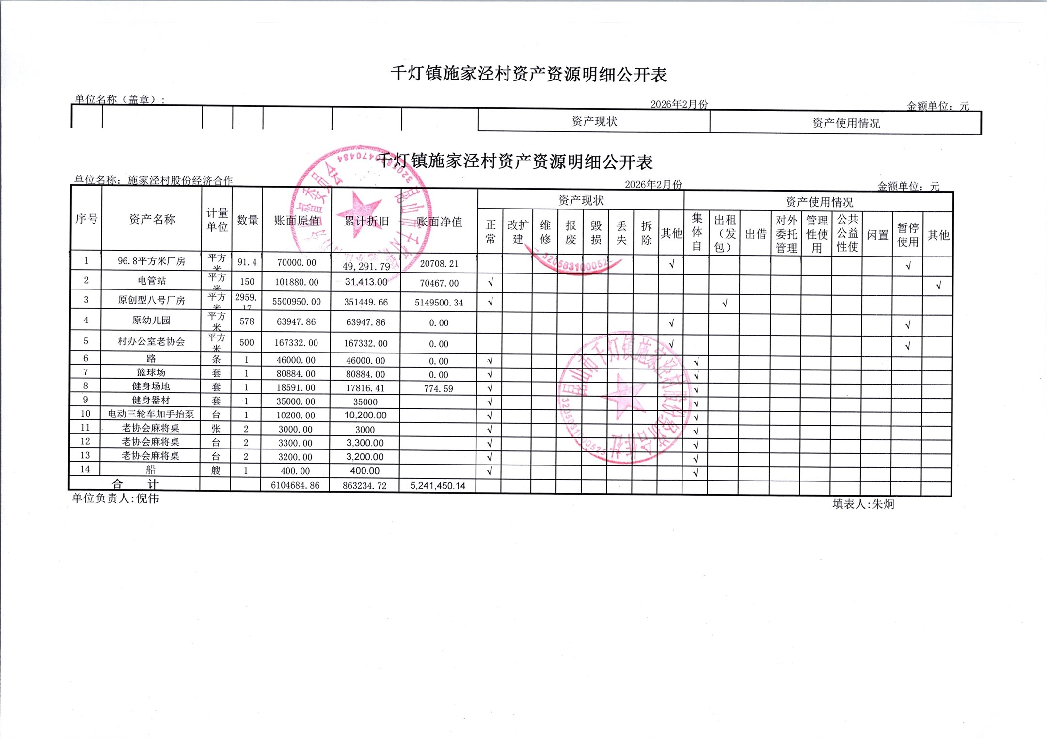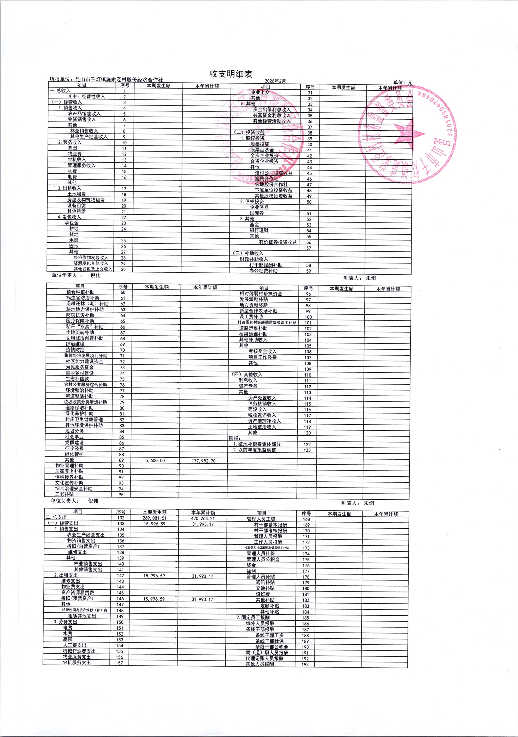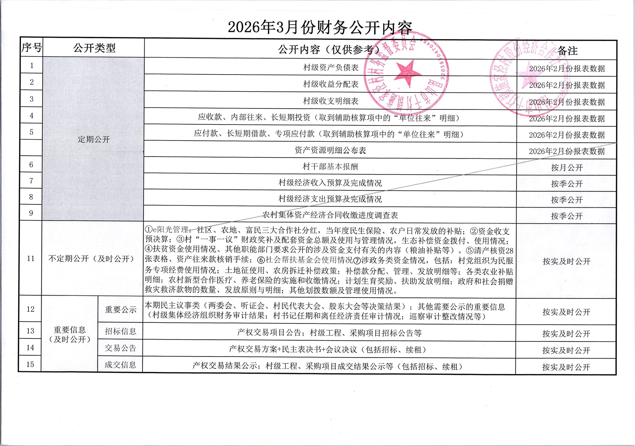 2026年3月份施家泾村财务公开