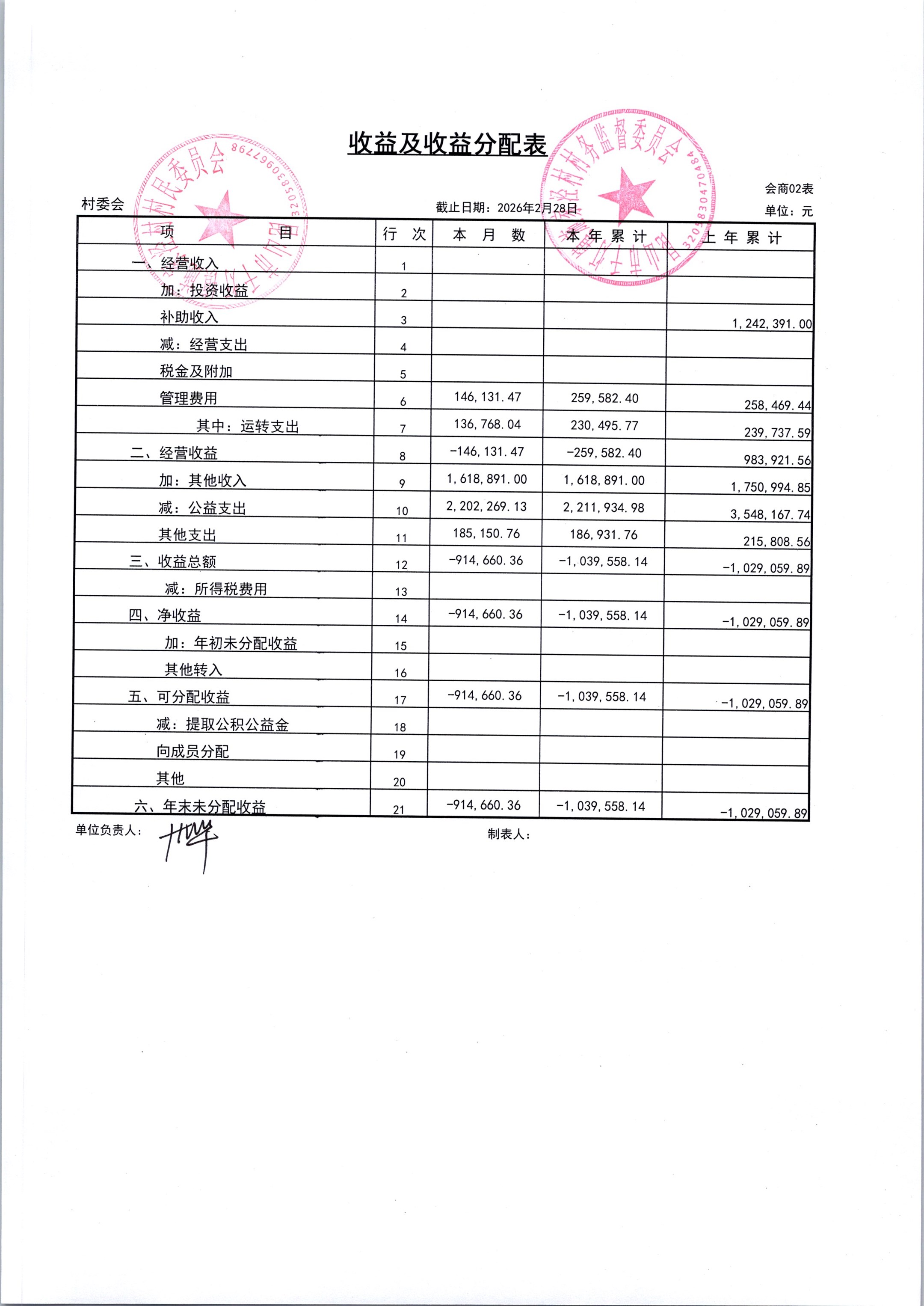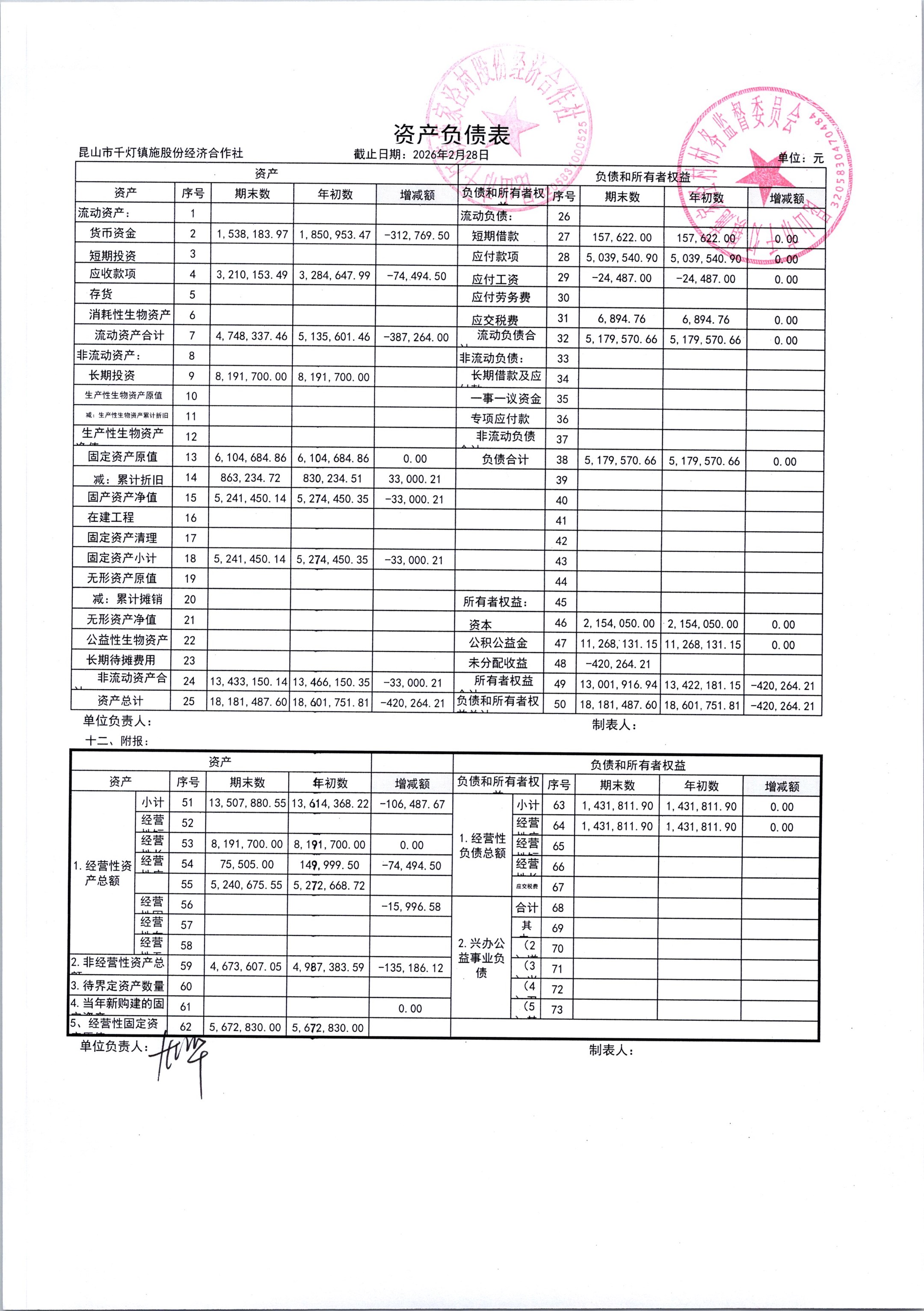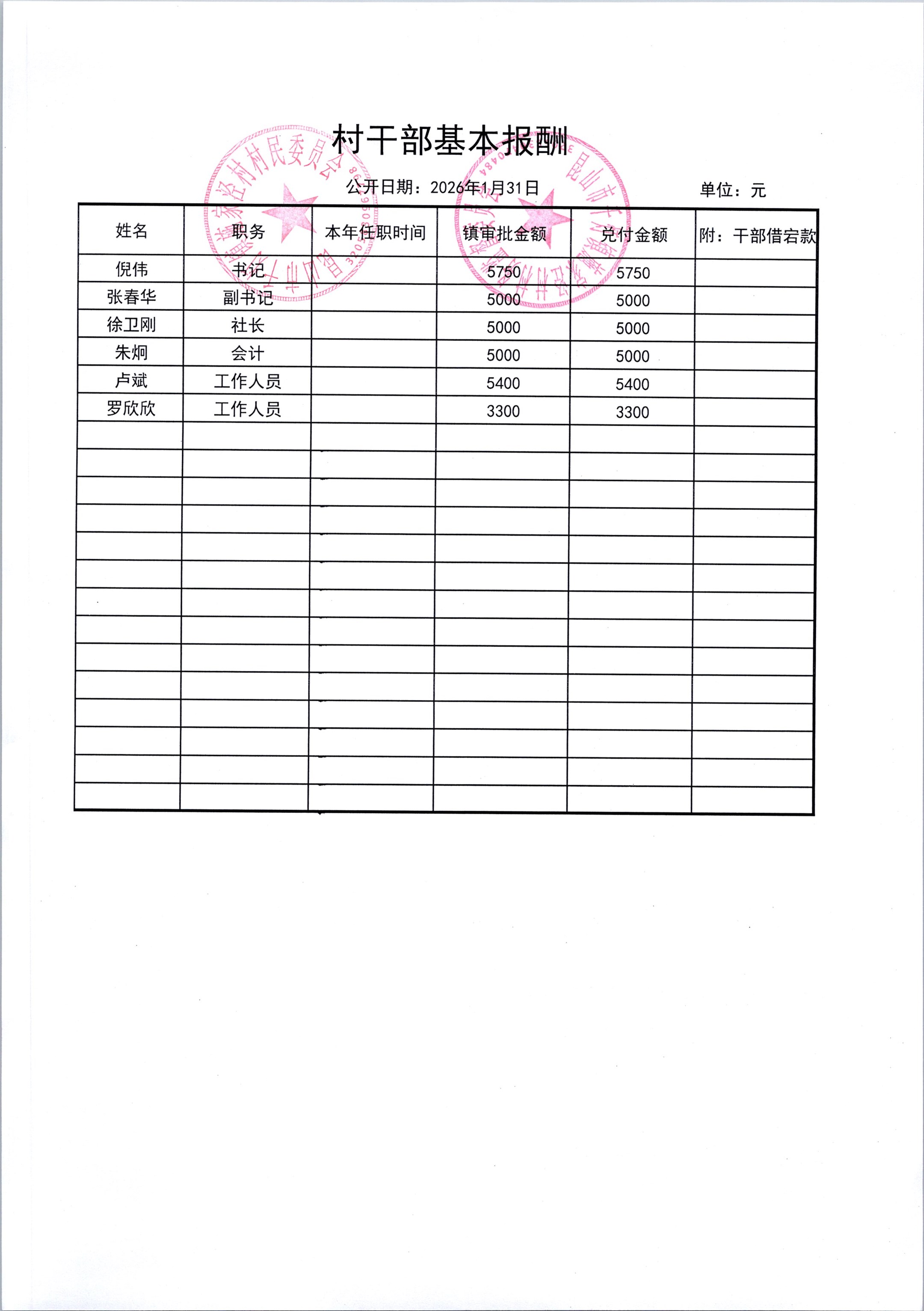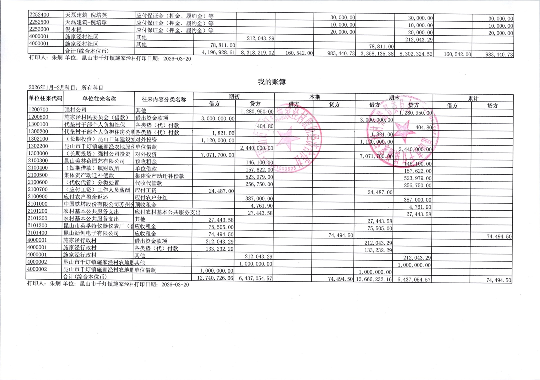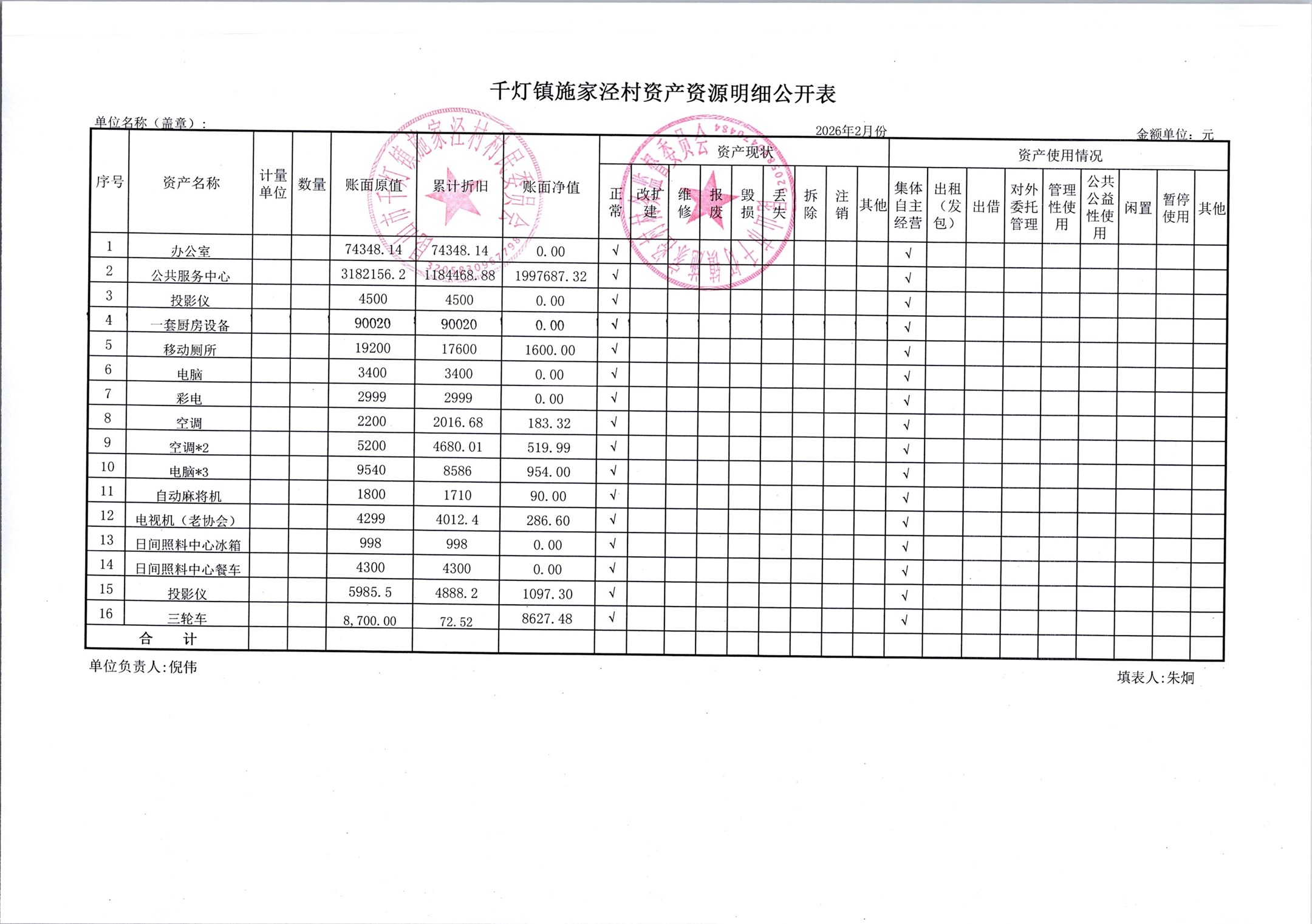 2026年3月份施家泾村财务公开