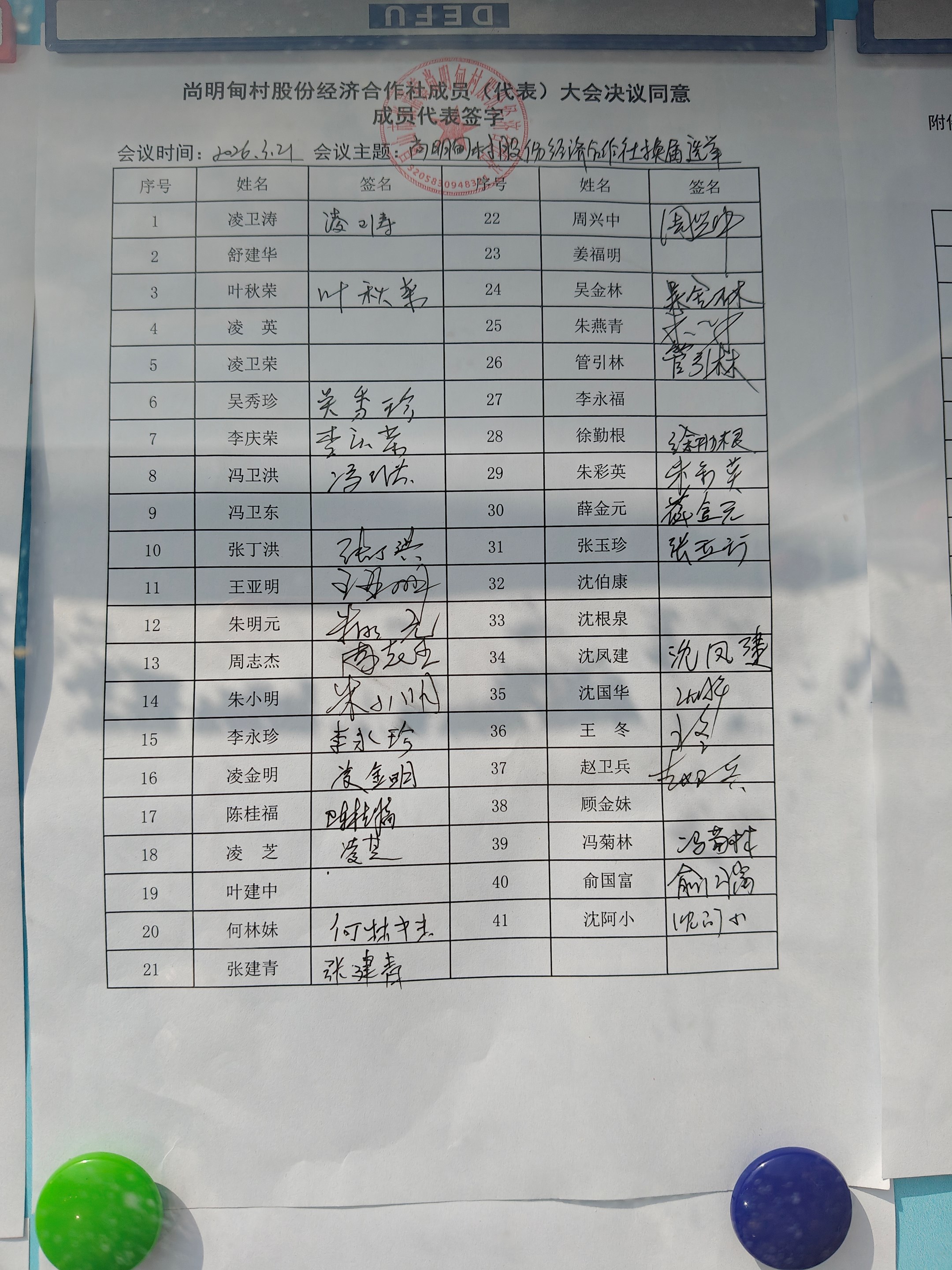 尚明甸村股份经济合作社成员(代表