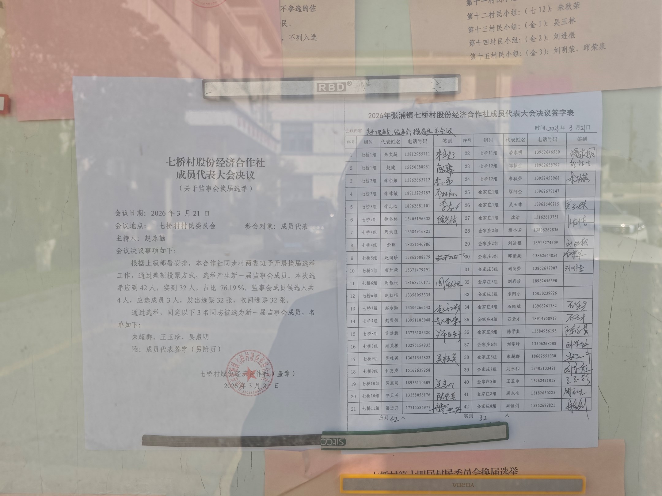 七桥村股份经济合作社监事会换届选举决议(关于监事会换届选举)