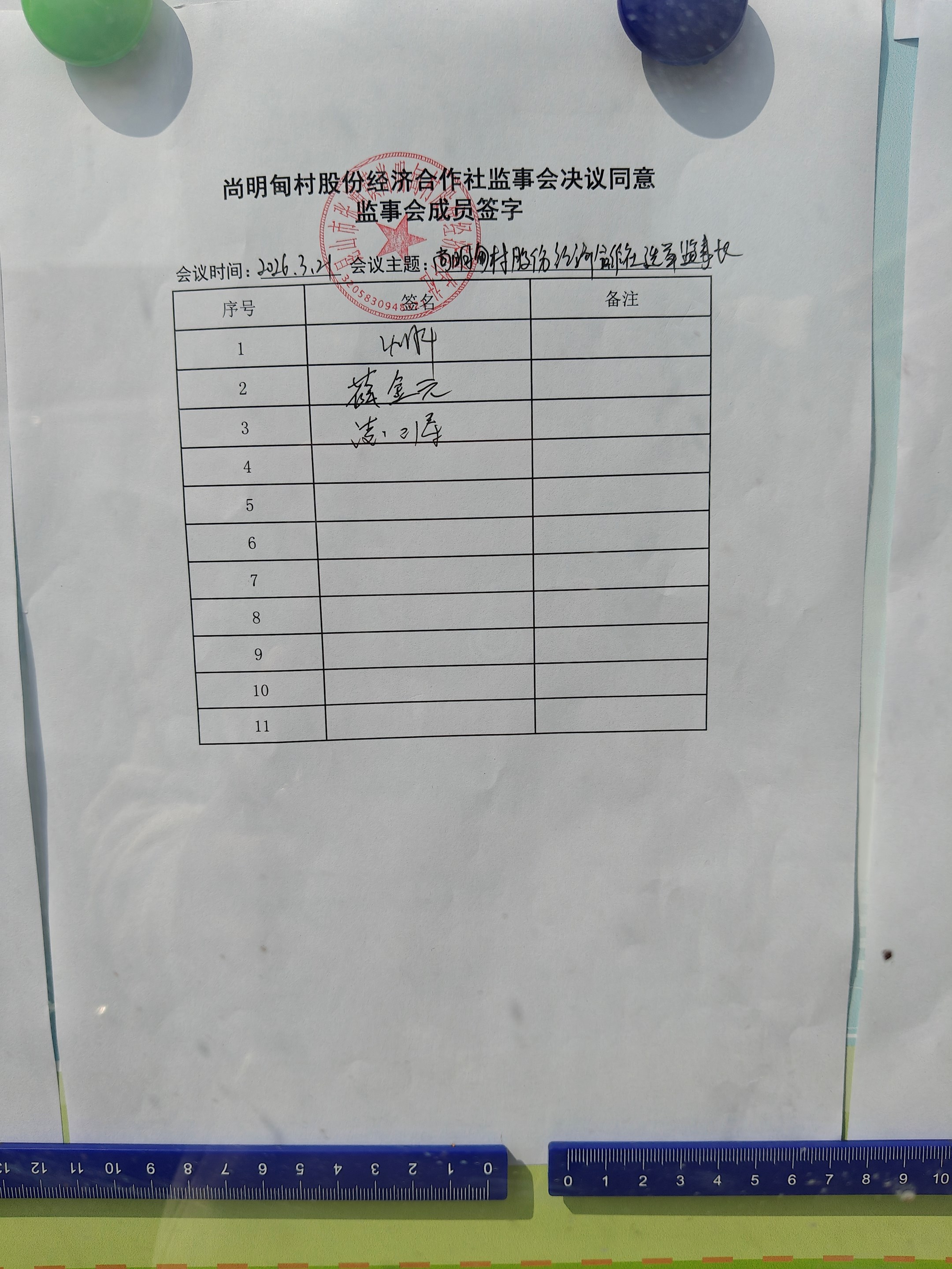 尚明甸村股份经济合作社监事会决议