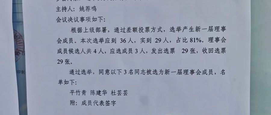 关于新一届理事会选举会议决议的公示