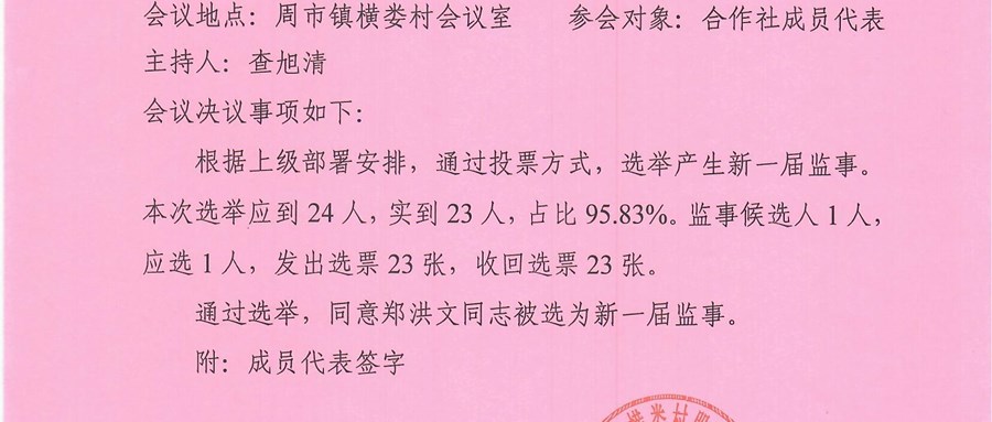 2026年3月21日横娄股份经济合作社成员代表大会决议
