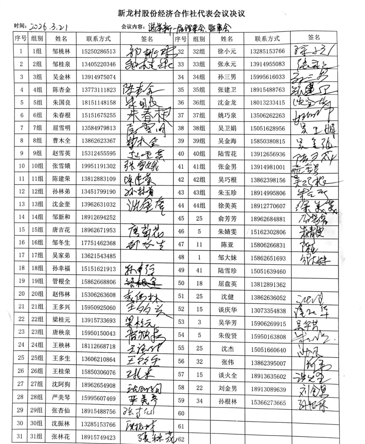 新龙村股份经济合作社成员代表会议(选举新一届理事会、监事会成员)
