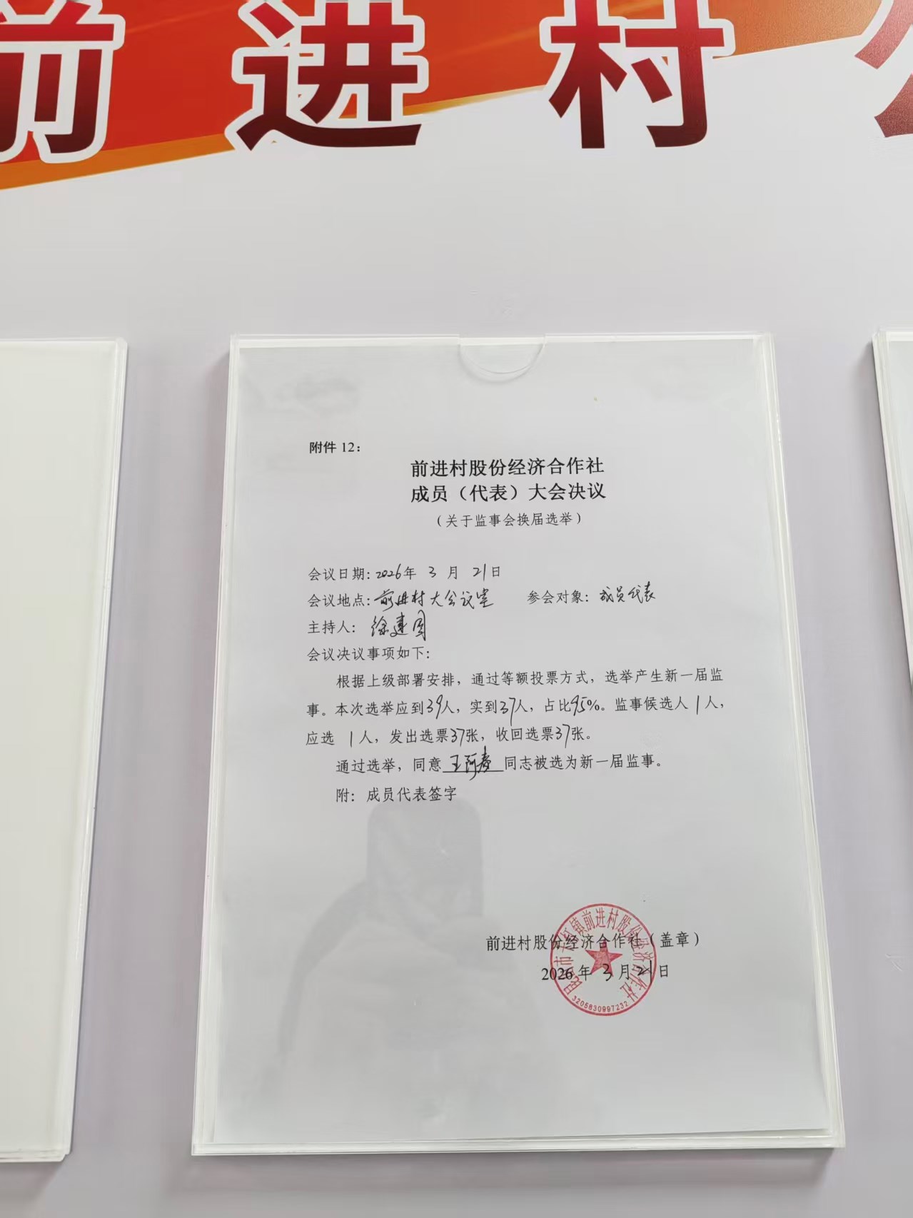 前进村股份经济合作社成员(代表)大会决议(关于监事会换届选举)