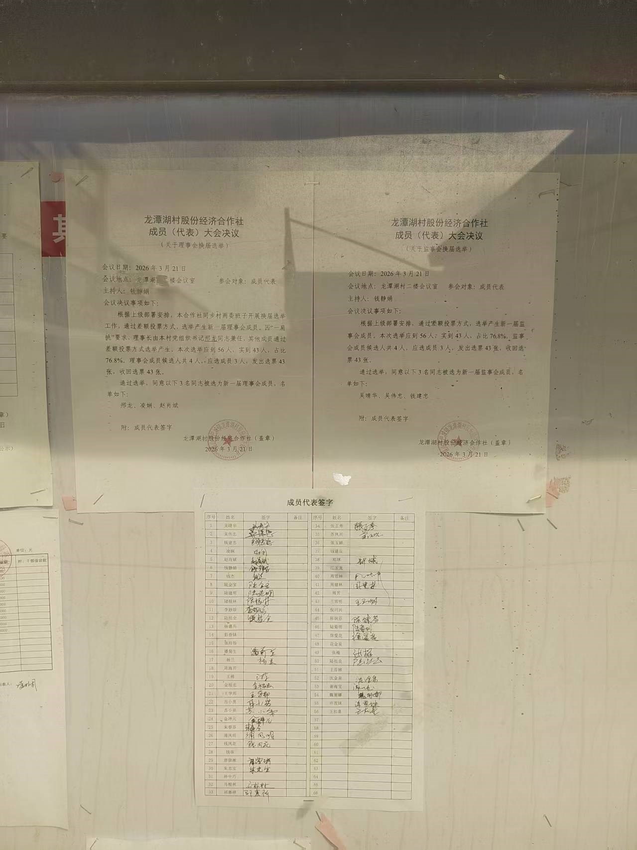 龙潭湖村股份经济合作社成员(代表)大会决议(关于理事会、监事会换届选举)