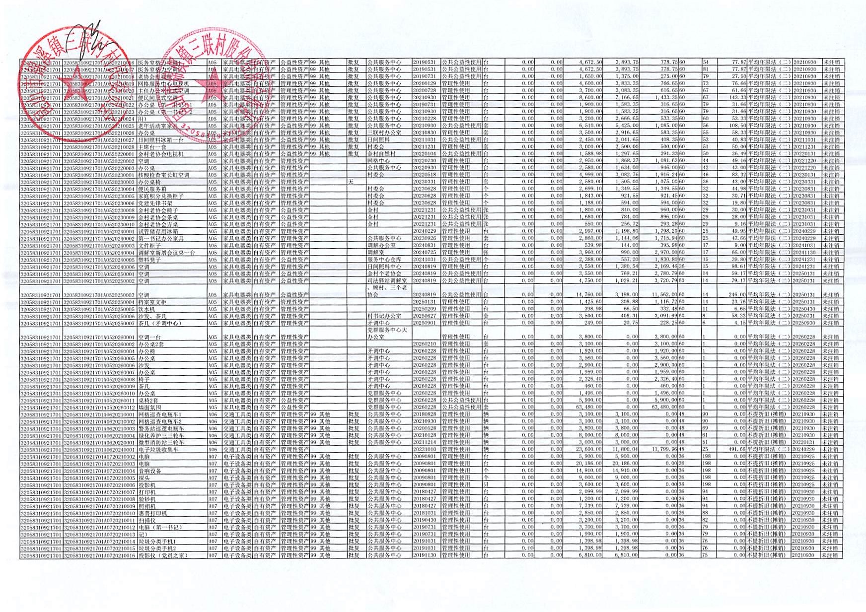 村盖章事项名录