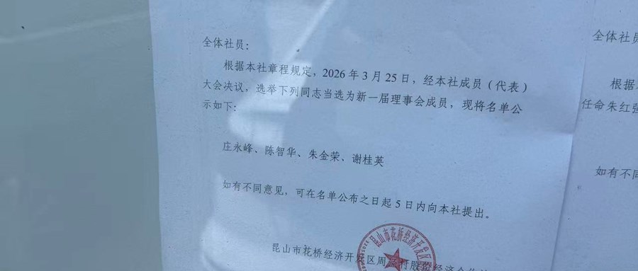 昆山市花桥经济开发区周泾村股份经济合作社关于新一届理事会成员的公告