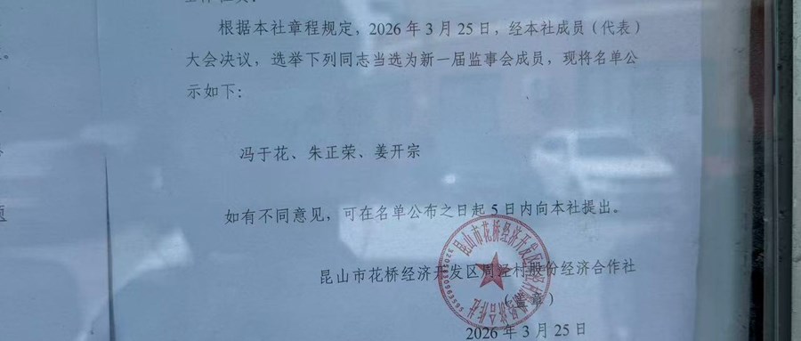 昆山市花桥经济开发区周泾村股份经济合作社关于新一届监事会成员的公告